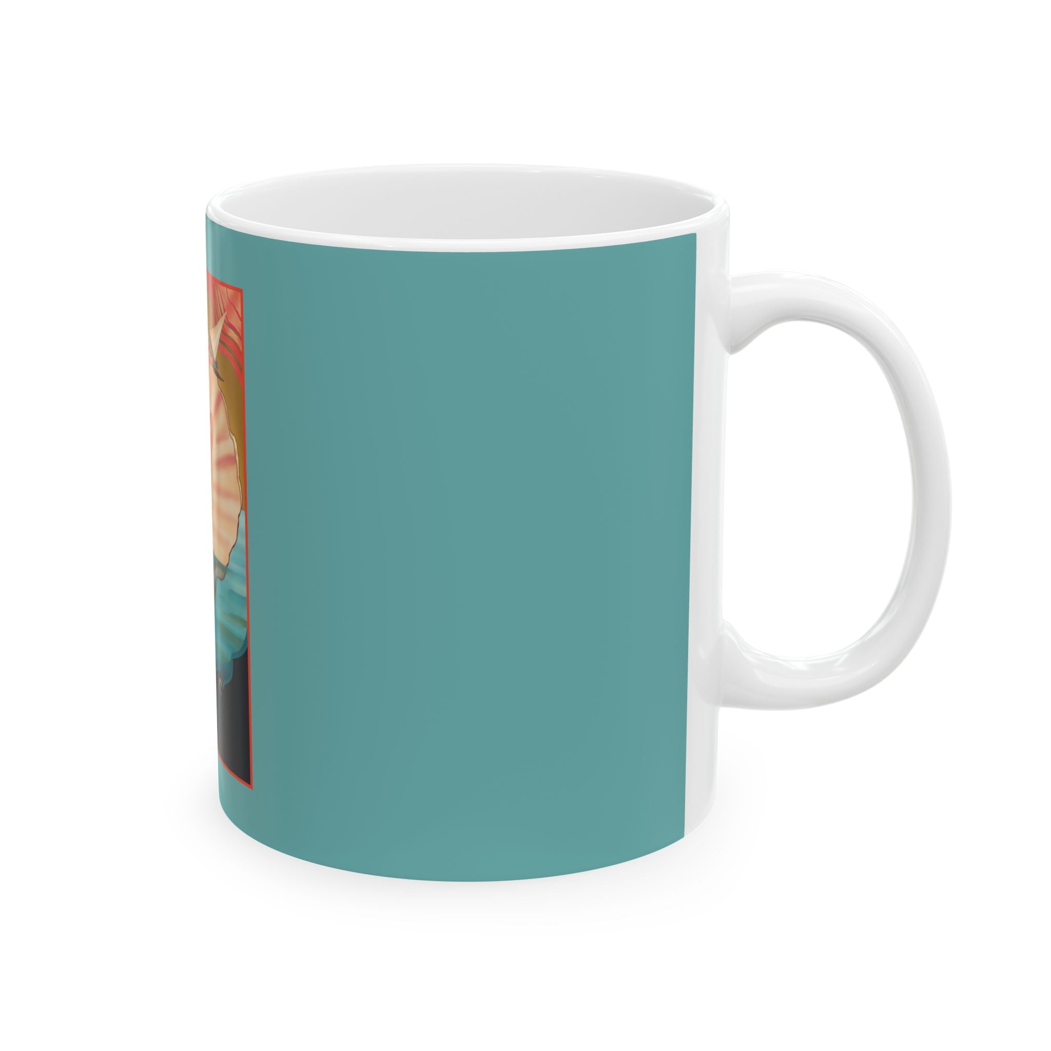 This 11 oz ceramic mug is the perfect gift for coffee, tea, and chocolate lovers. It's made of high-quality white ceramic that is lead and BPA-free, and it's microwave and dishwasher safe for easy cleanup. The mug has rounded corners and a comfortable C-handle for a secure grip.