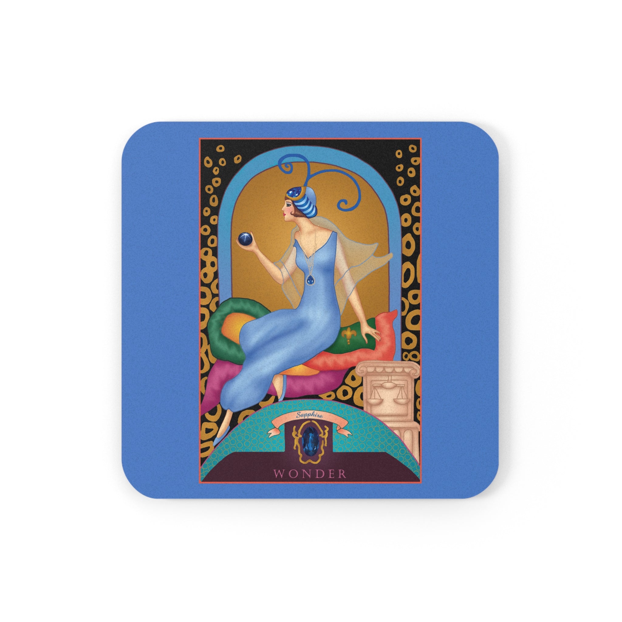 Virgo Zodiac Design – September & Sapphire | Cork Back Coaster embodies grace, serenity, and timeless Art Deco sophistication. Designed to elevate your table décor, this piece celebrates both vintage artistry and celestial symbolism in exquisite harmony.
