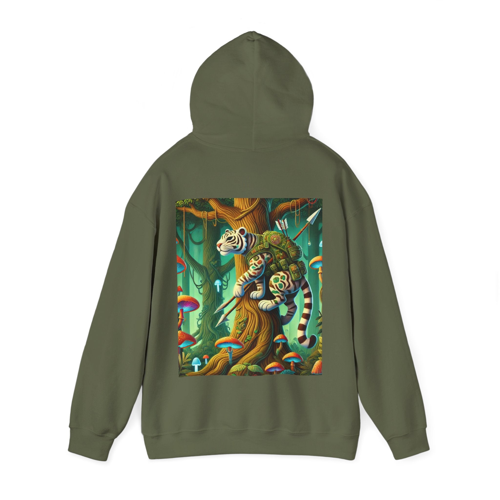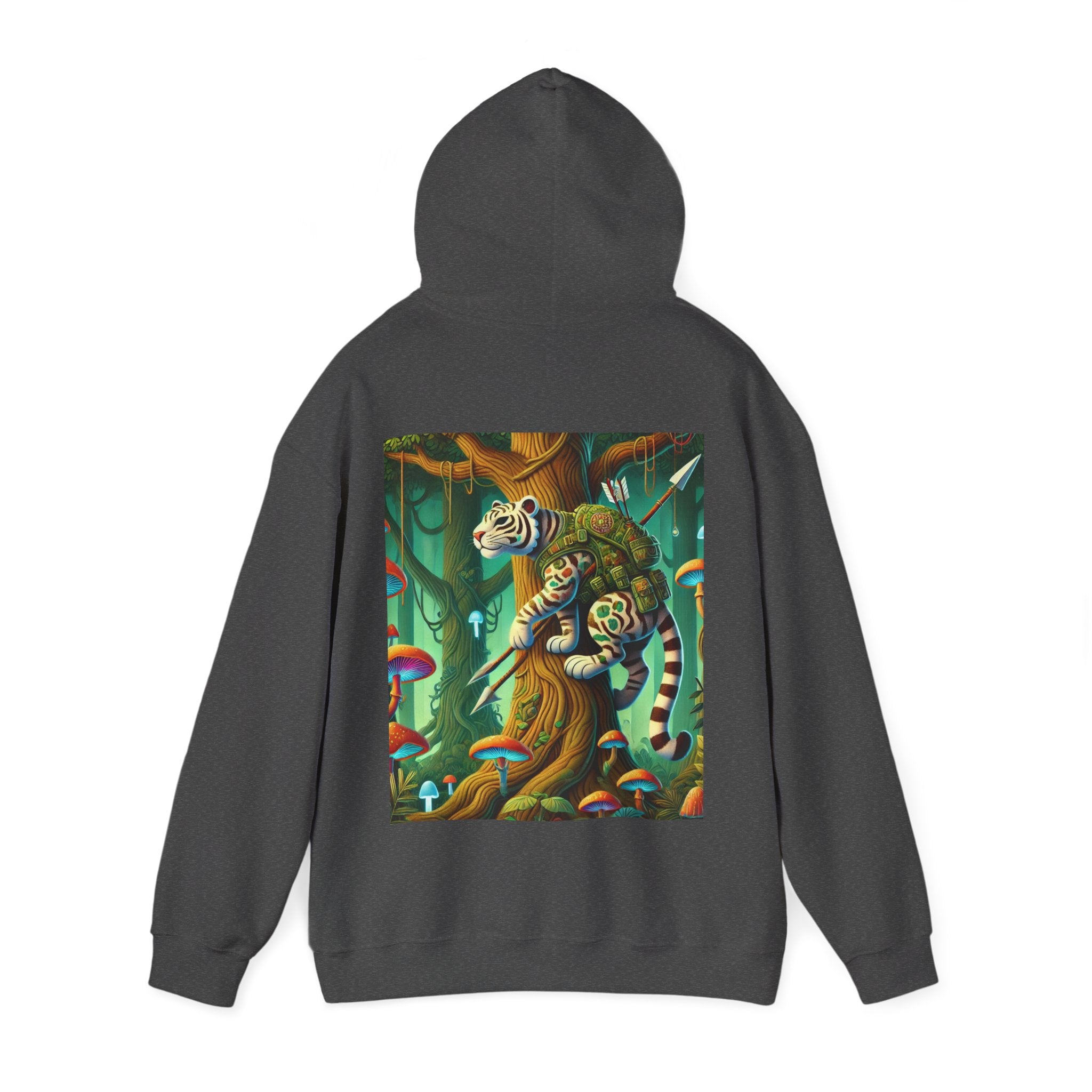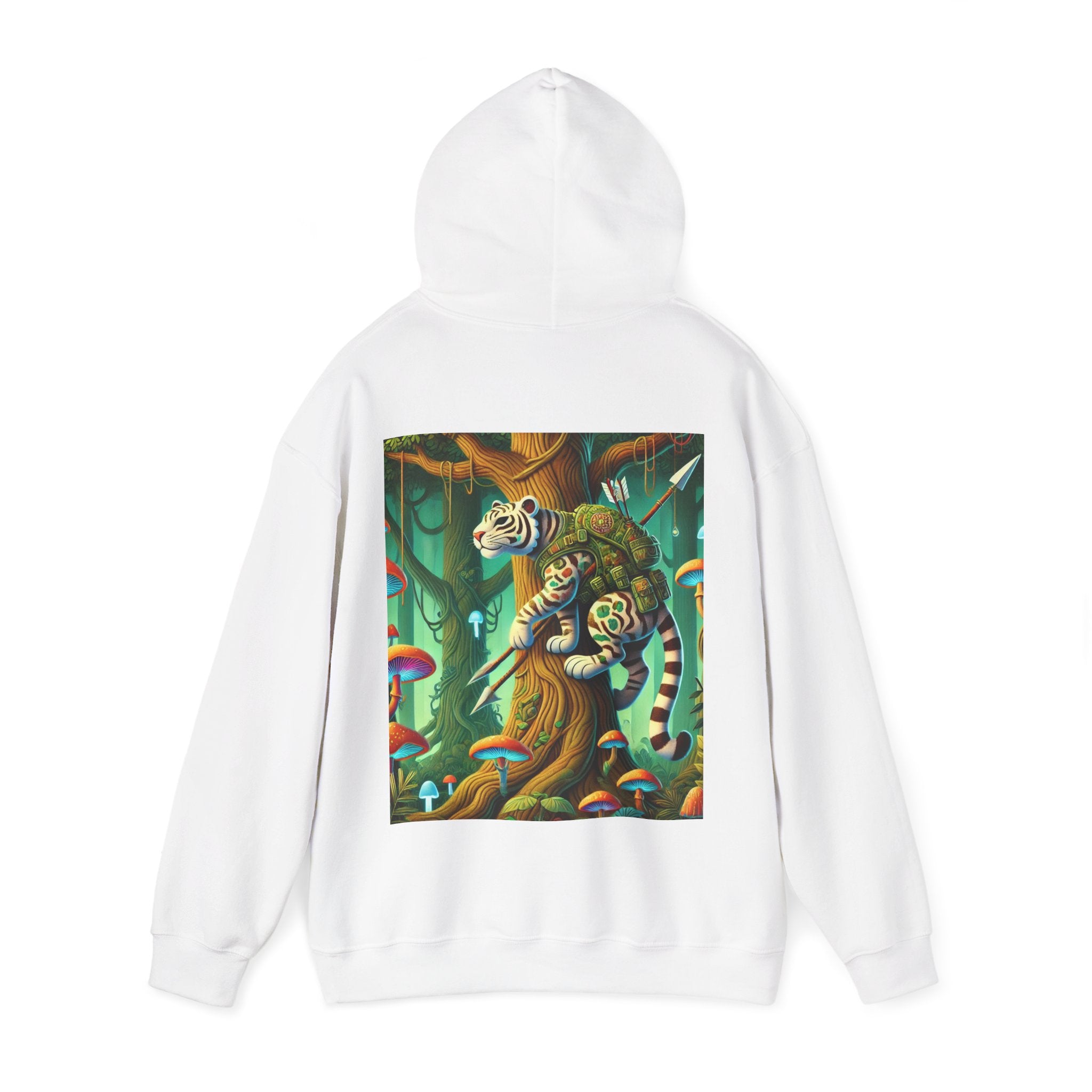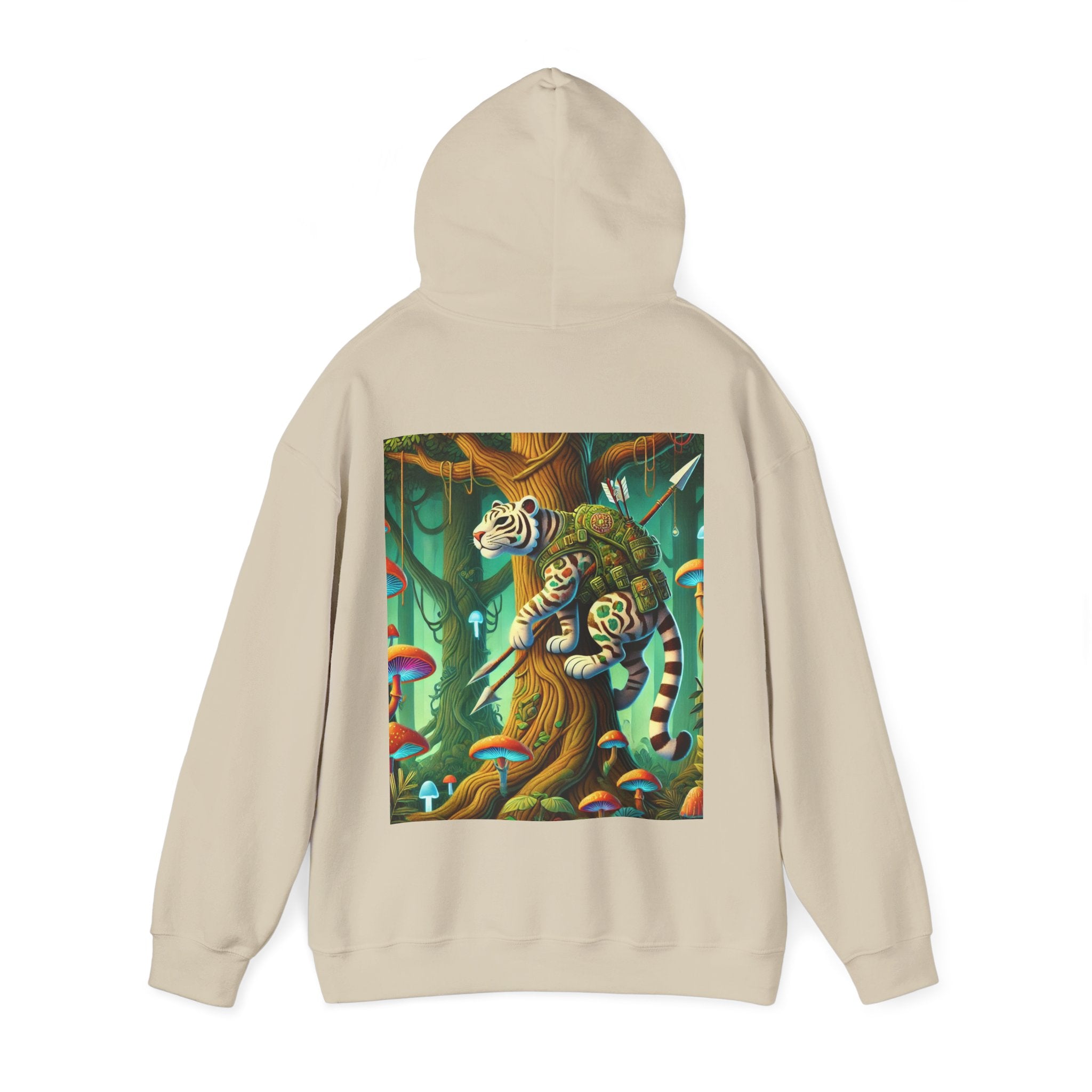 Silent Stripes – Heavy Blend™ Hooded Sweatshirt blends quiet power with the allure of a hidden world deep in the ancient jungle. The artwork follows a solitary tiger moving through an enchanted forest, its stripes merging so seamlessly with the misty, bioluminescent glow that it seems to appear and vanish with every step. Ascending a towering tree, it becomes part guardian, part shadow, part myth—an otherworldly creature whose presence feels both serene and electrifying. The scene captures a moment where nature, magic, and silence hold their breath together.