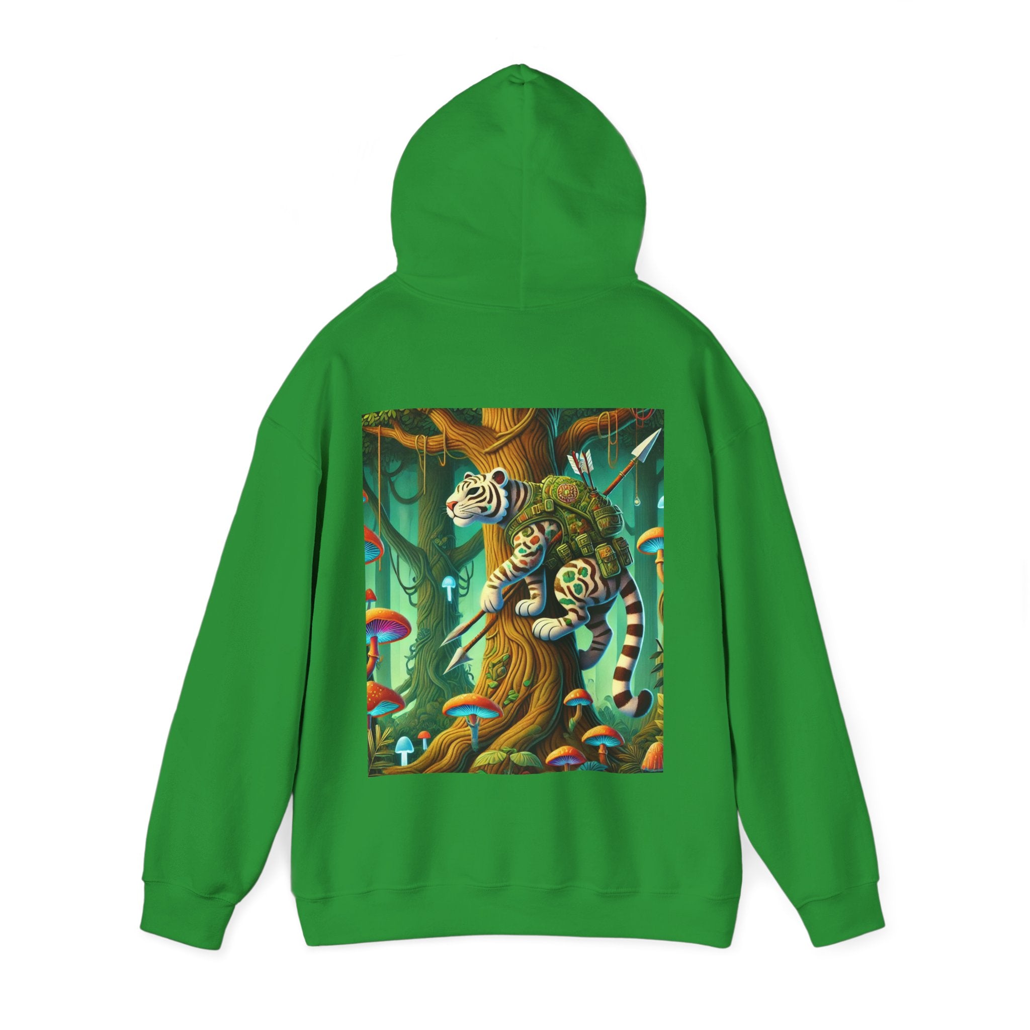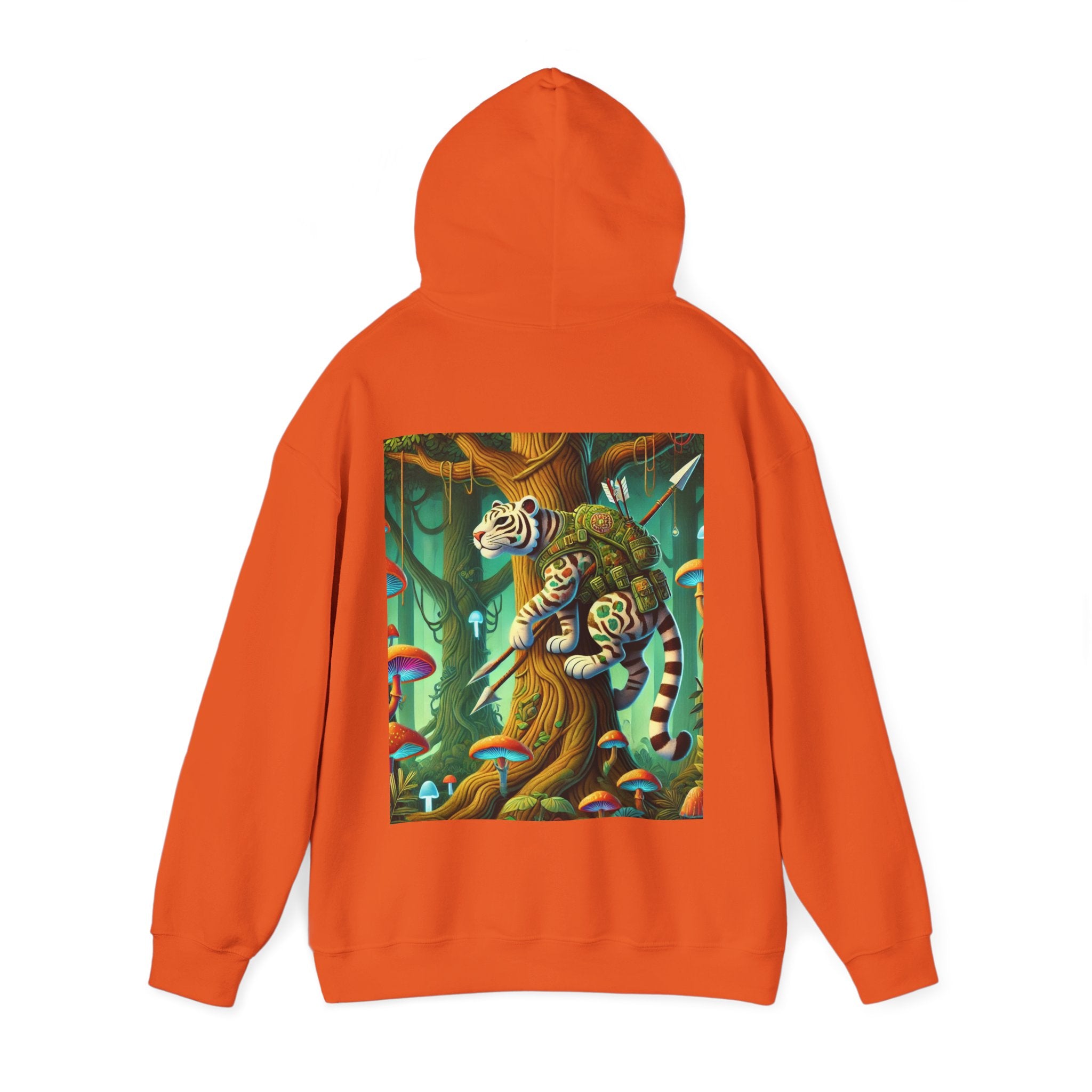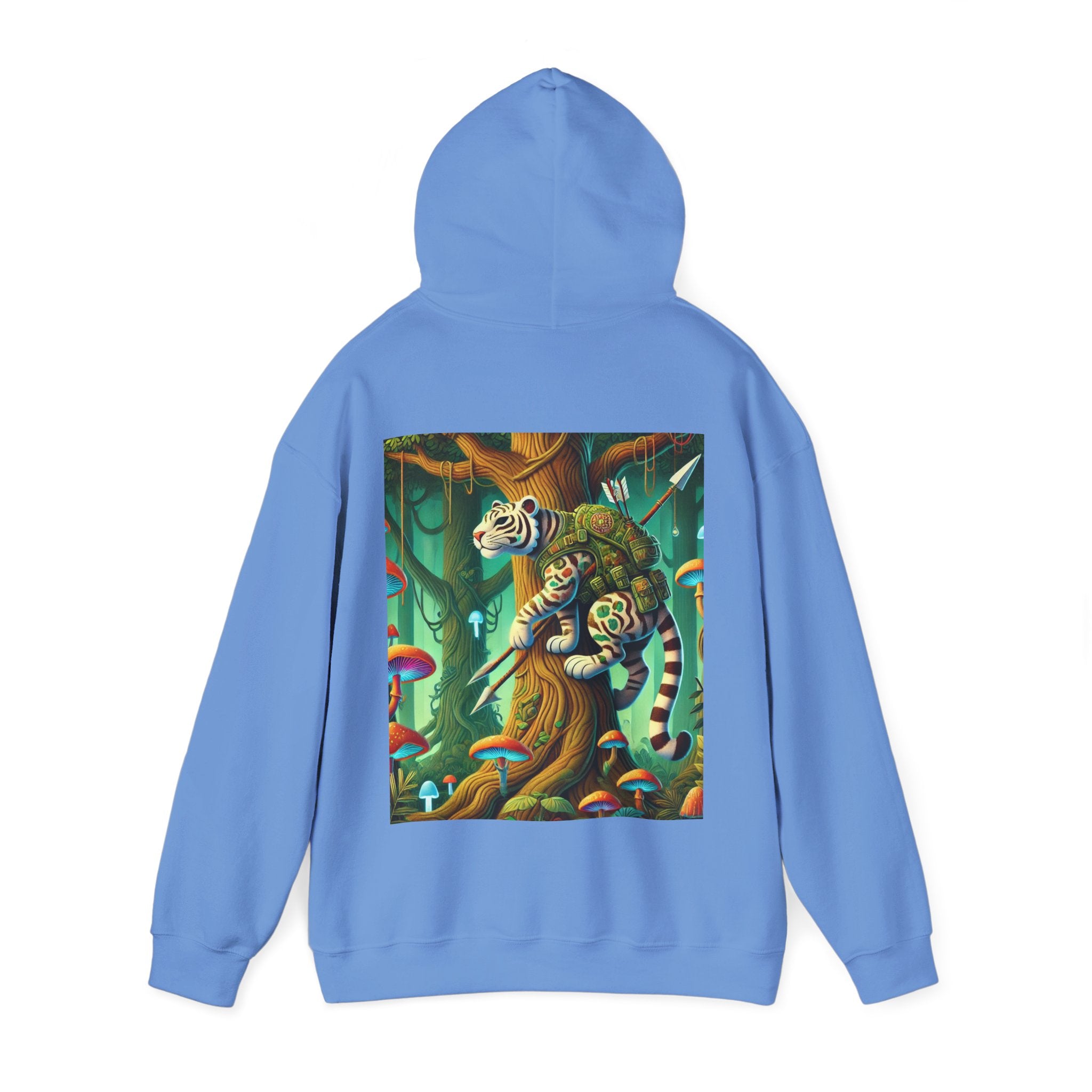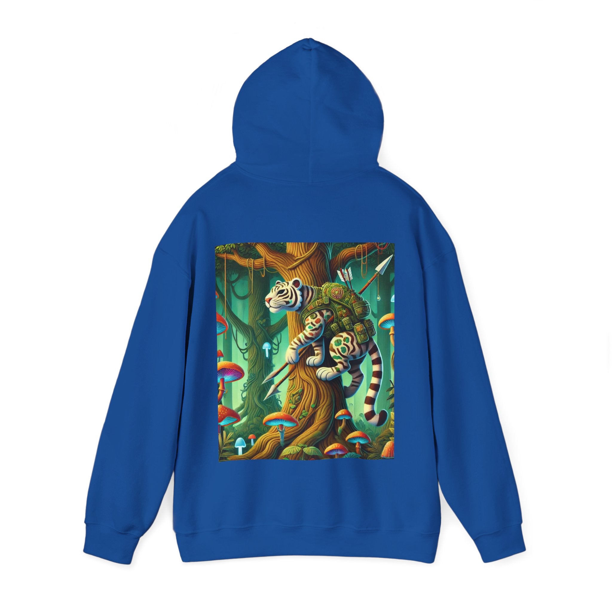 Silent Stripes – Heavy Blend™ Hooded Sweatshirt blends quiet power with the allure of a hidden world deep in the ancient jungle. The artwork follows a solitary tiger moving through an enchanted forest, its stripes merging so seamlessly with the misty, bioluminescent glow that it seems to appear and vanish with every step. Ascending a towering tree, it becomes part guardian, part shadow, part myth—an otherworldly creature whose presence feels both serene and electrifying. The scene captures a moment where nature, magic, and silence hold their breath together.