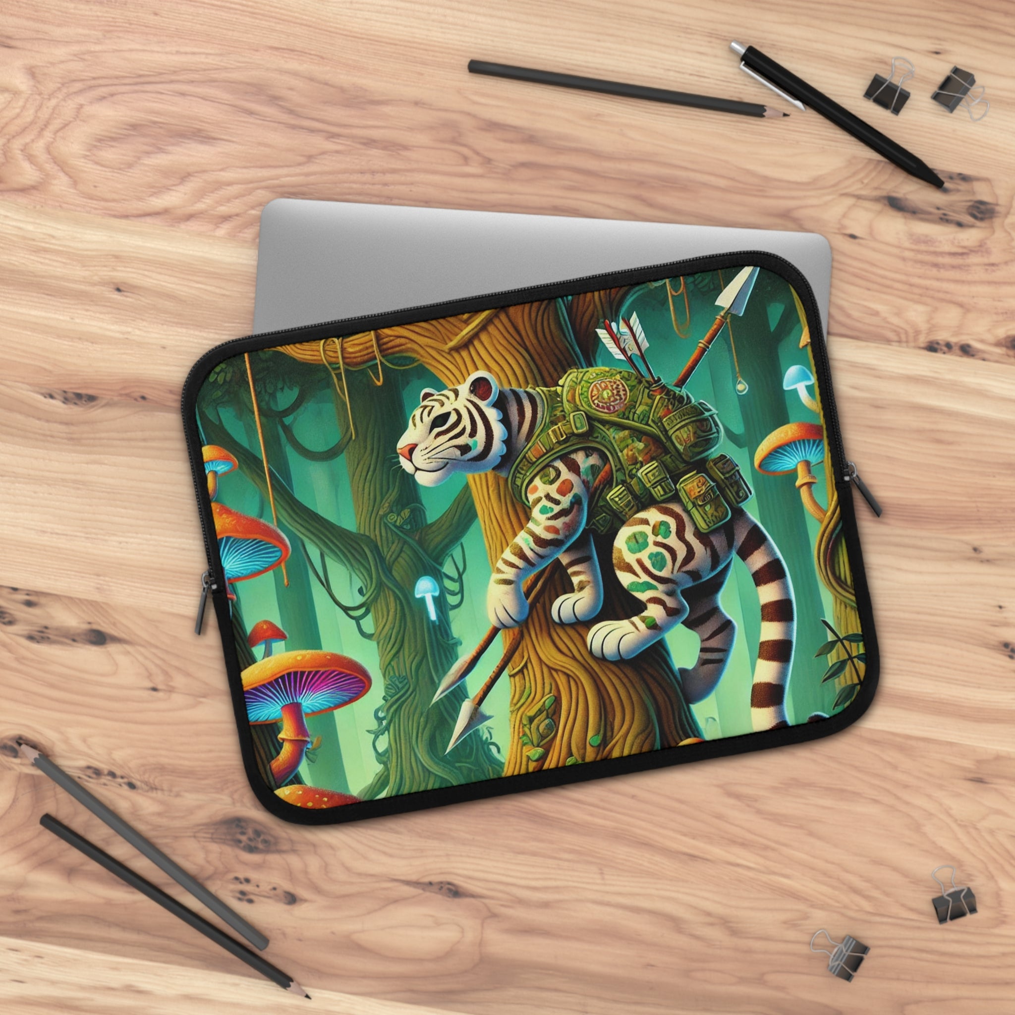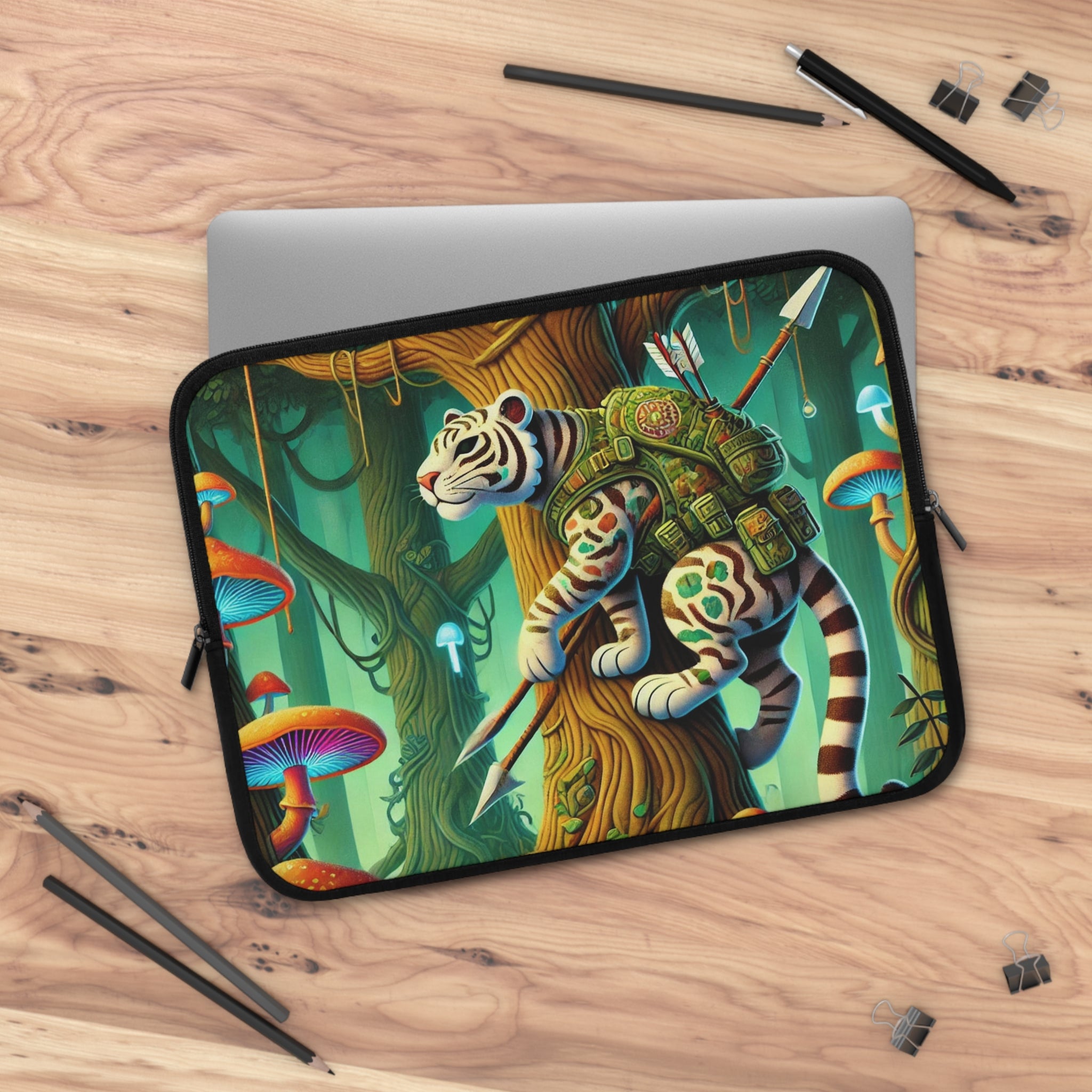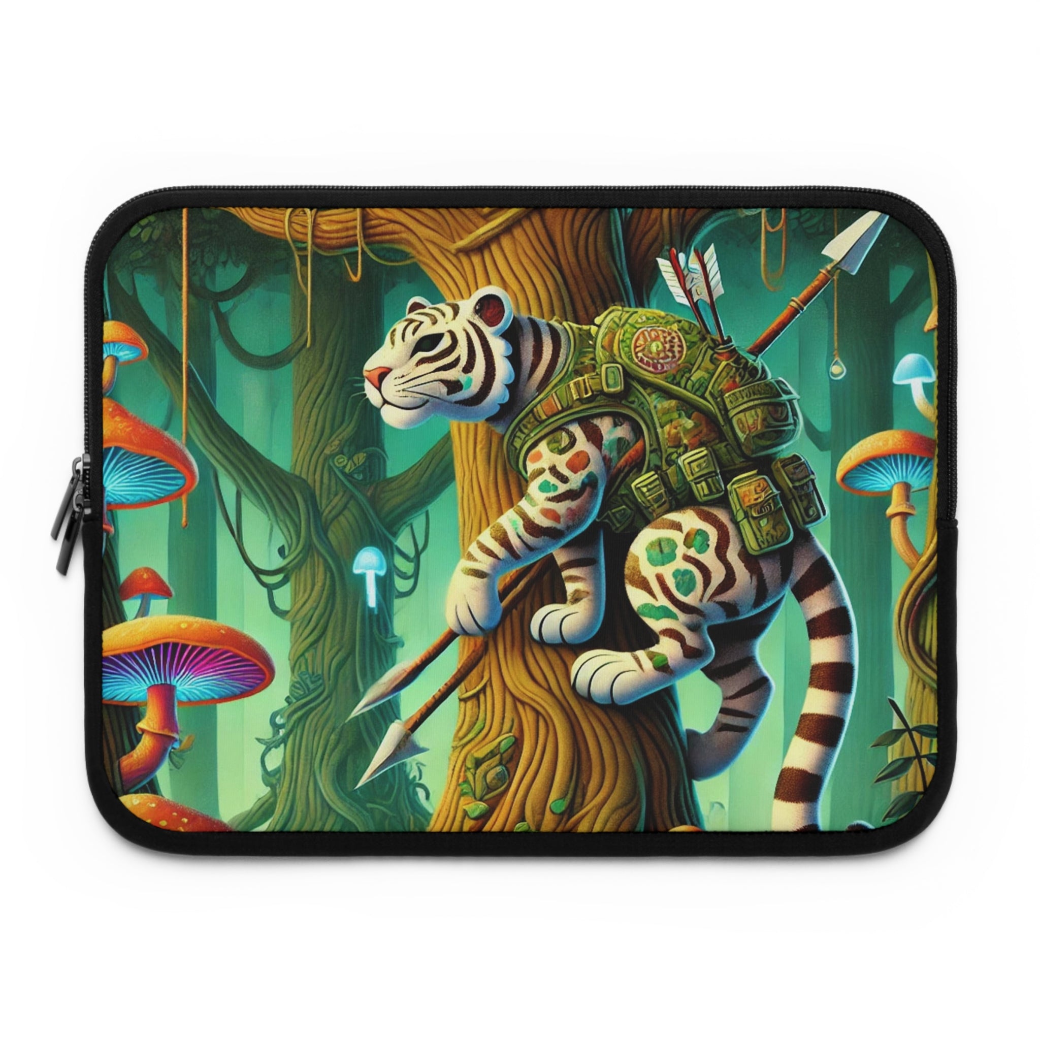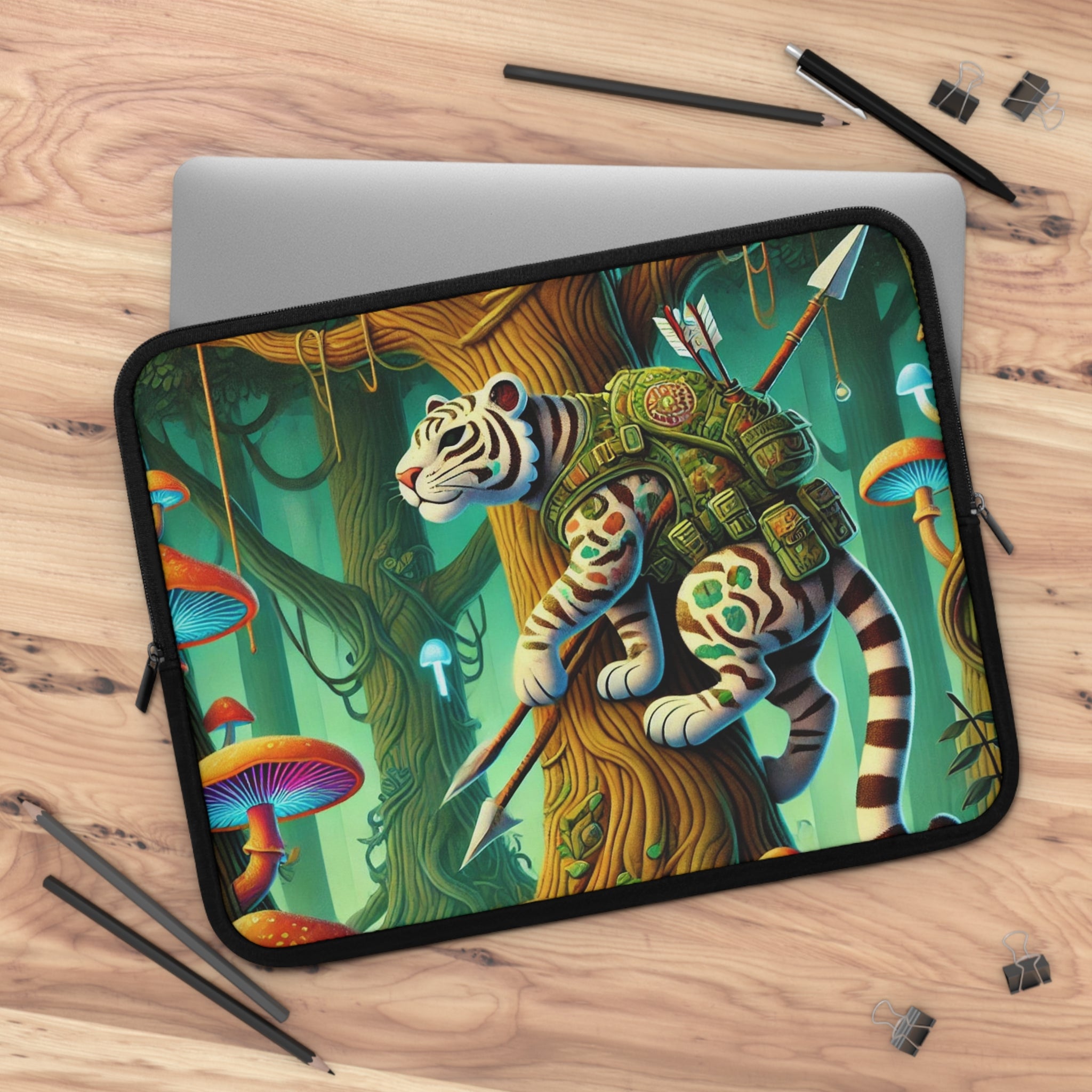 Move through your day with quiet confidence and untamed grace with the Silent Stripes Laptop Sleeve. The artwork captures the mesmerizing stillness of a stealthy tiger scaling the immense trunk of an ancient tree, its striped fur dissolving into the shifting light of a misty emerald forest. Each step is a whisper — every muscle taut with focus — as it becomes one with the dense canopy and the glowing flora below. Shadows and light dance across its body, creating a living illusion of nature’s camouflage. In this enchanted jungle, the air hums with unseen energy, as if the forest itself holds its breath for the silent passage of its most elusive guardian.