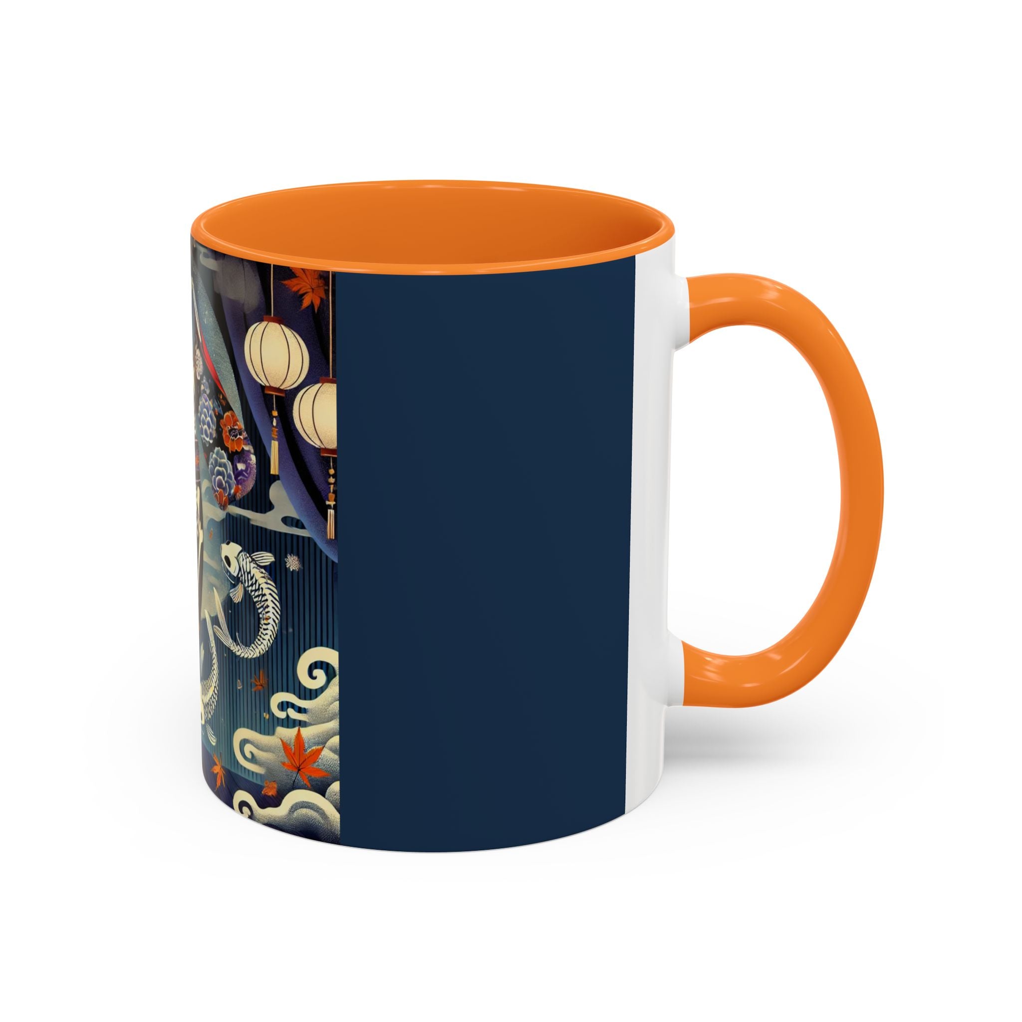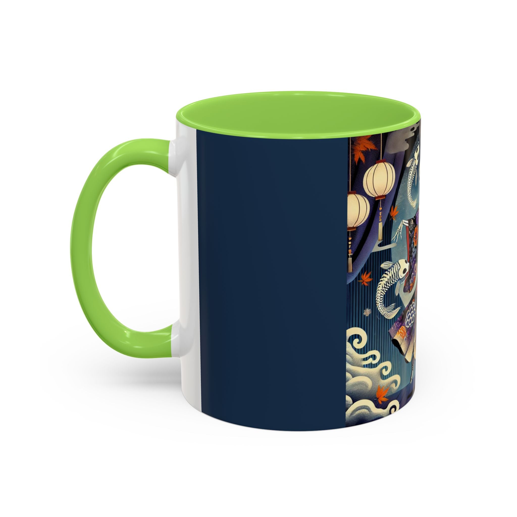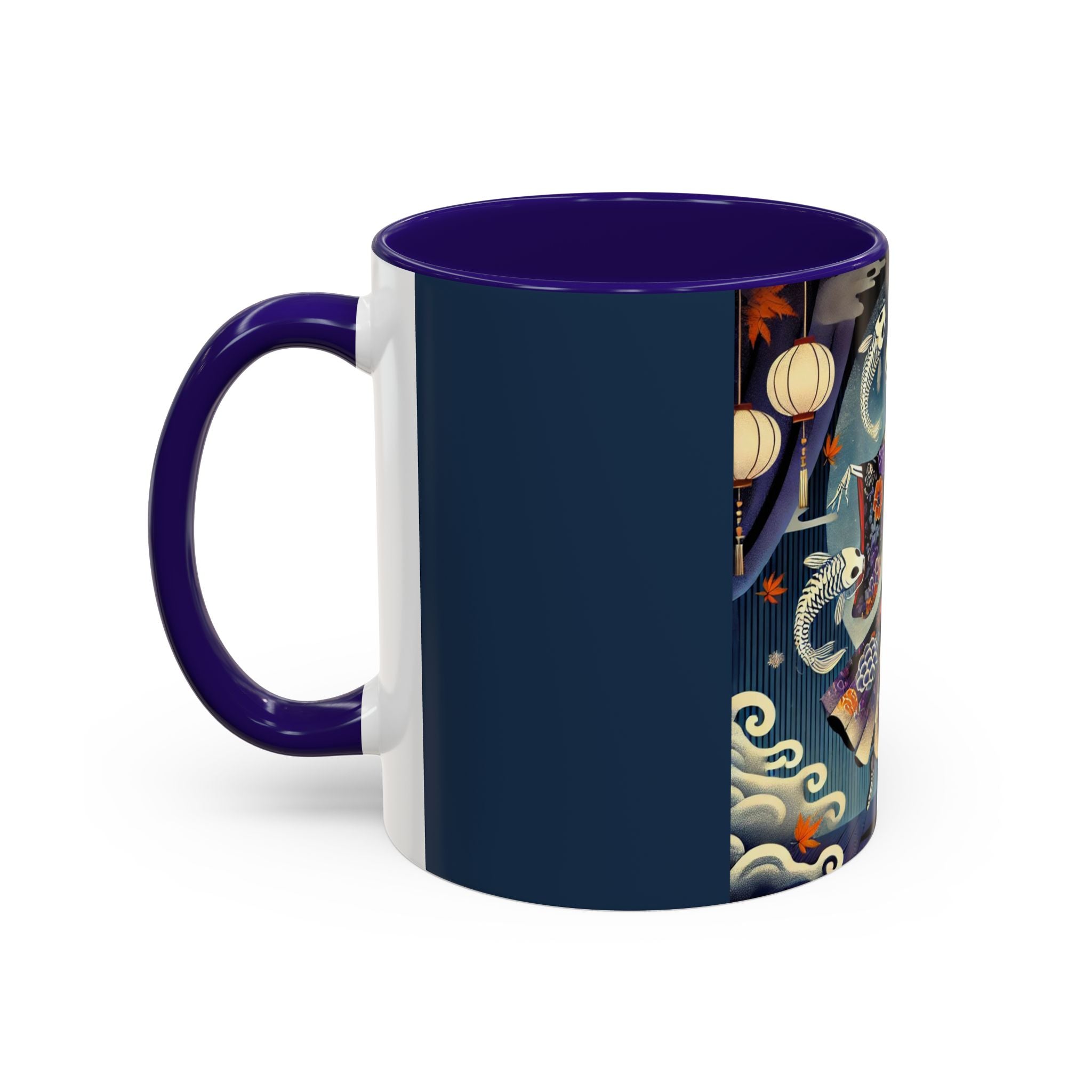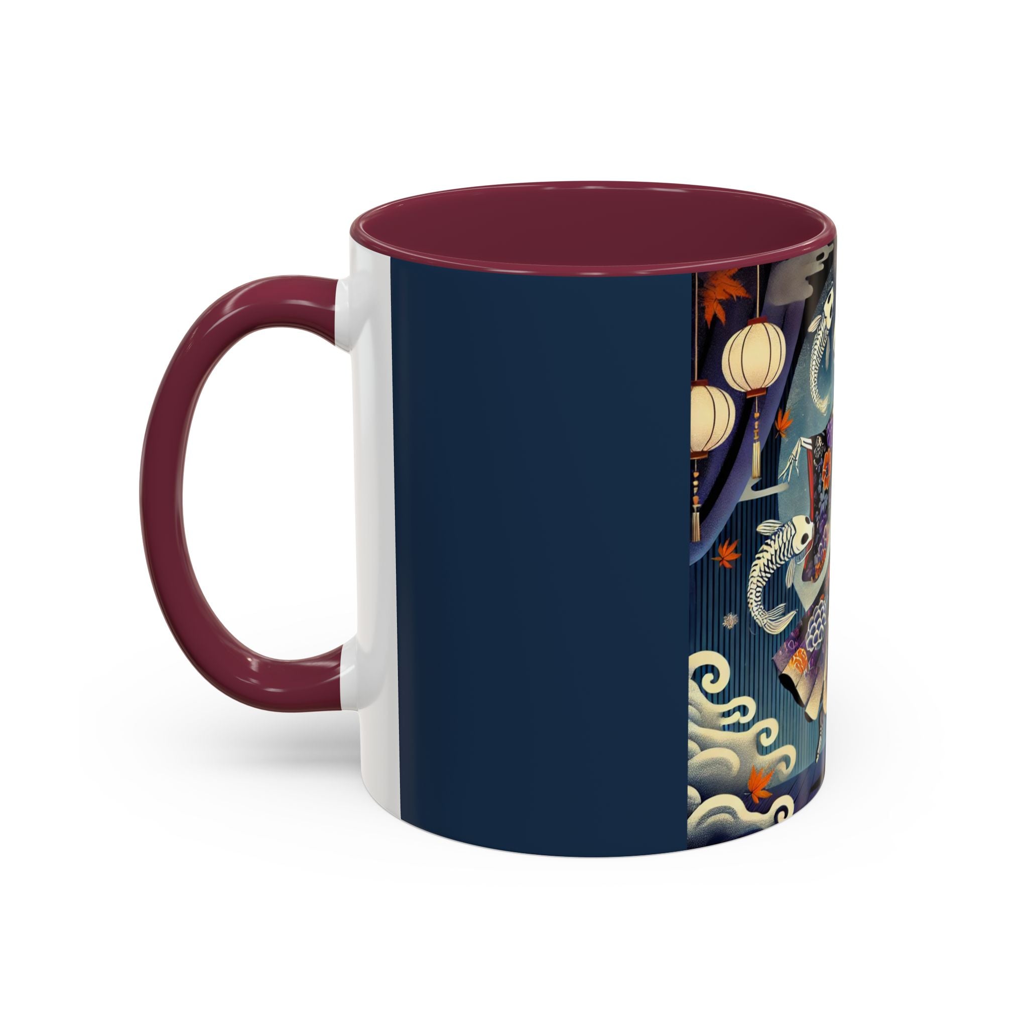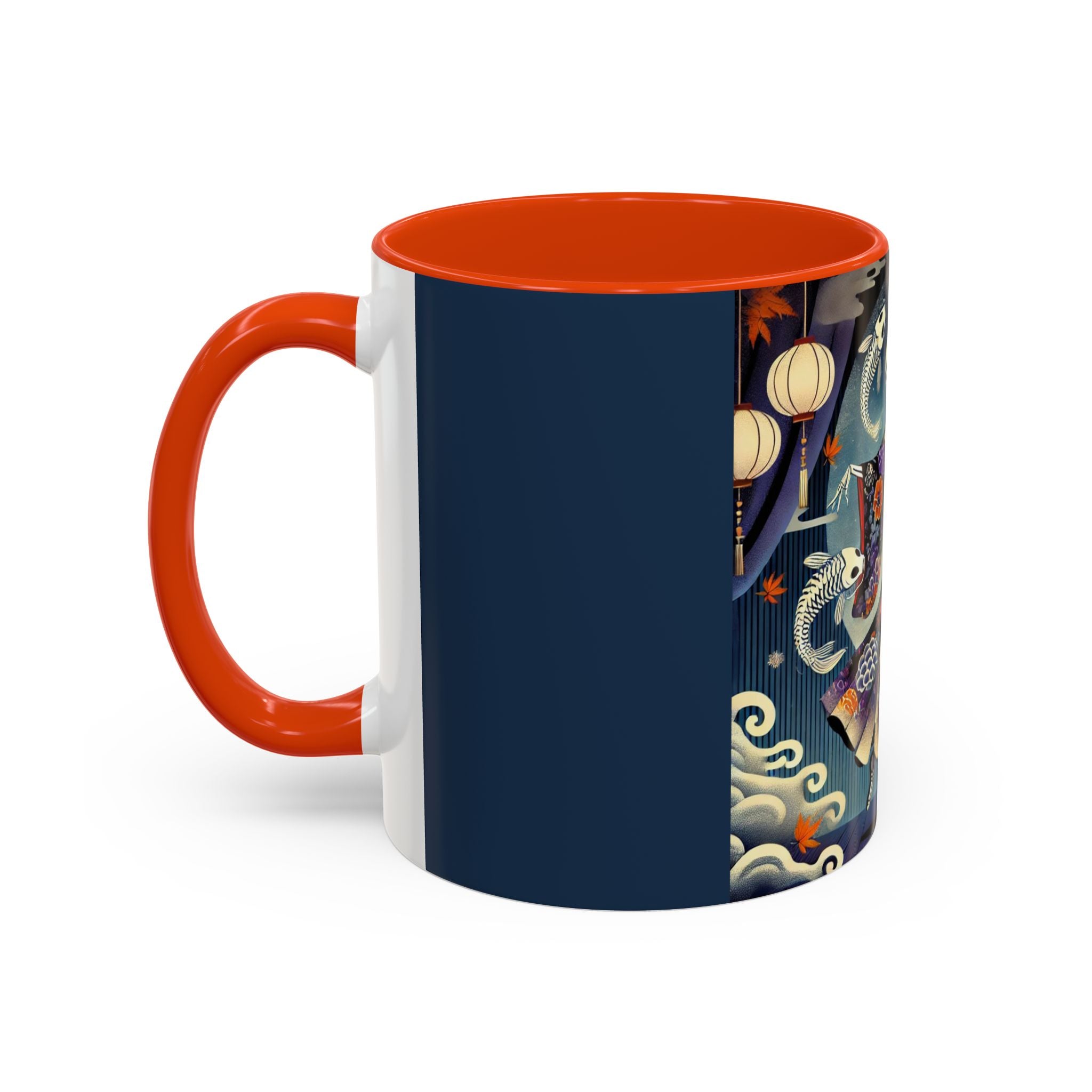 Bring a touch of theatrical Halloween flair to your daily routine with the Skeleton Kabuki Performer Mug. Available in 11oz or 15oz sizes and 12 color options, each mug features a glossy finish, colored handle, and interior that perfectly frames the artwork. The design showcases a Kabuki-inspired skeleton dancer mid-motion, draped in a dramatic skeleton-patterned kimono. Blending the elegance of Japanese theater with spooky seasonal charm, this mug is as durable as it is enchanting—ideal for coffee, tea, or festive gatherings.