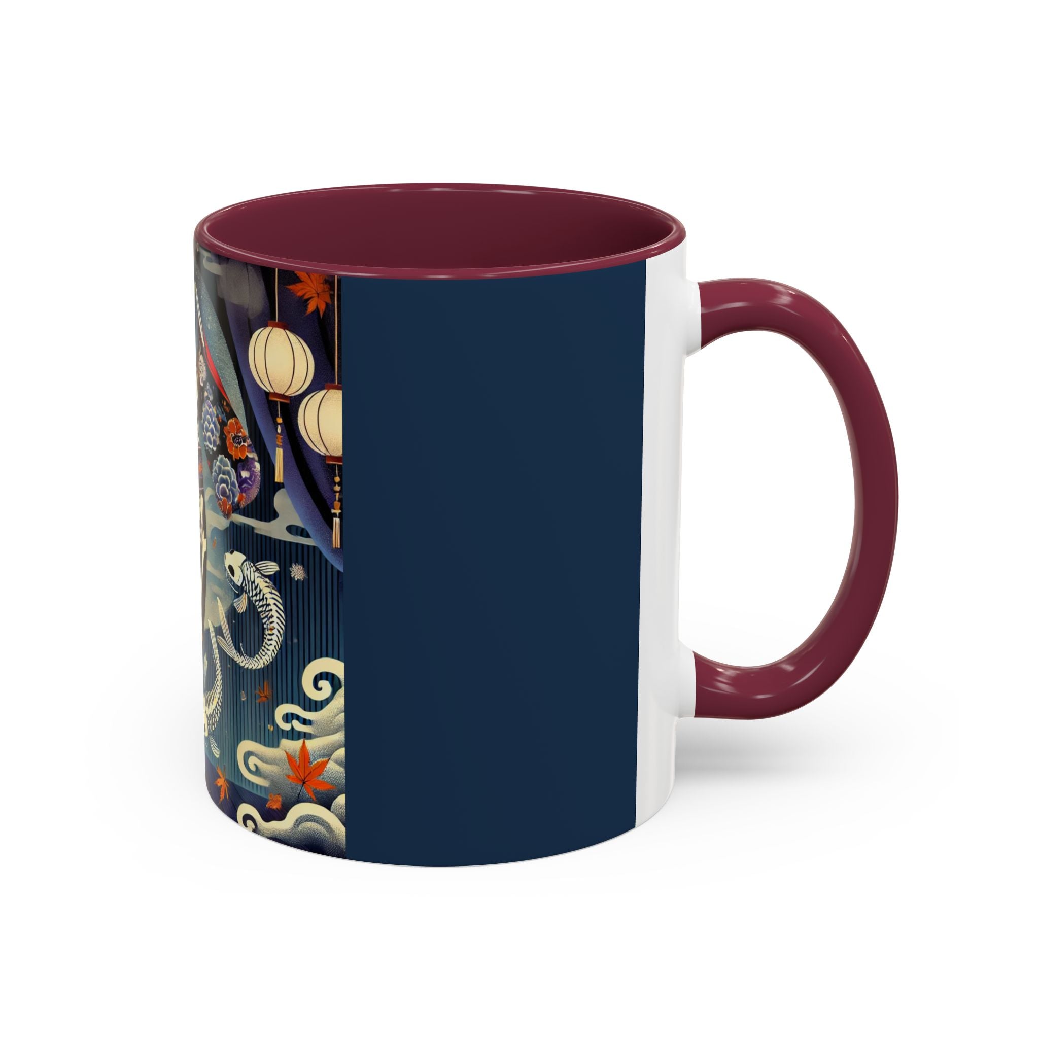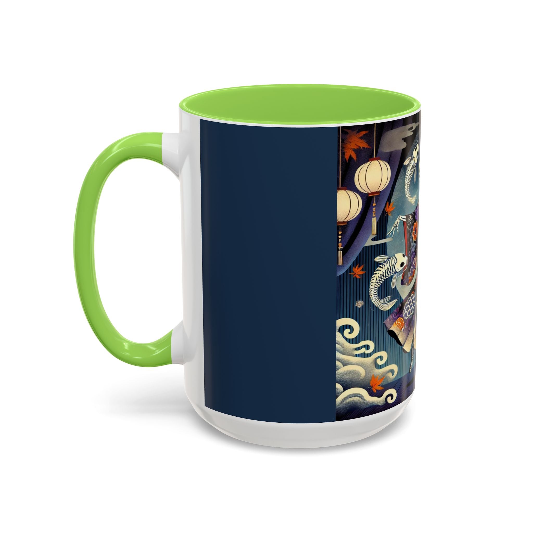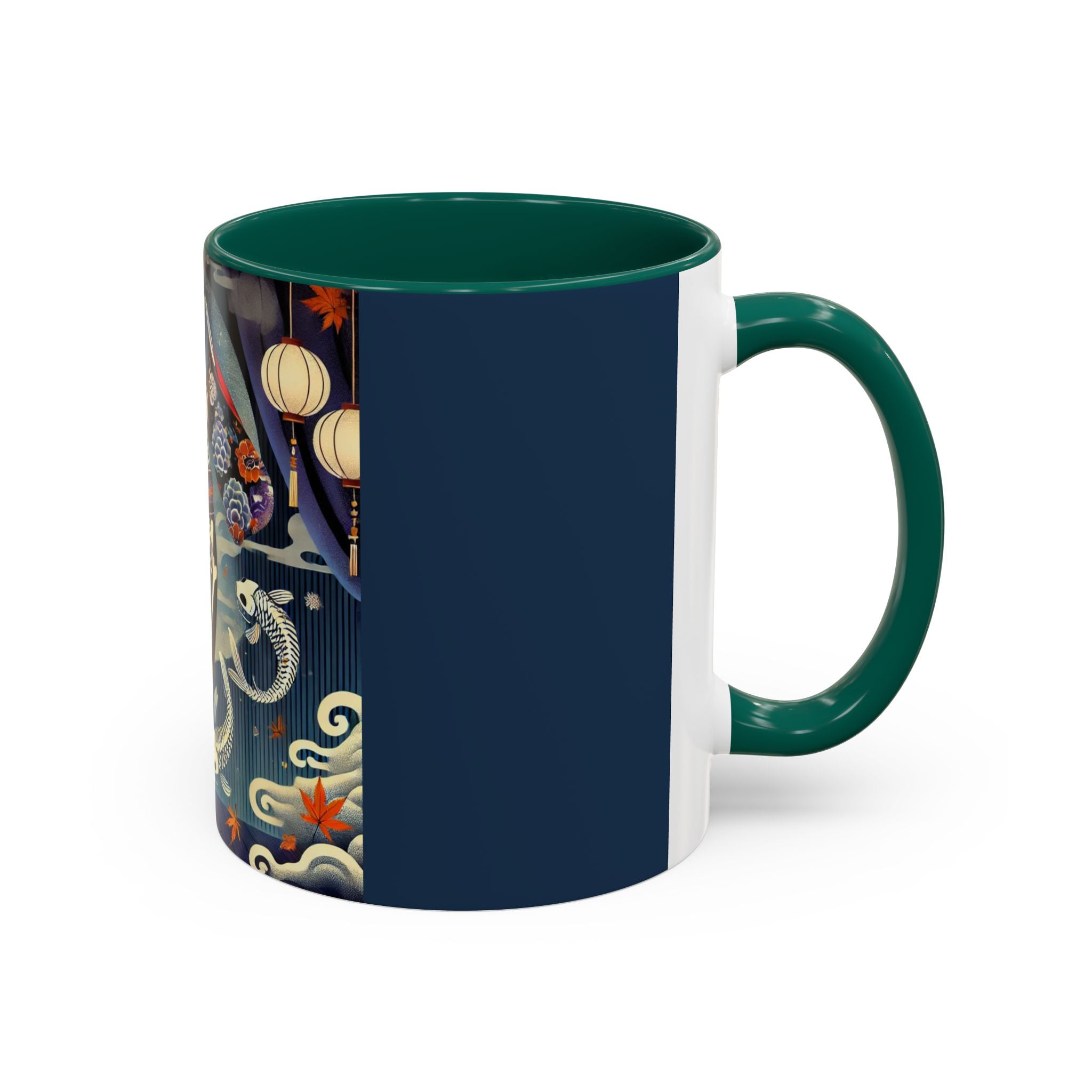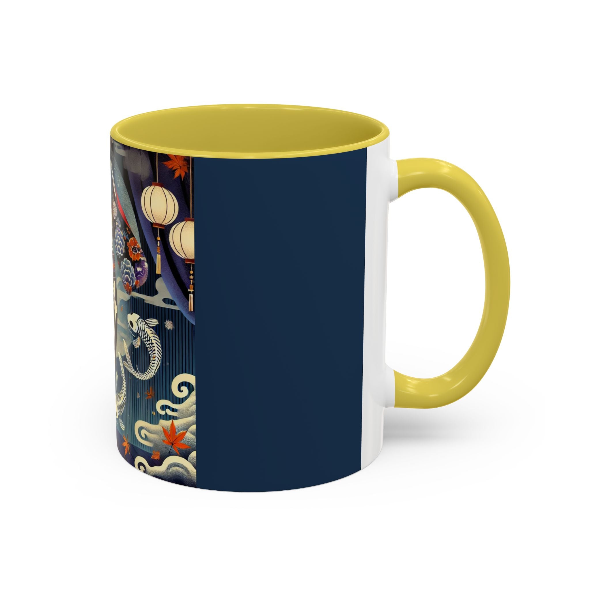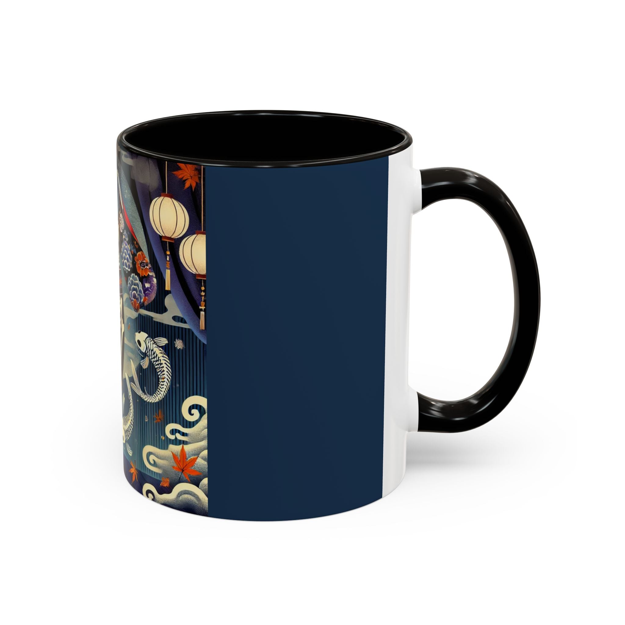 Bring a touch of theatrical Halloween flair to your daily routine with the Skeleton Kabuki Performer Mug. Available in 11oz or 15oz sizes and 12 color options, each mug features a glossy finish, colored handle, and interior that perfectly frames the artwork. The design showcases a Kabuki-inspired skeleton dancer mid-motion, draped in a dramatic skeleton-patterned kimono. Blending the elegance of Japanese theater with spooky seasonal charm, this mug is as durable as it is enchanting—ideal for coffee, tea, or festive gatherings.