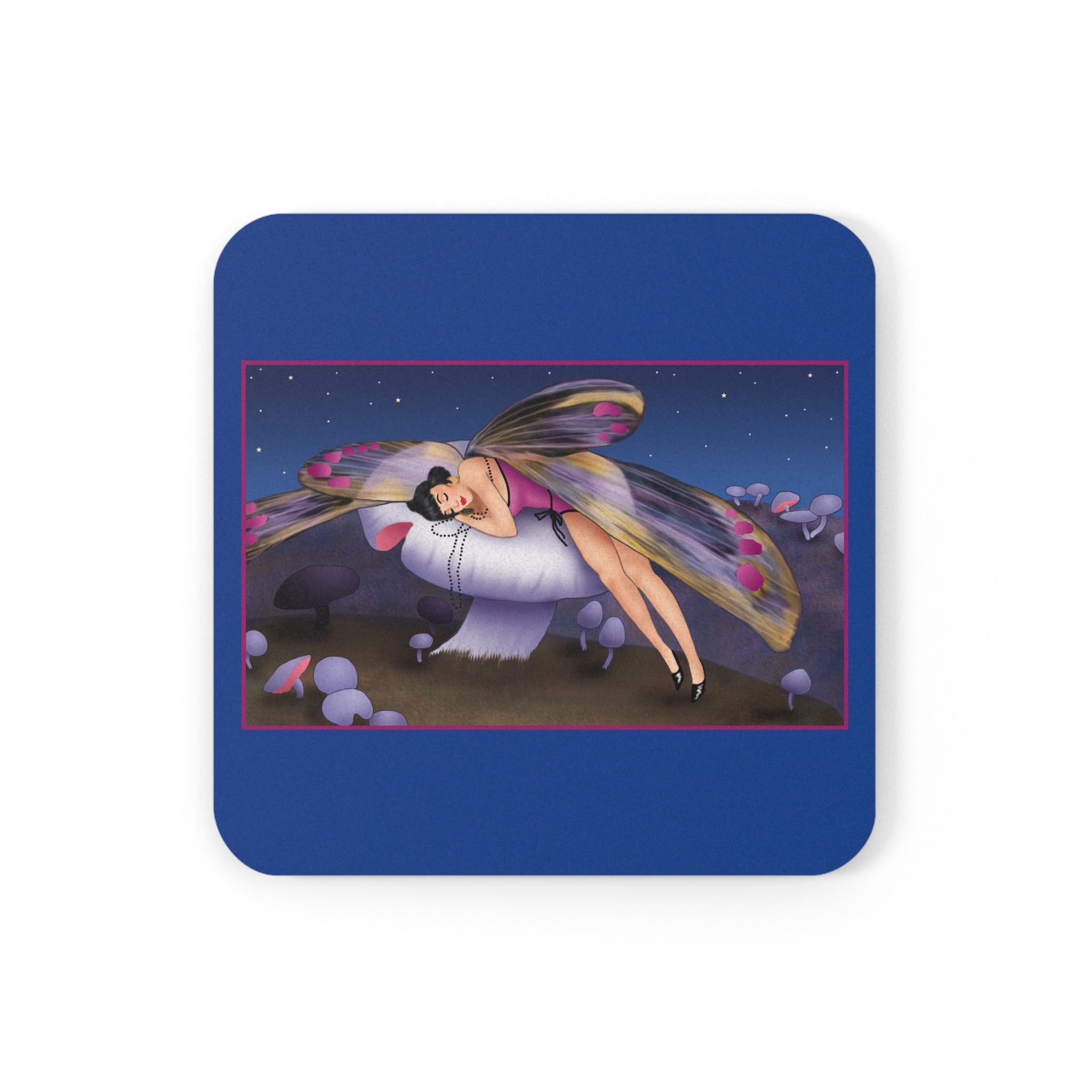 Slumbering Fairy | Cork Back Coaster captures the serene beauty and refined whimsy of vintage Art Deco illustration. This exquisite piece transforms your tabletop into a gallery of elegance, blending soft color tones with timeless fantasy artistry.
