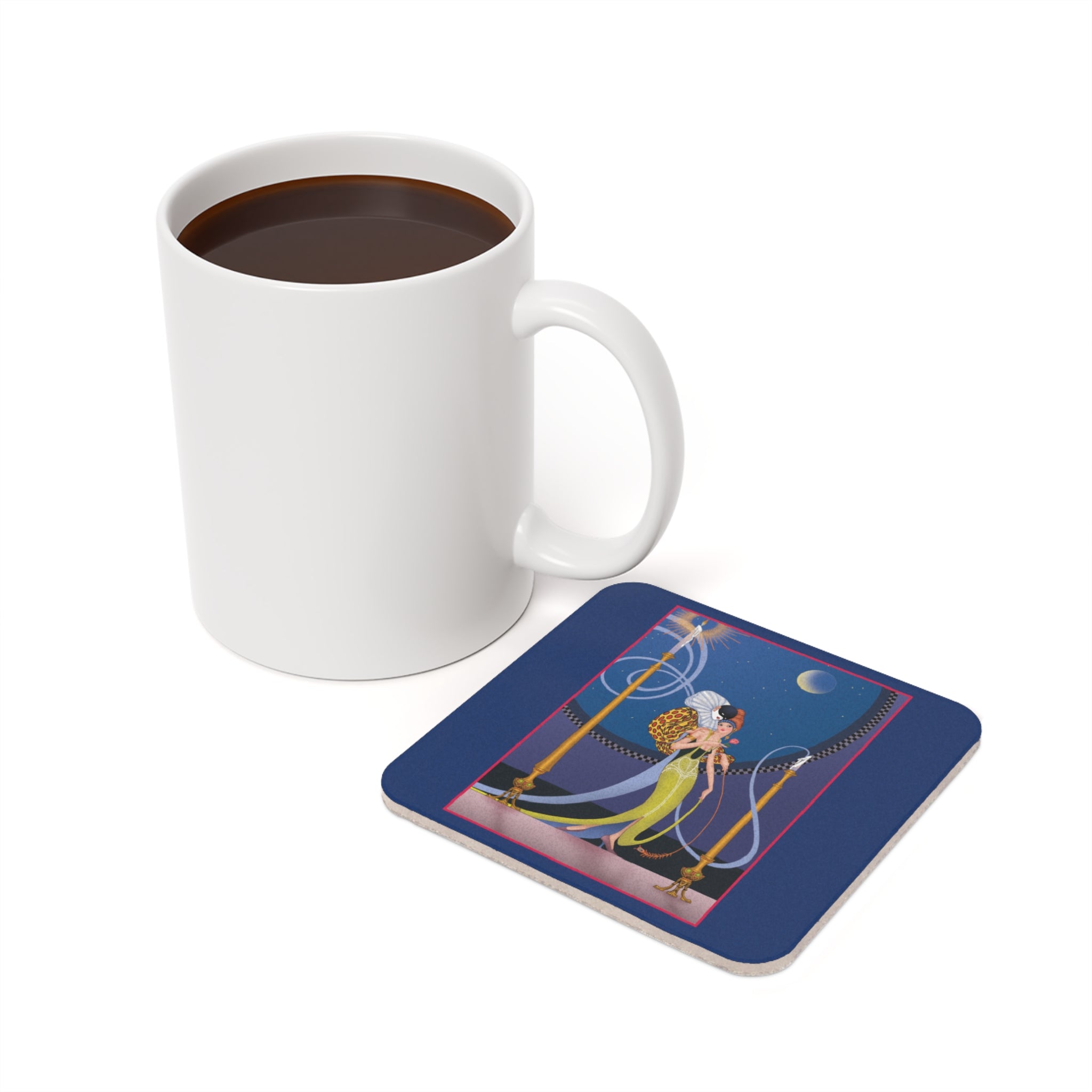 Smoke and Secrets | Cork Back Coaster evokes the allure and mystery of the roaring 1920s, blending Art Deco sophistication with cinematic intrigue. This decorative coaster transforms a moment of glamour into a timeless keepsake for lovers of vintage style and refined design.