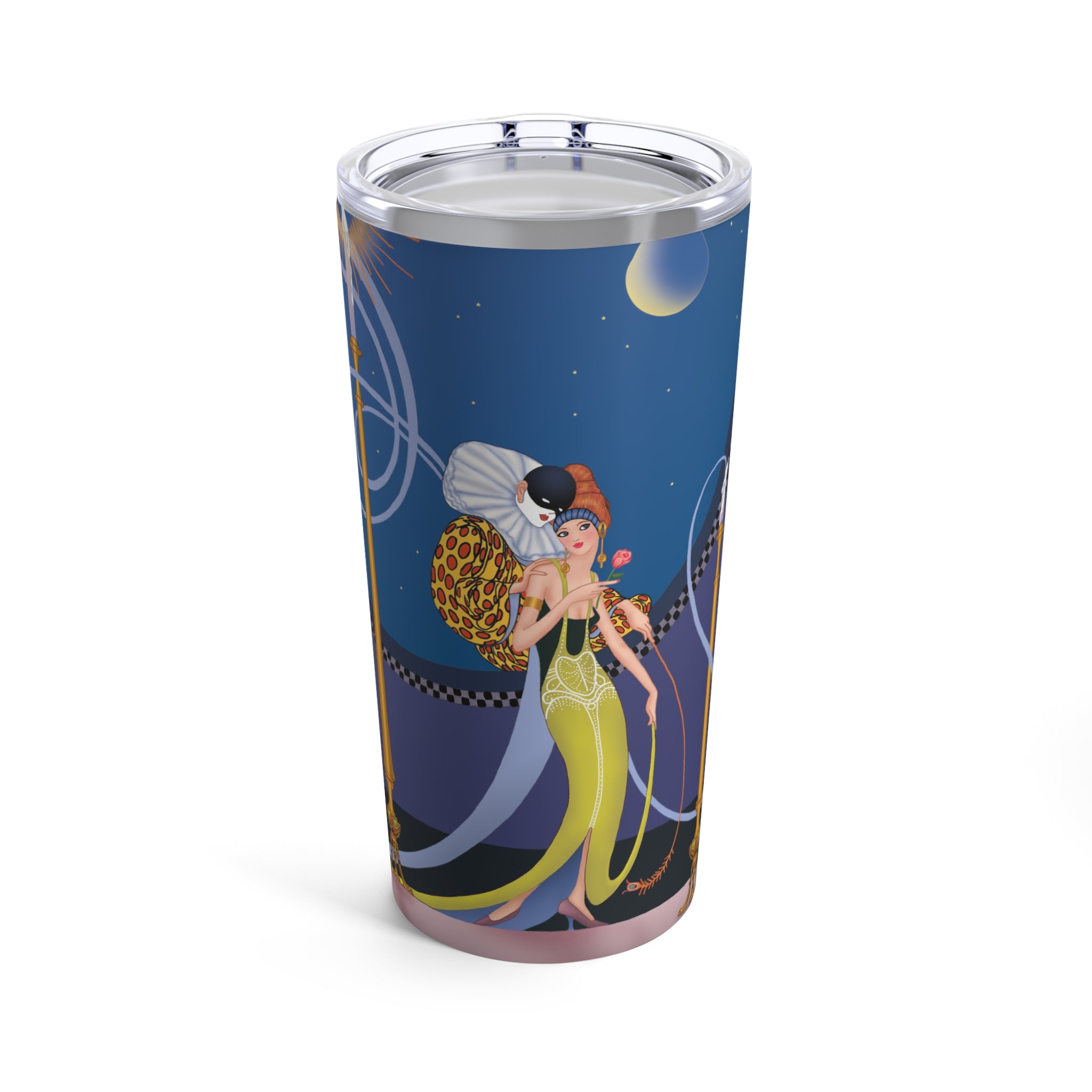 Artwork designed and digitally remastered by Sarasvati Designs. In this captivating image set in the 1920s during Prohibition, an air of elegance and fantasy intertwines. A glamorous couple takes center stage, standing in front of a large round window that adds a touch of intrigue to the scene.