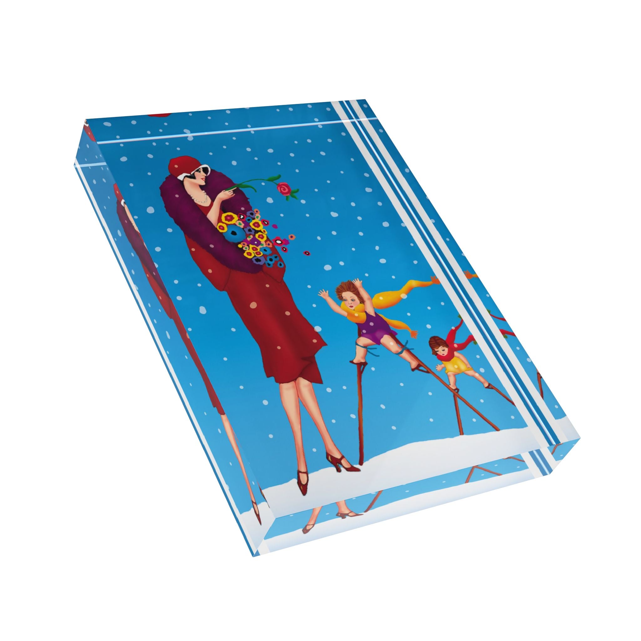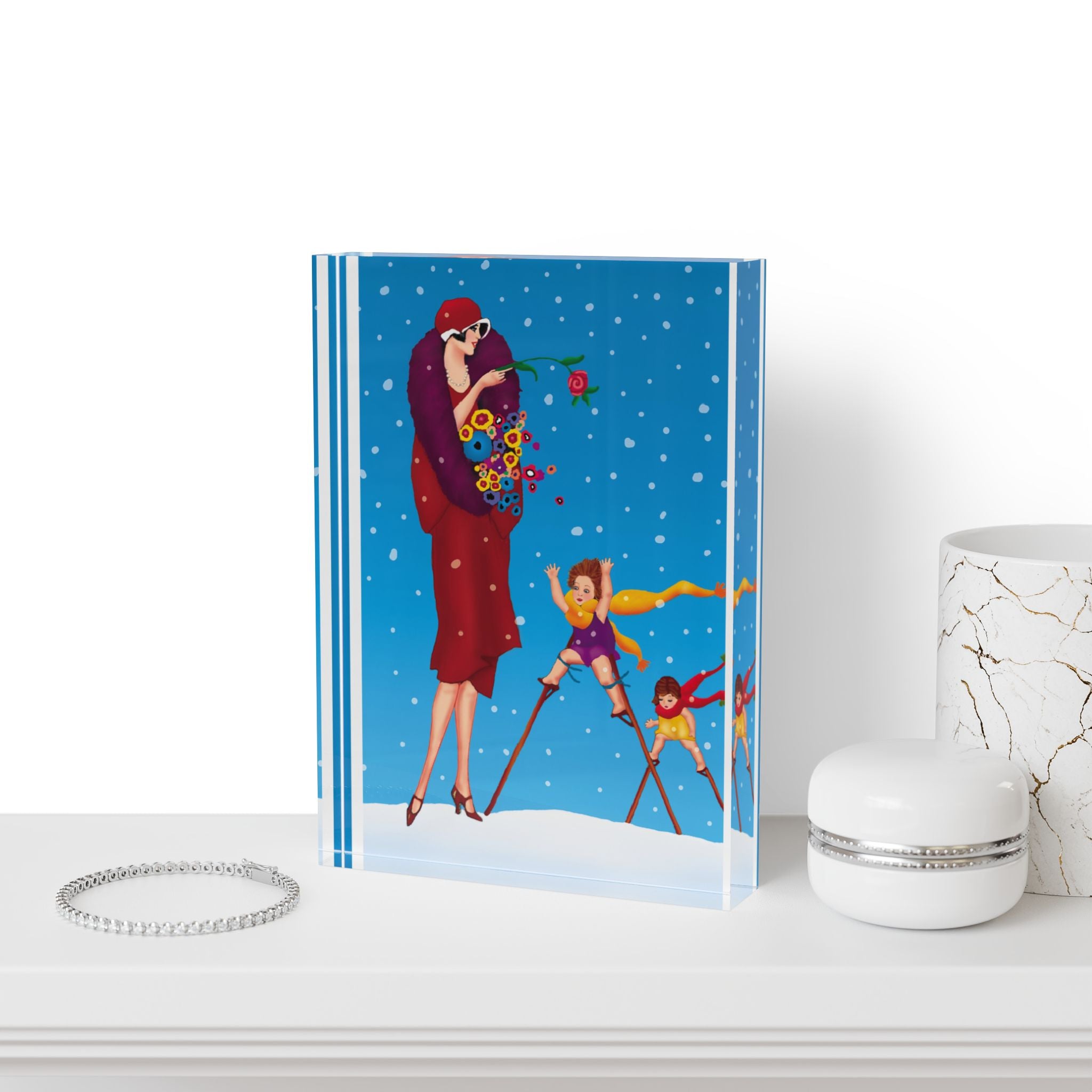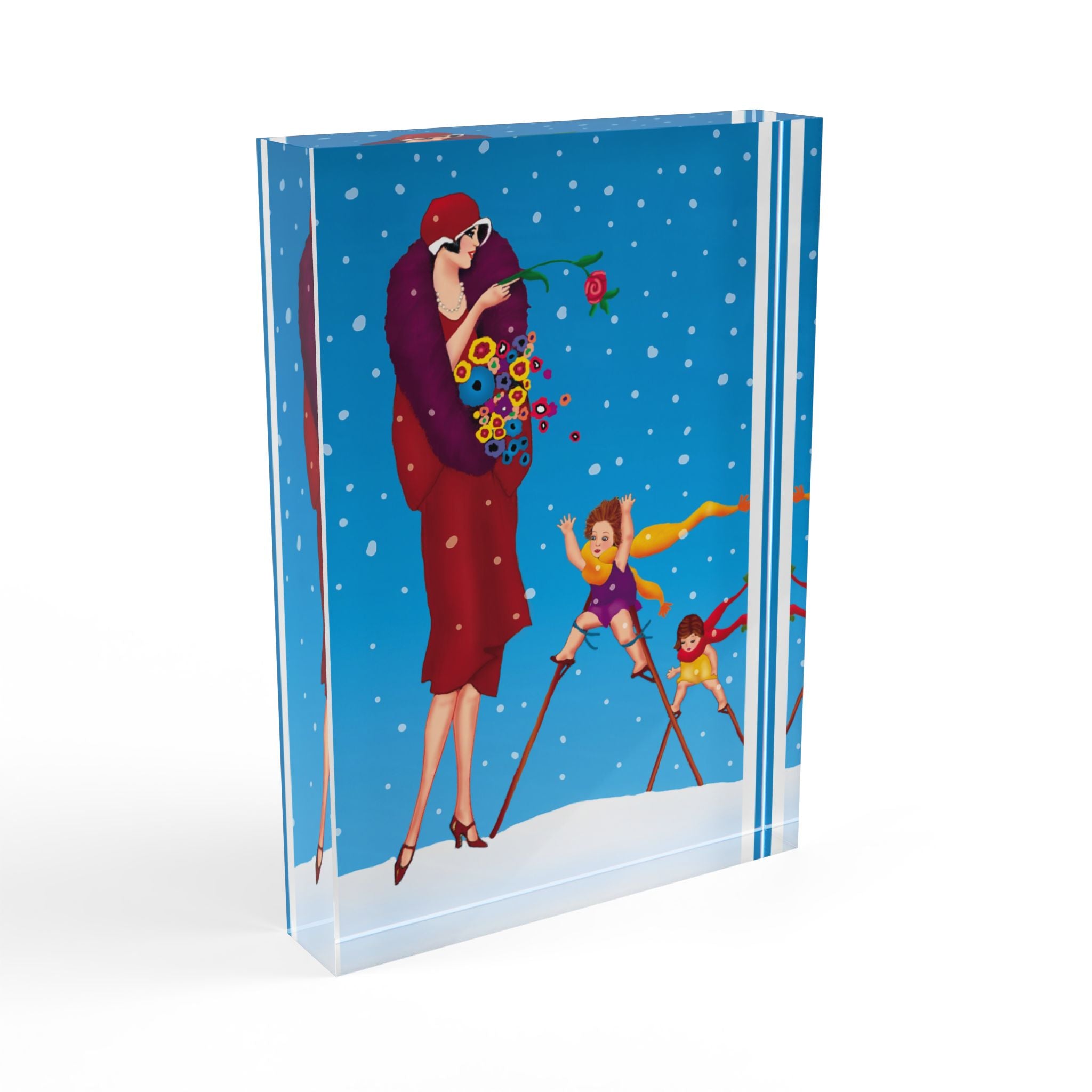 The Snowfall & Couture Acrylic Art Block adds depth and elegance to any space. Made with the AcryliPrint®HD process, it preserves the artwork in crisp detail inside a sturdy acrylic block that looks striking on a desk, shelf, or wall.