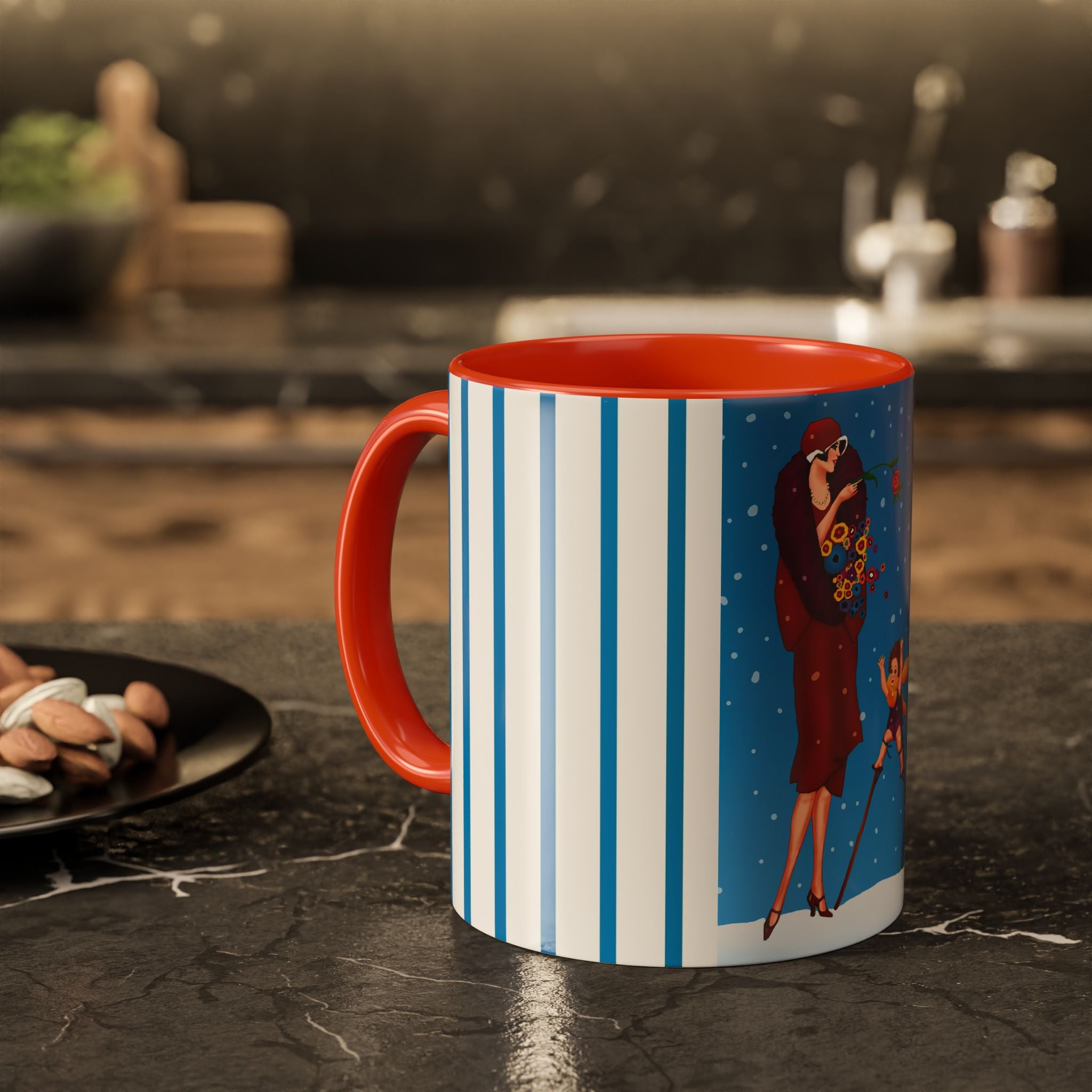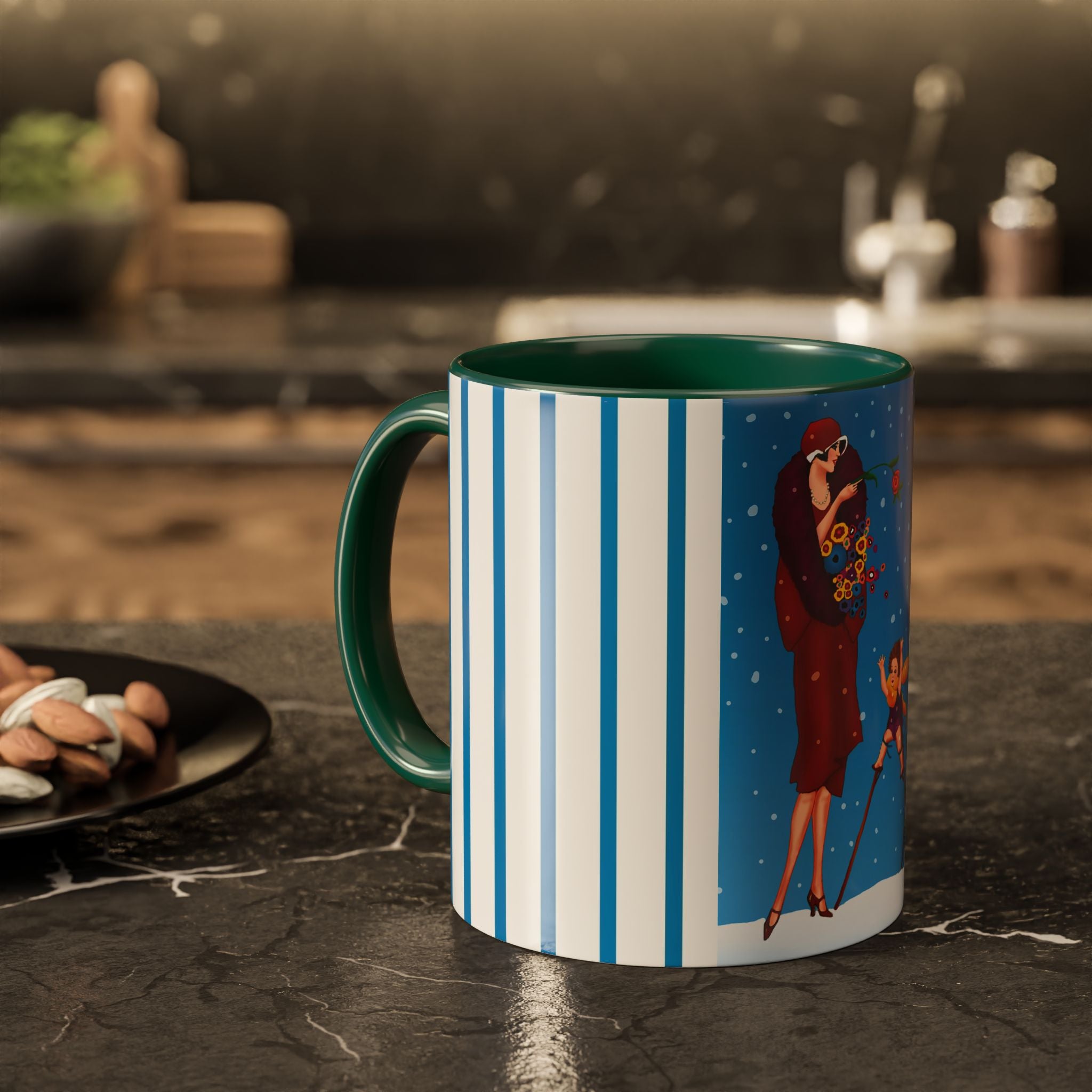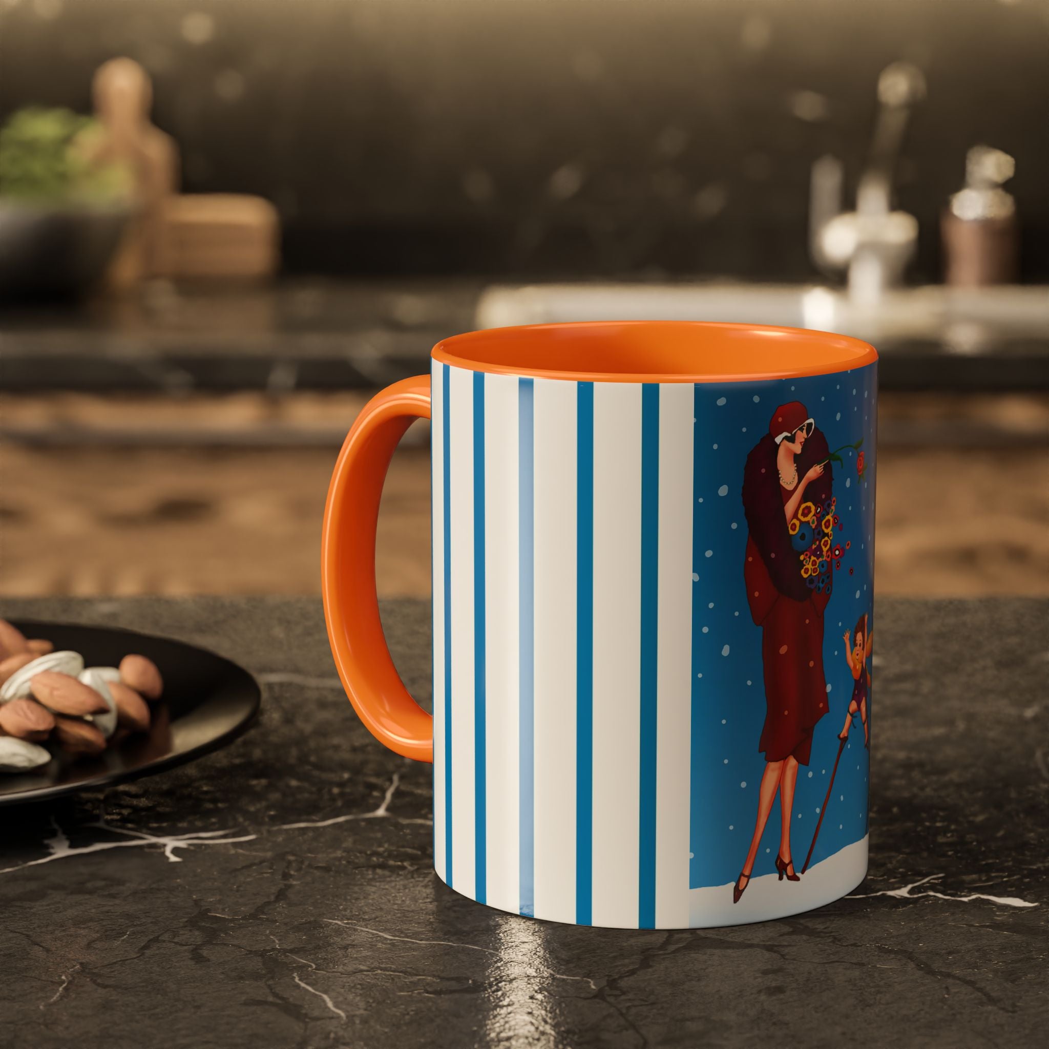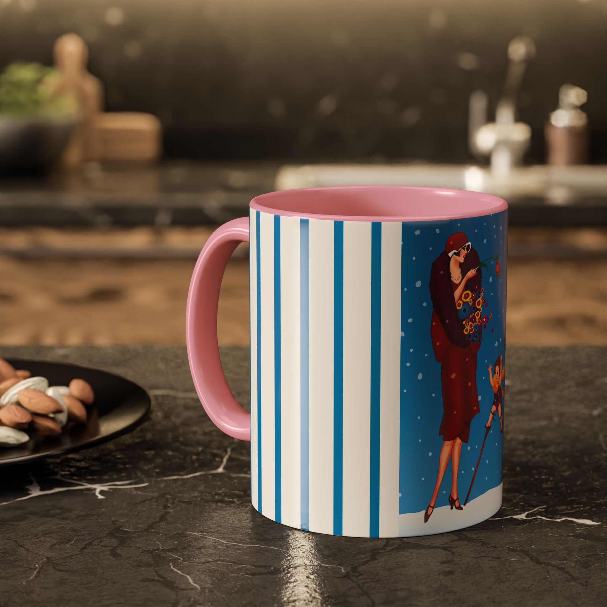 Bring elegance to your daily ritual with the Snowfall & Couture Colorful Mug. Available in 11oz or 15oz sizes and 12 handle color options, each mug features a glossy finish that enhances durability while showcasing the artwork in stunning detail.
