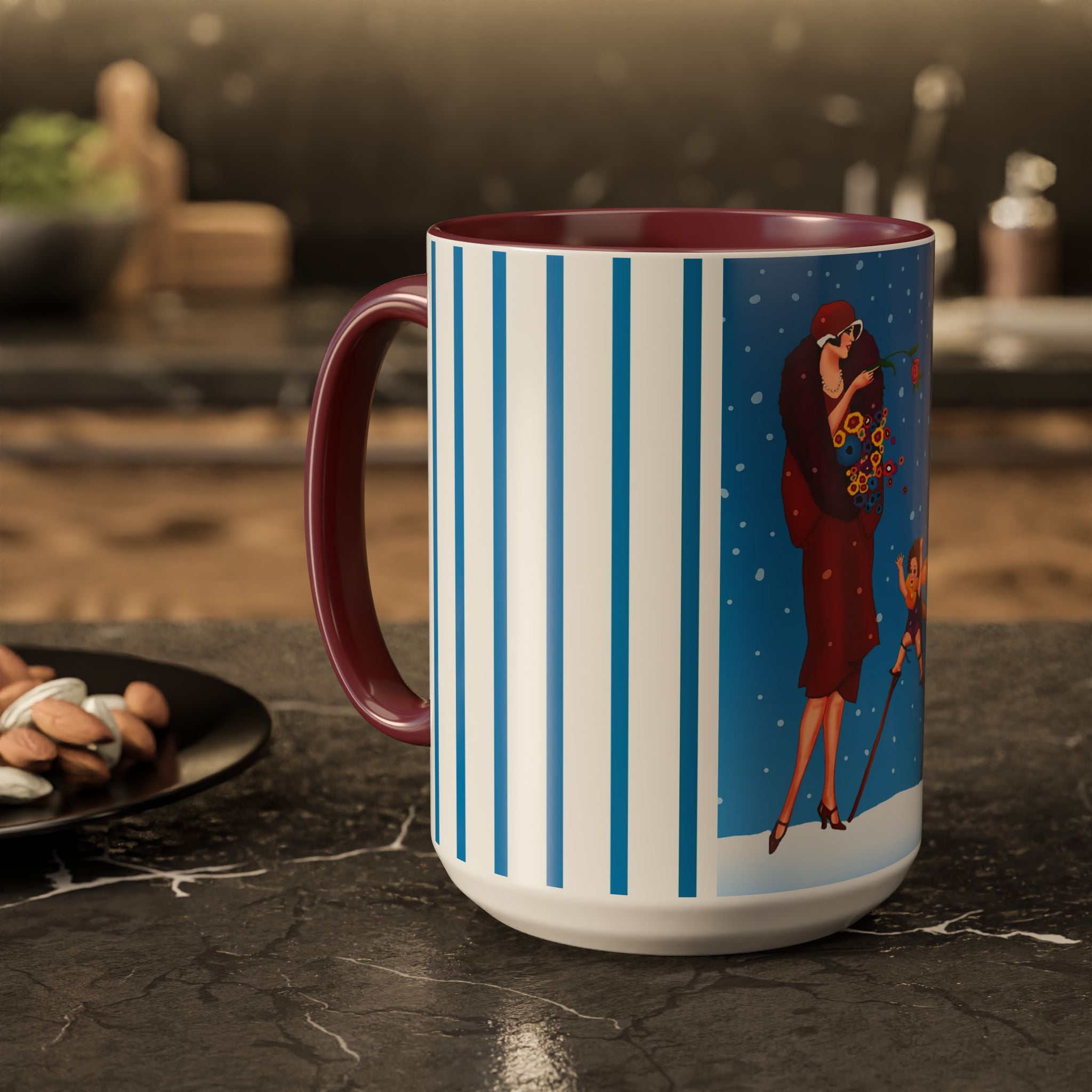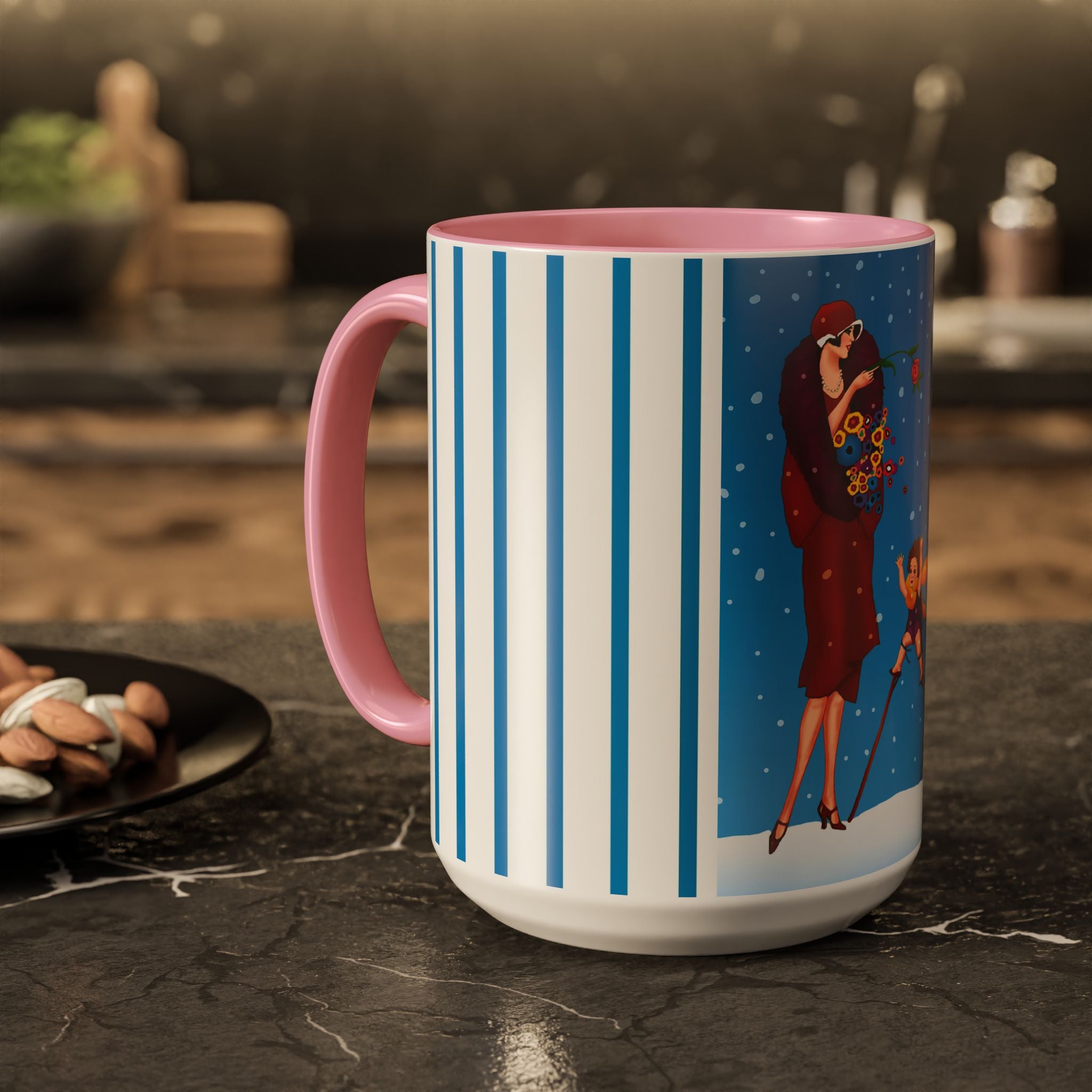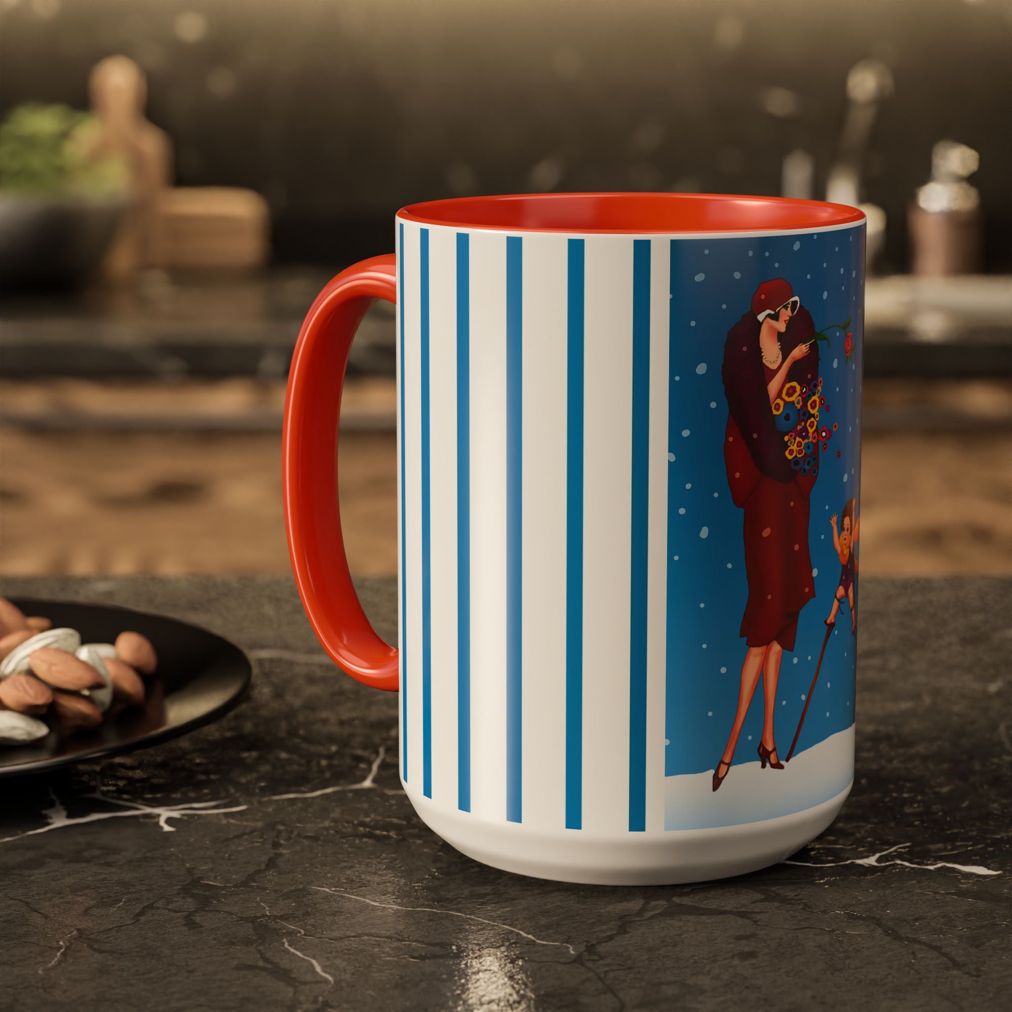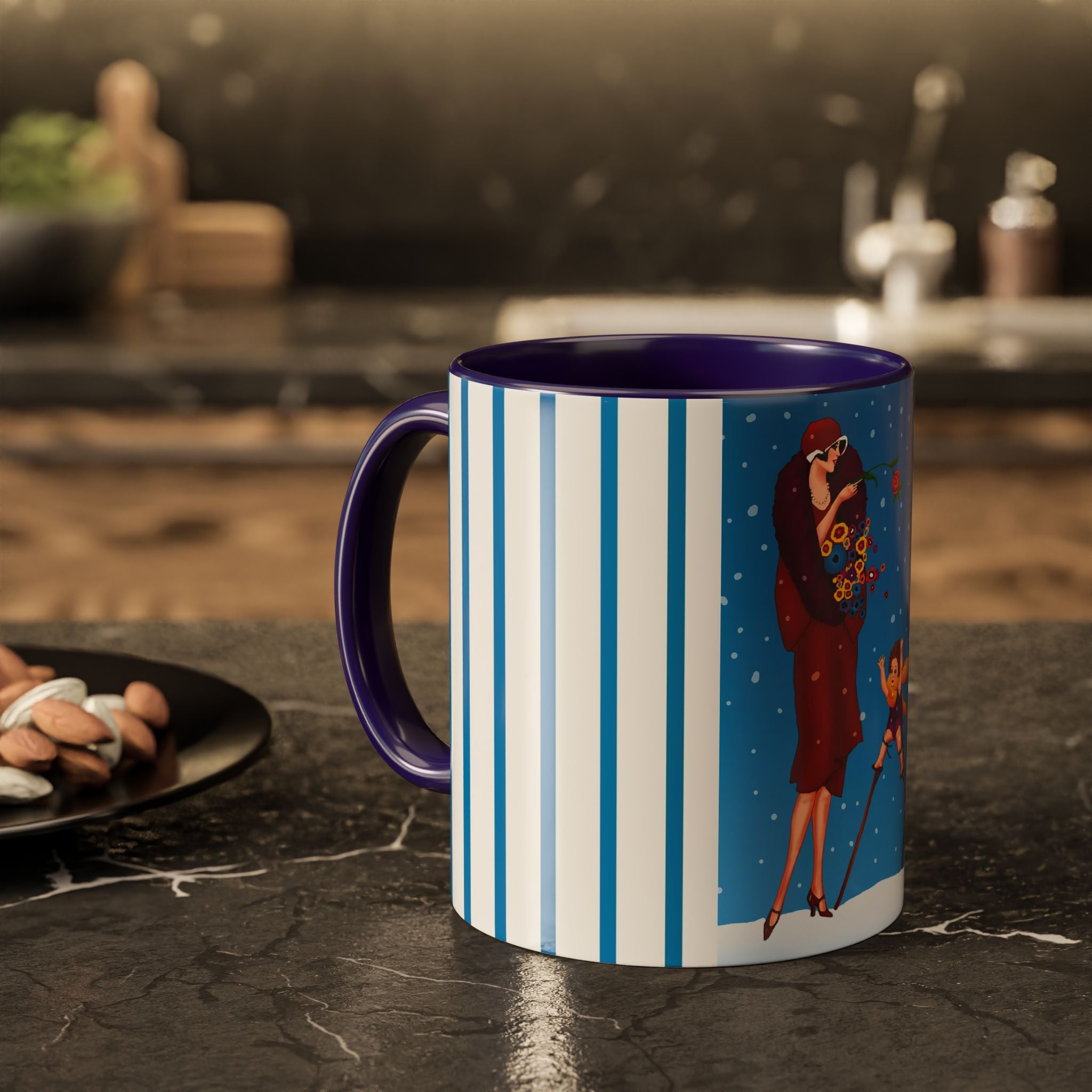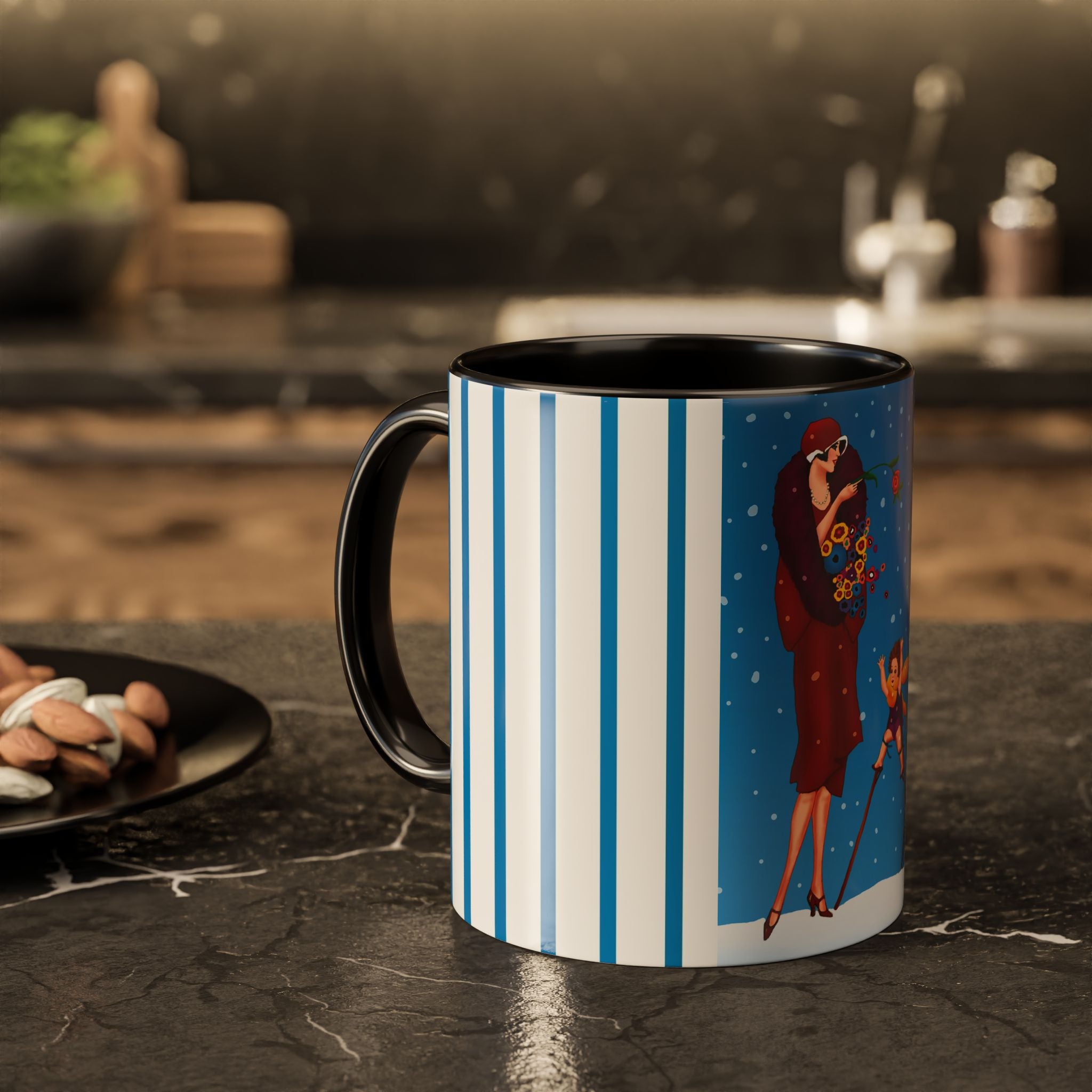 Bring elegance to your daily ritual with the Snowfall & Couture Colorful Mug. Available in 11oz or 15oz sizes and 12 handle color options, each mug features a glossy finish that enhances durability while showcasing the artwork in stunning detail.