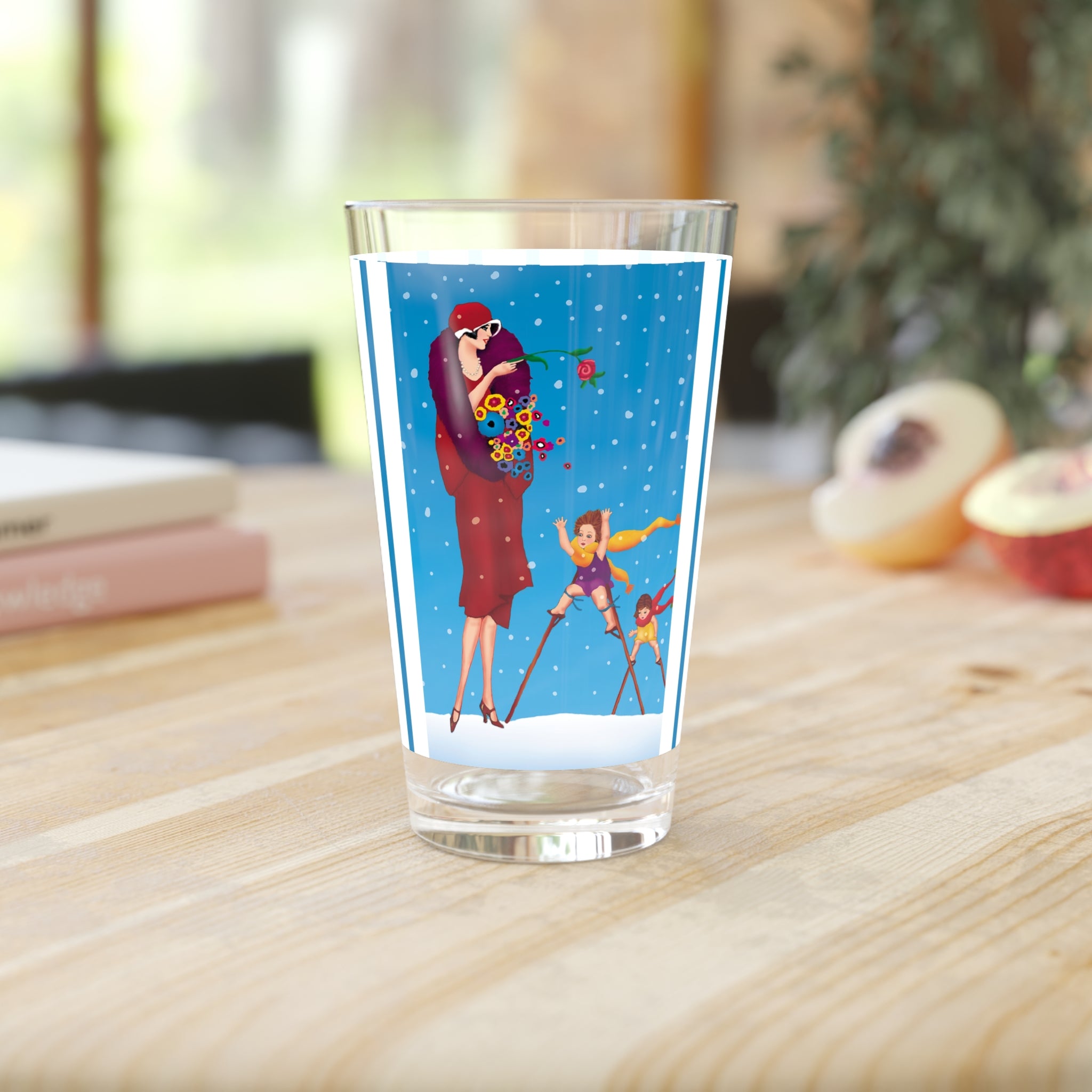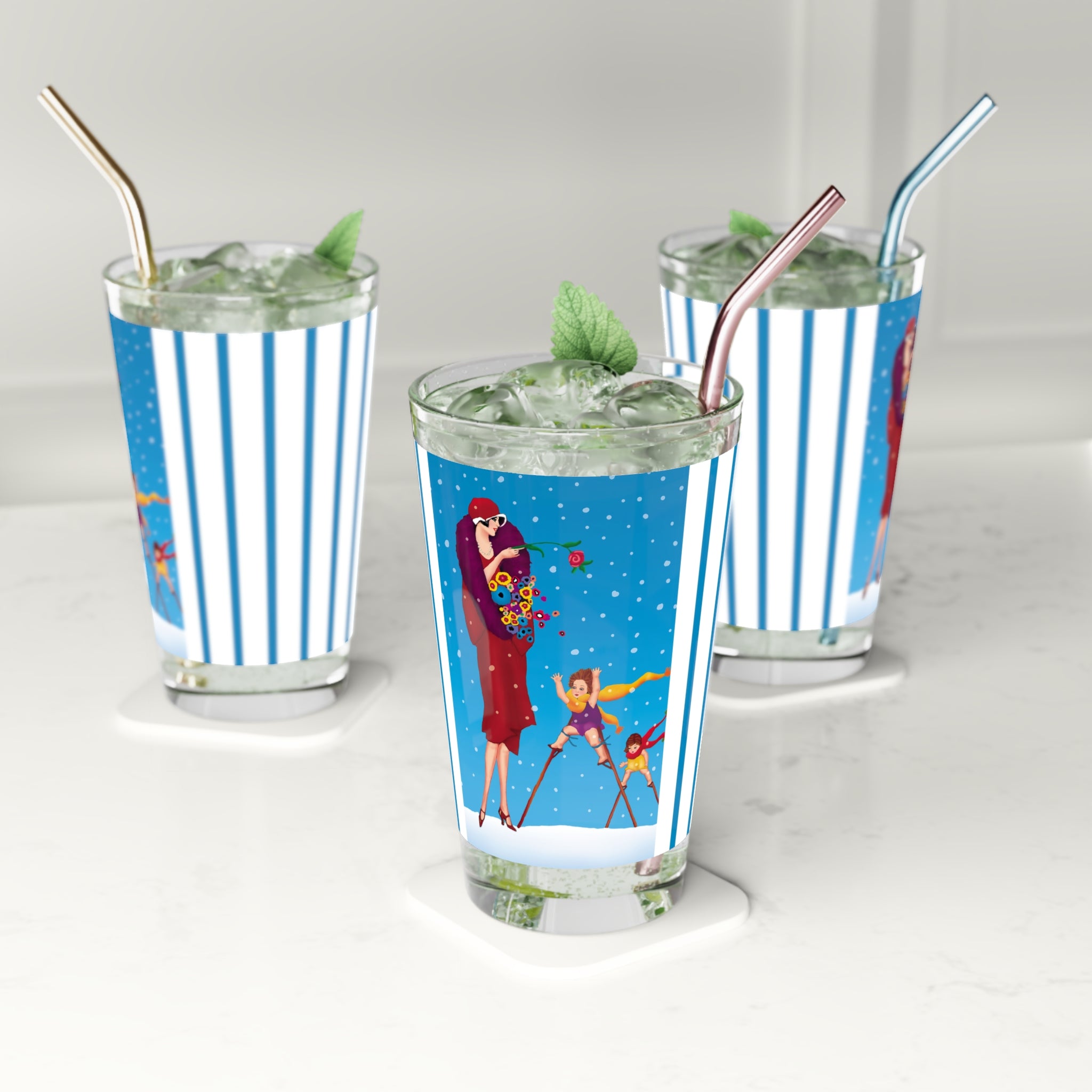 The Snowfall & Couture Glass is a 16oz printed pint glass that’s durable, versatile, and perfect for beer, cocktails, or sparkling water. Sleek and transparent, it makes a stylish gift or everyday essential.