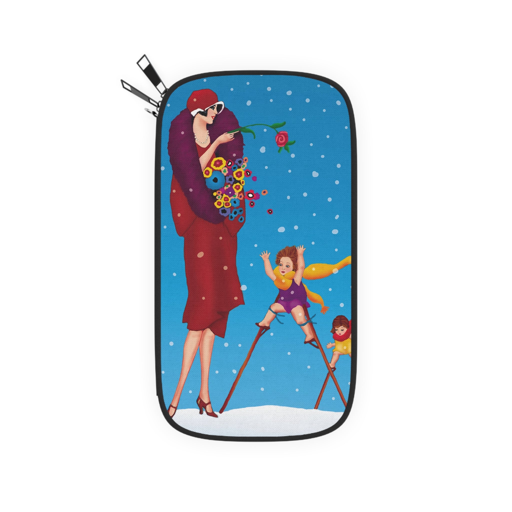 The Snowfall & Couture Passport Wallet is lightweight, durable, and designed for travel. With multiple compartments, a high-quality zipper, and a back pocket for cards, notes, or coins, it keeps essentials safe and organized on the go.
