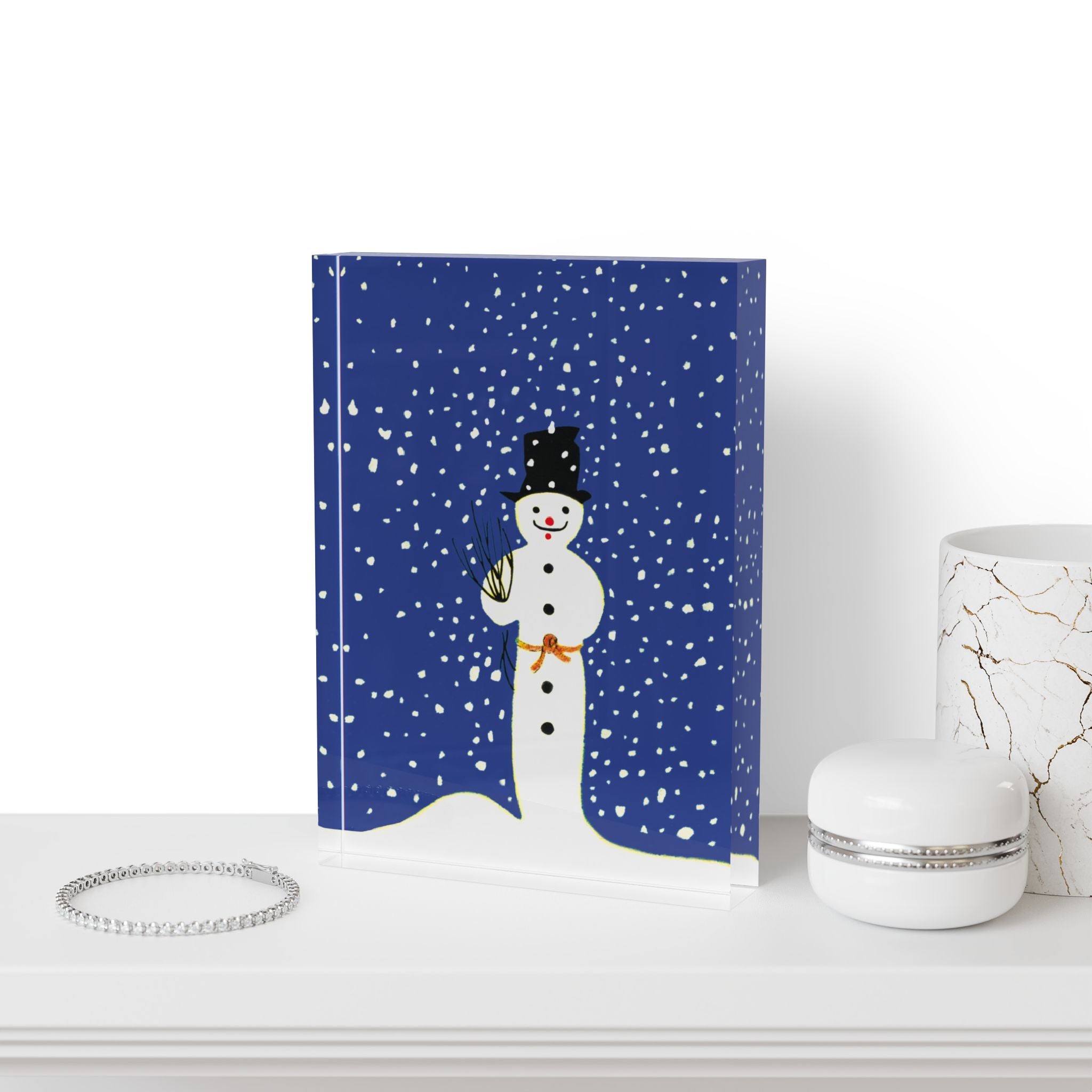 Bring festive charm to your home with the Snowman in Falling Snow Acrylic Art Block, crafted with the AcryliPrint®HD process for vibrant detail and lasting durability. Perfect for a mantel, desk, or wall, this sturdy piece adds warmth and seasonal elegance to any space.