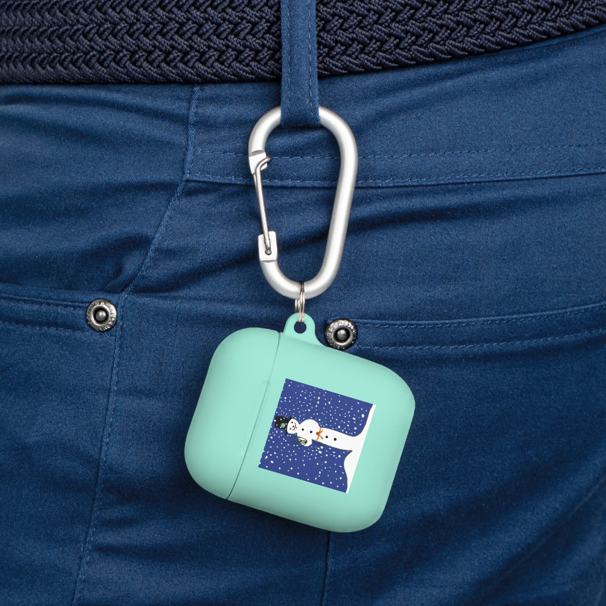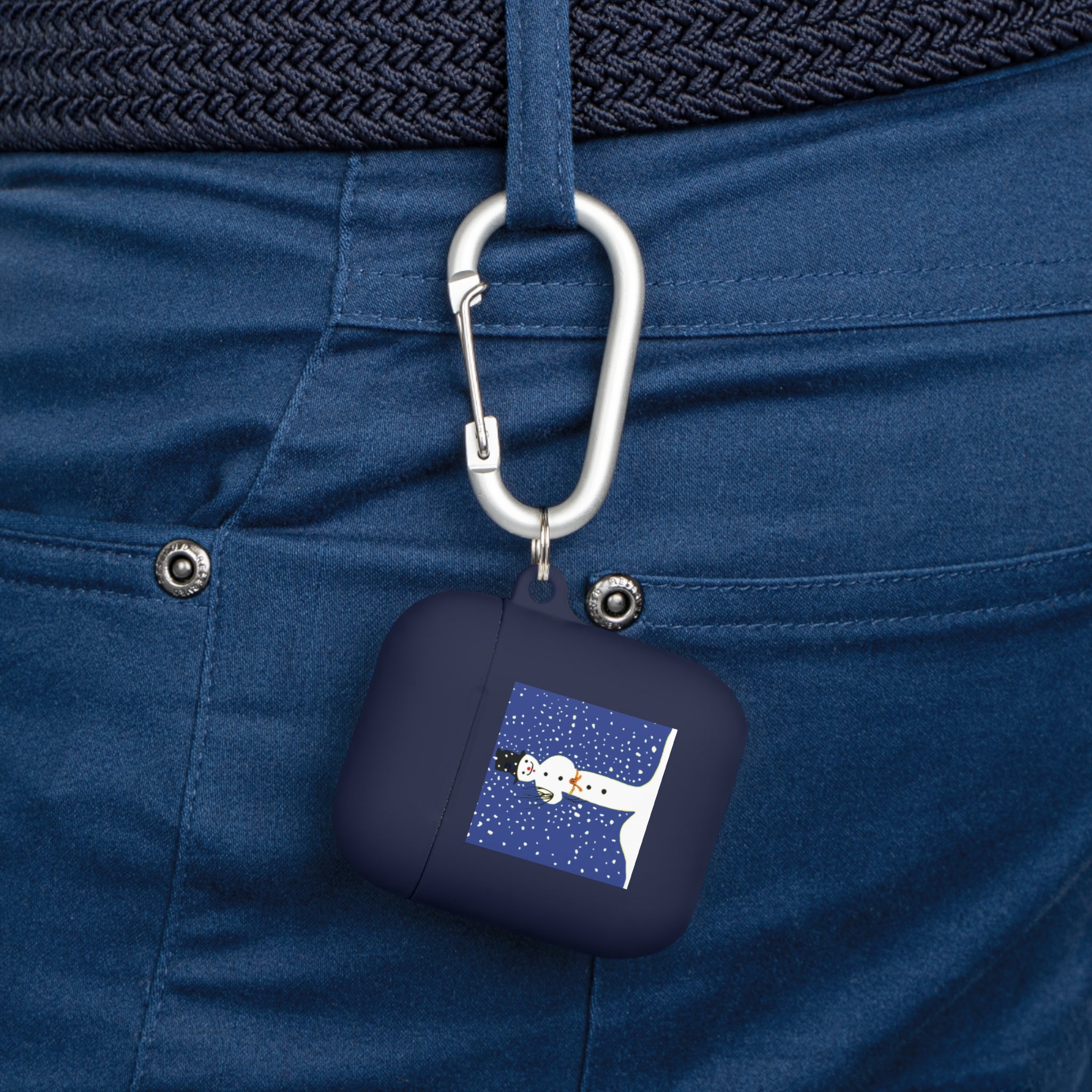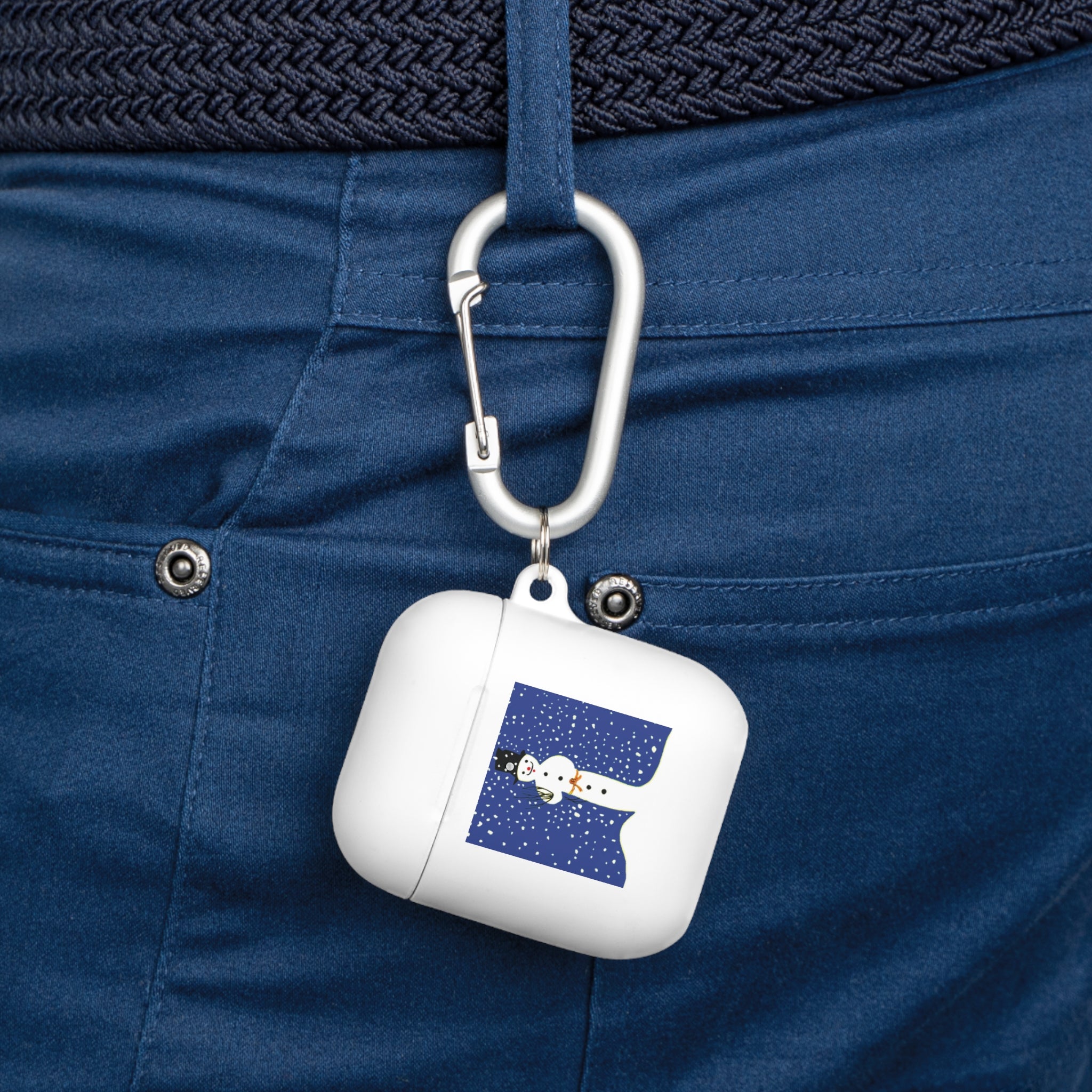 Protect your AirPods in festive style with the Snowman in Falling Snow AirPods Case Cover. Built to guard against bumps, scratches, and drops, it includes a sturdy metal carabiner for easy carrying. Compatible with both regular and wireless charging AirPods cases, it’s available in White, Navy, Pink, Mint, and Black.