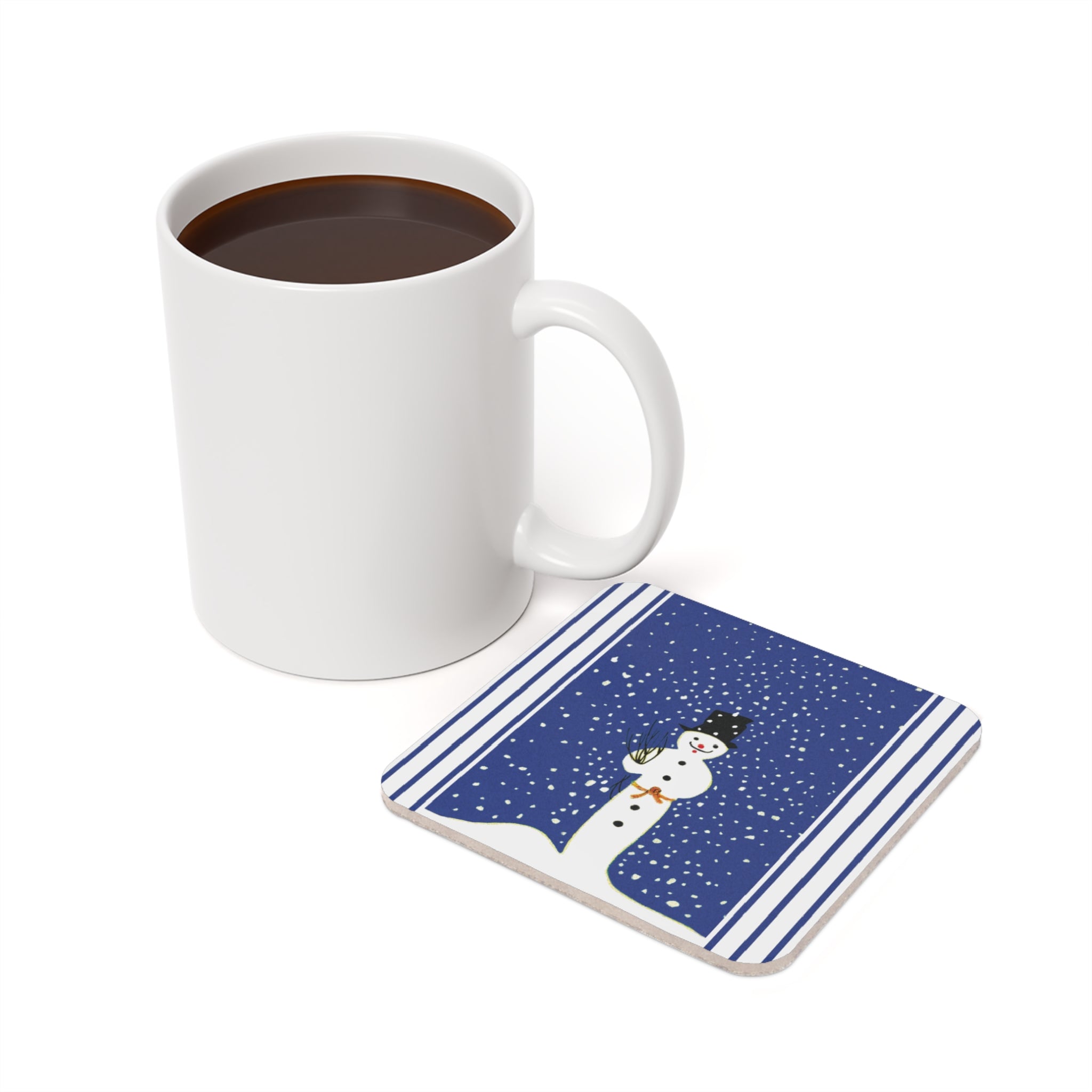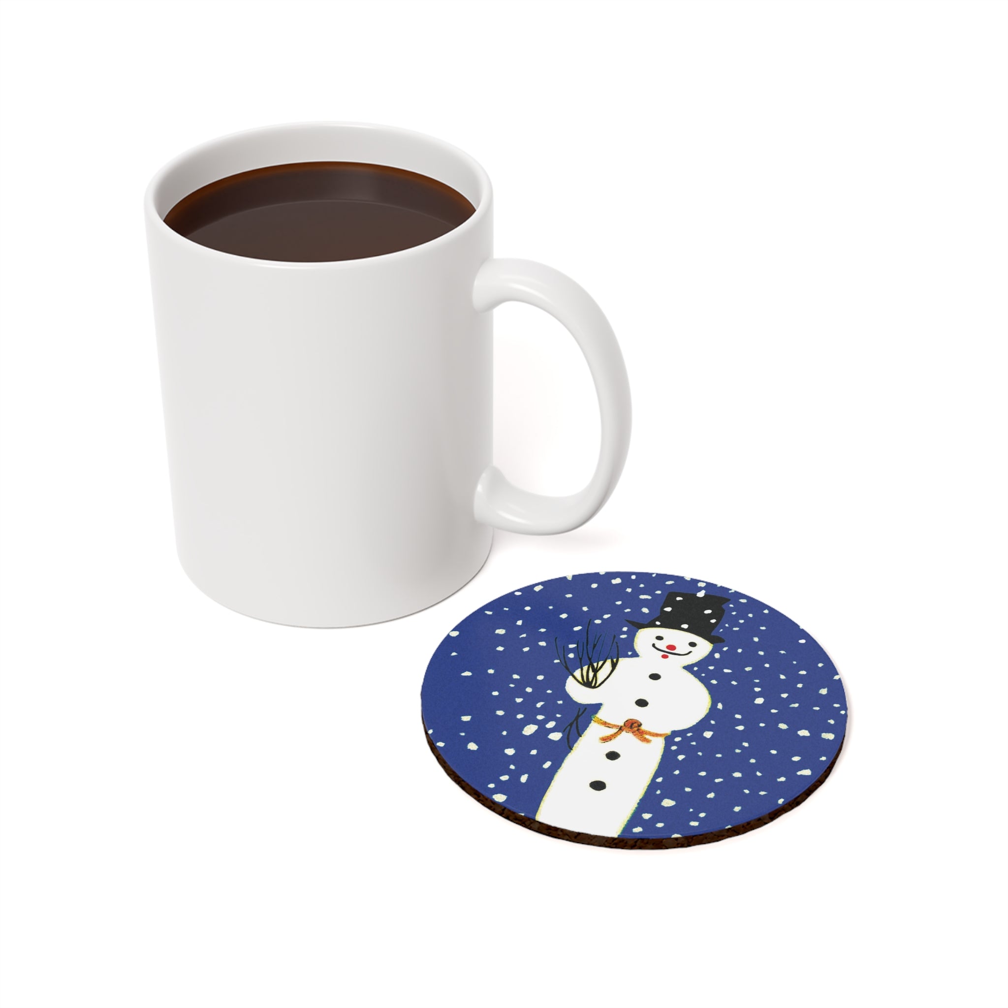 Bring festive charm to your table with the Snowman in Falling Snow coaster. Available in round or square, each piece features a glossy hardboard top for vibrant artwork and a cork base to prevent sliding—perfect for daily use or holiday gatherings.