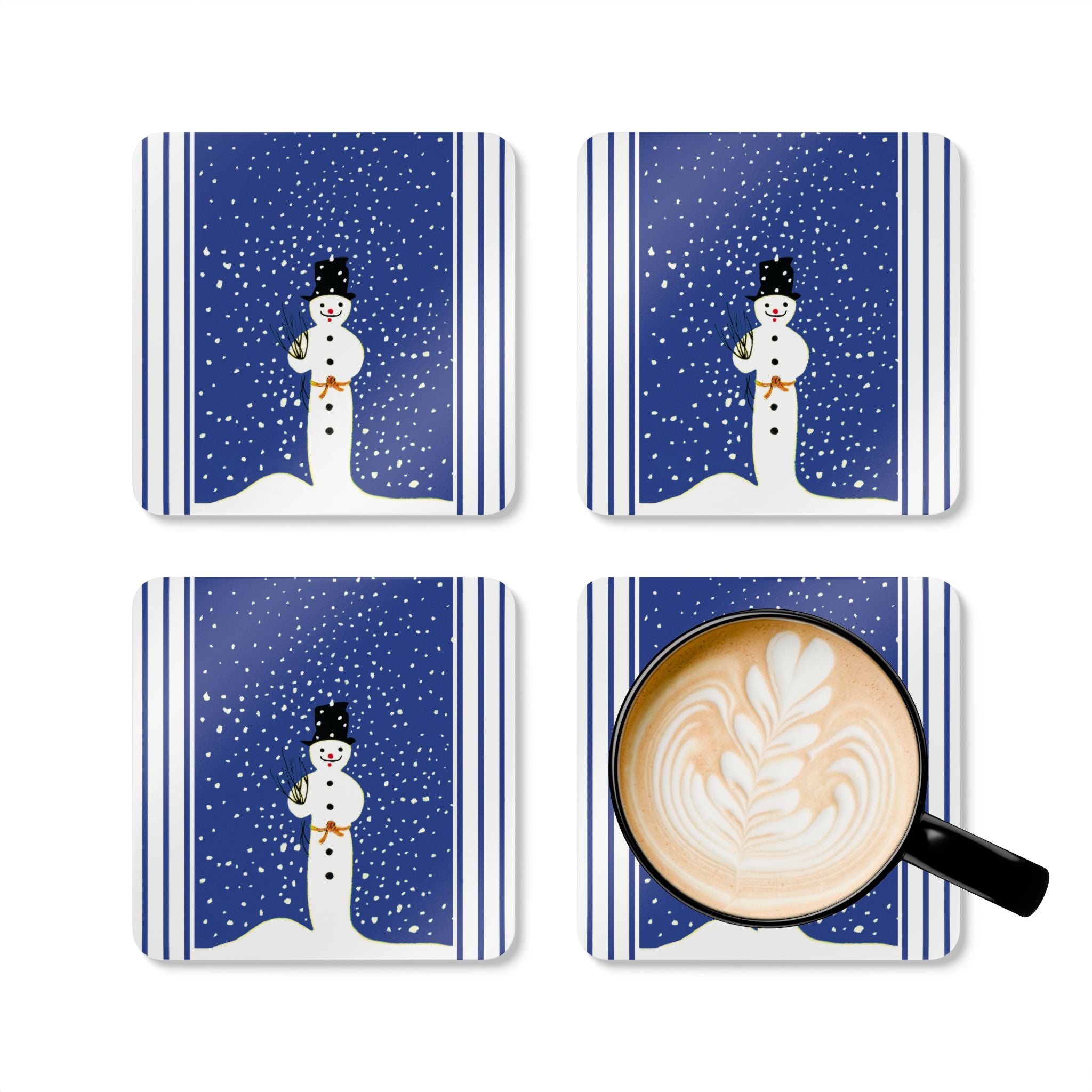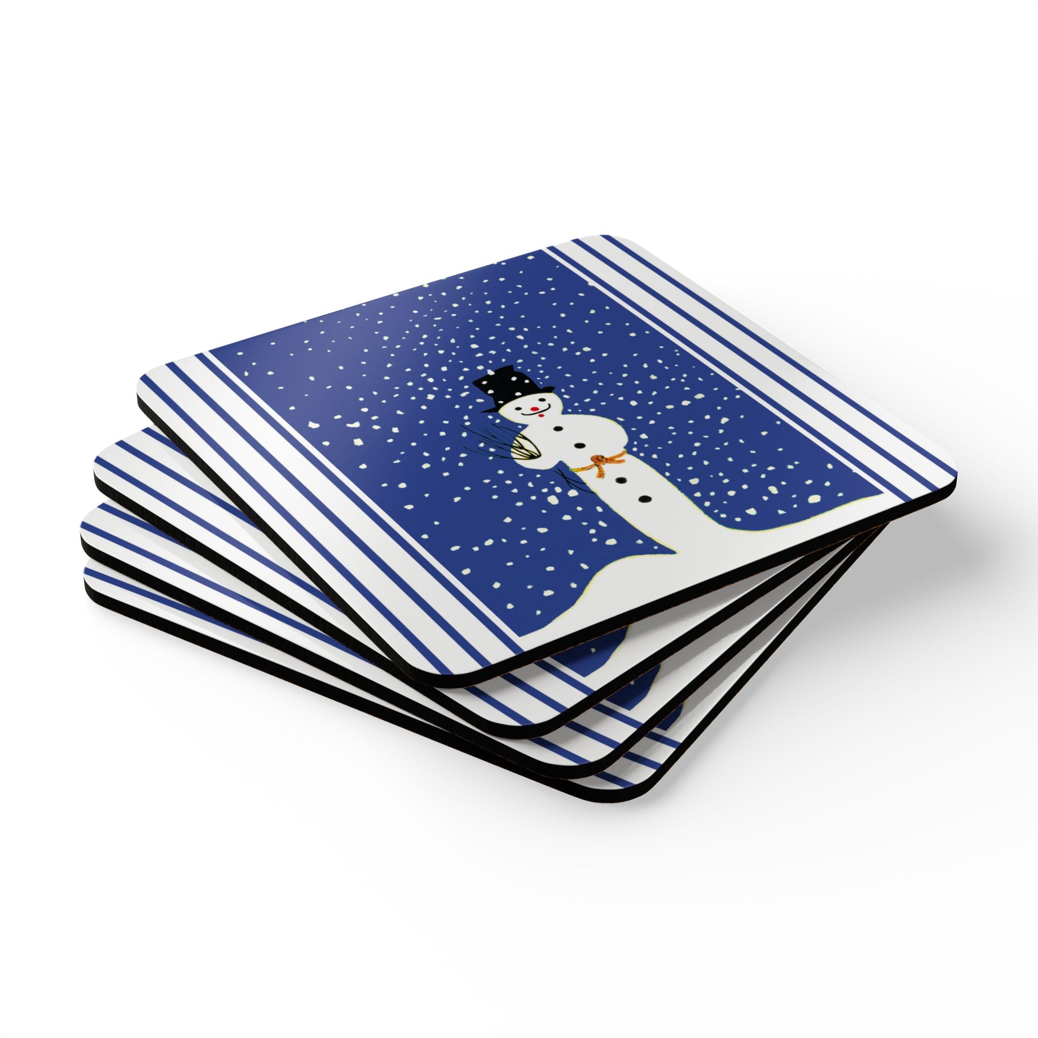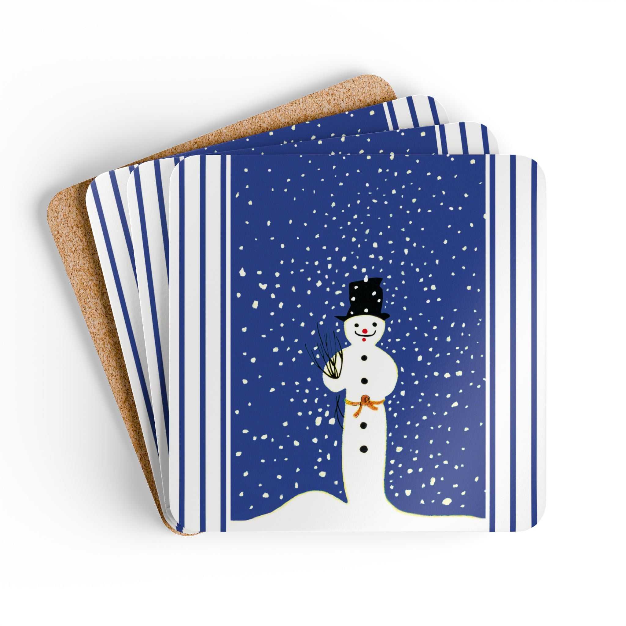 Add festive charm to your table with the Snowman in Falling Snow Corkwood Coaster Set. Each set includes four coasters made with a glossy top and cork back to prevent sliding—perfect for protecting surfaces during holiday gatherings or everyday use.