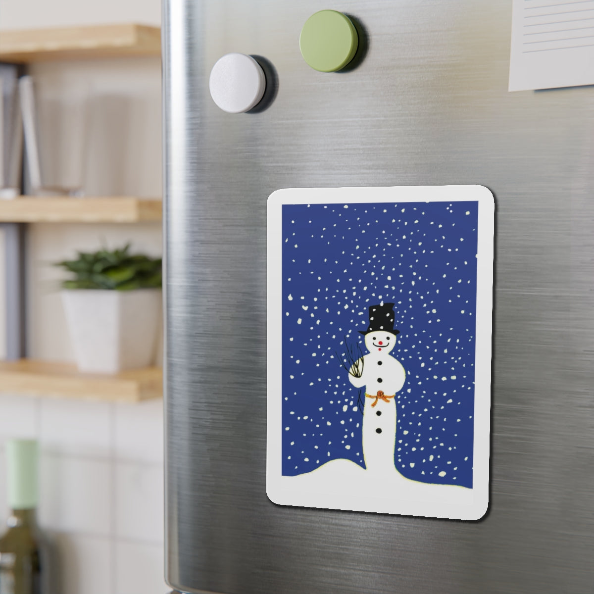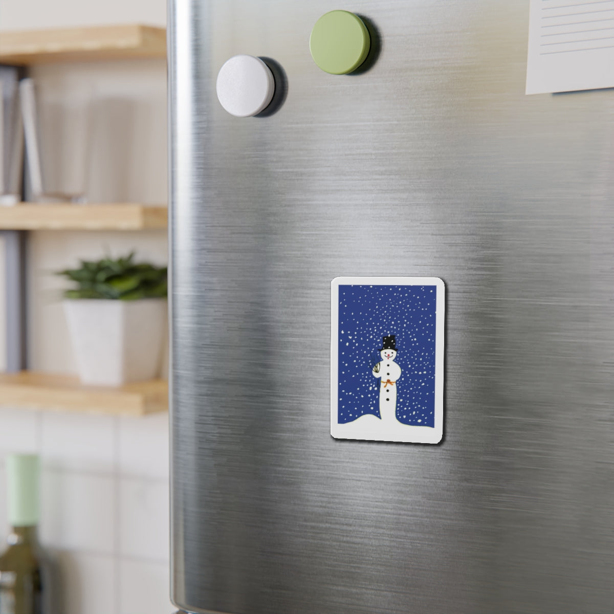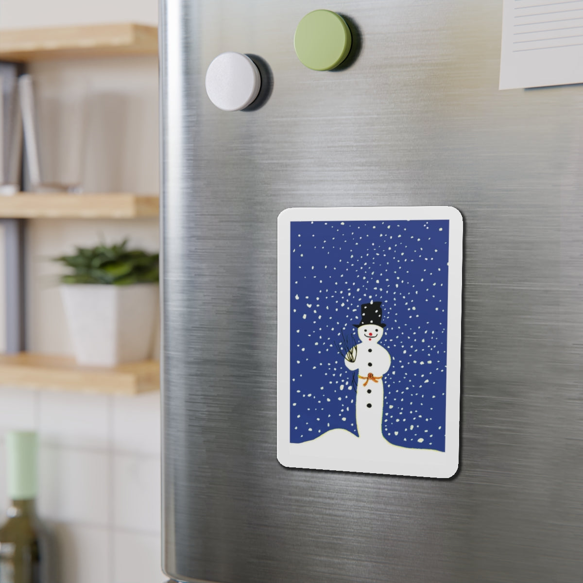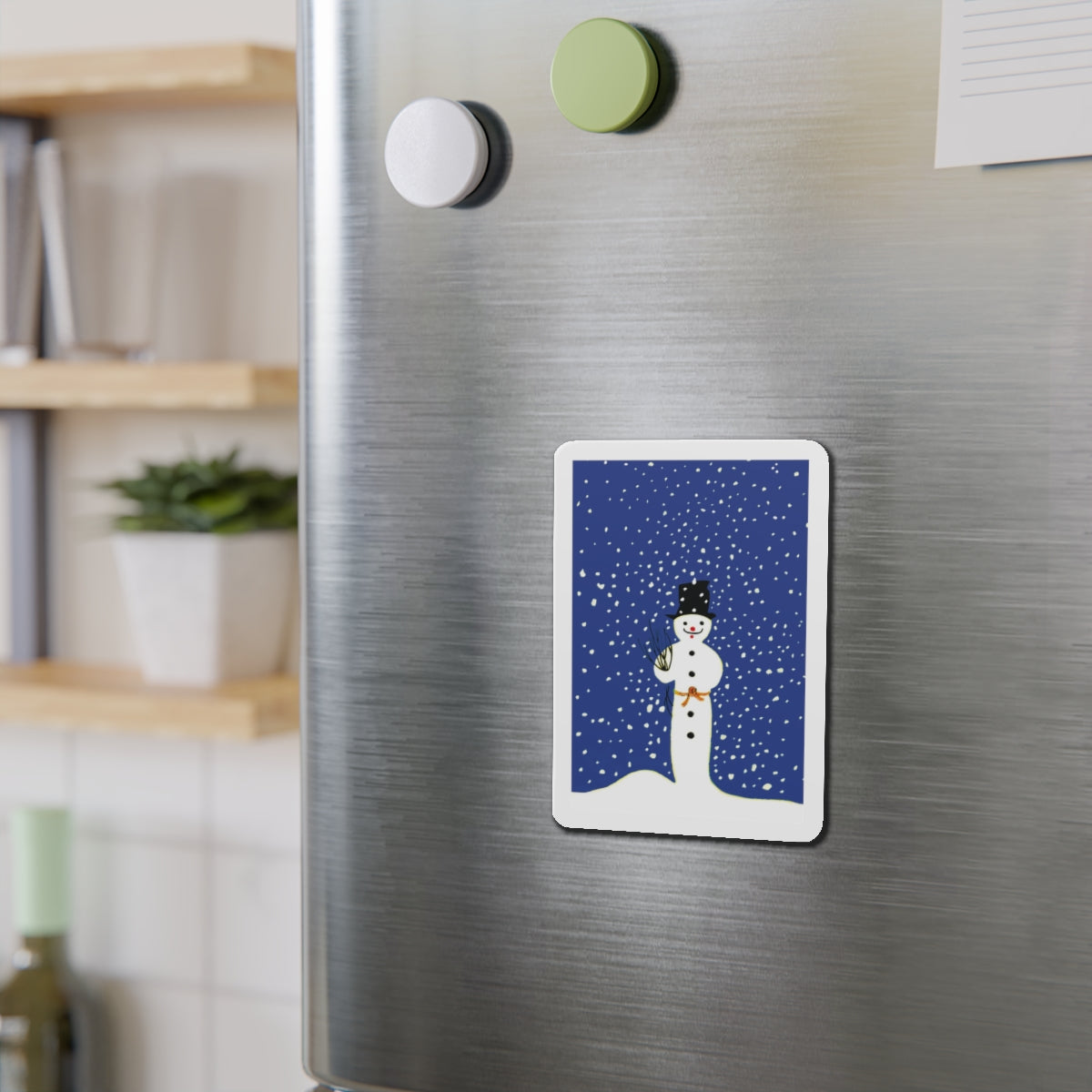 Bring festive charm to any space with the Snowman in Falling Snow die-cut magnets. Made from durable, flexible material, they’re available in five sizes—perfect for fridges, lockers, or office boards.