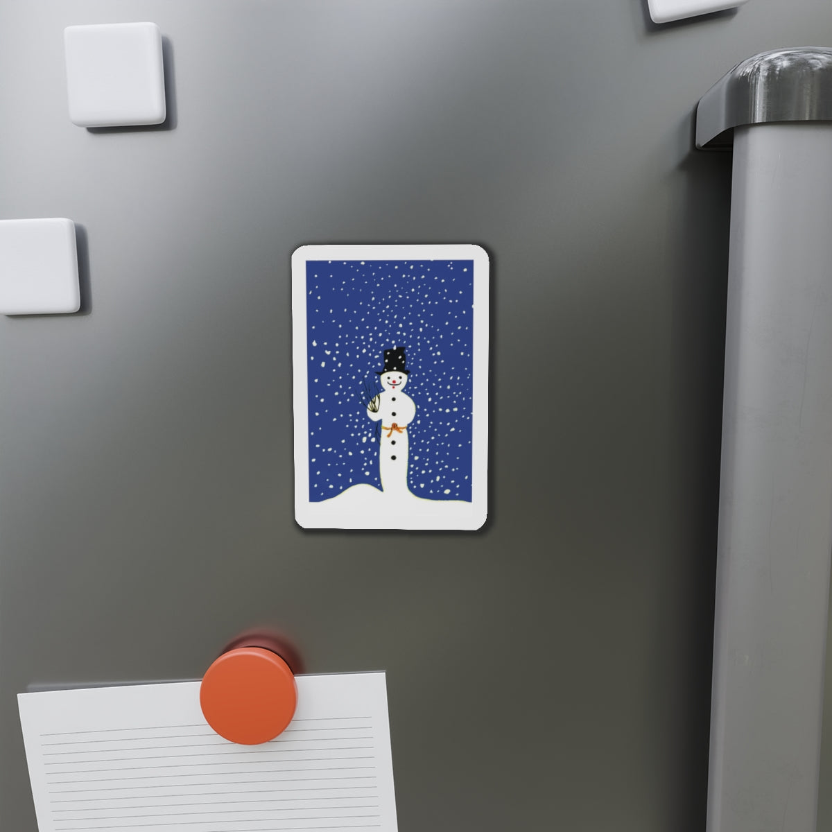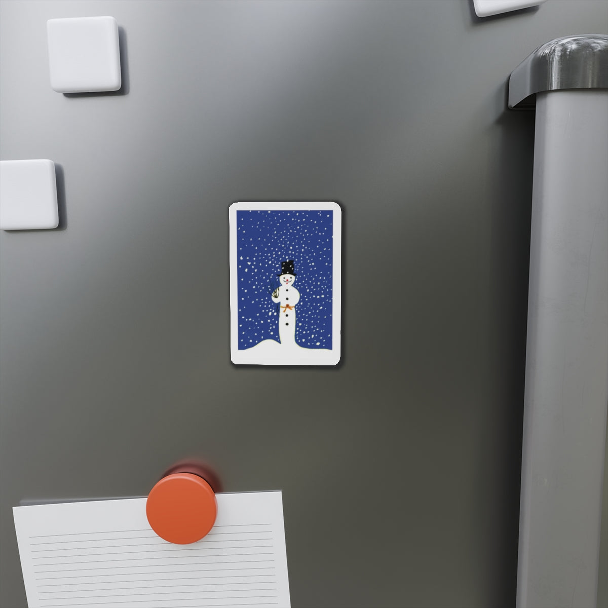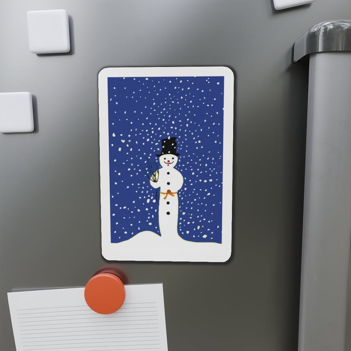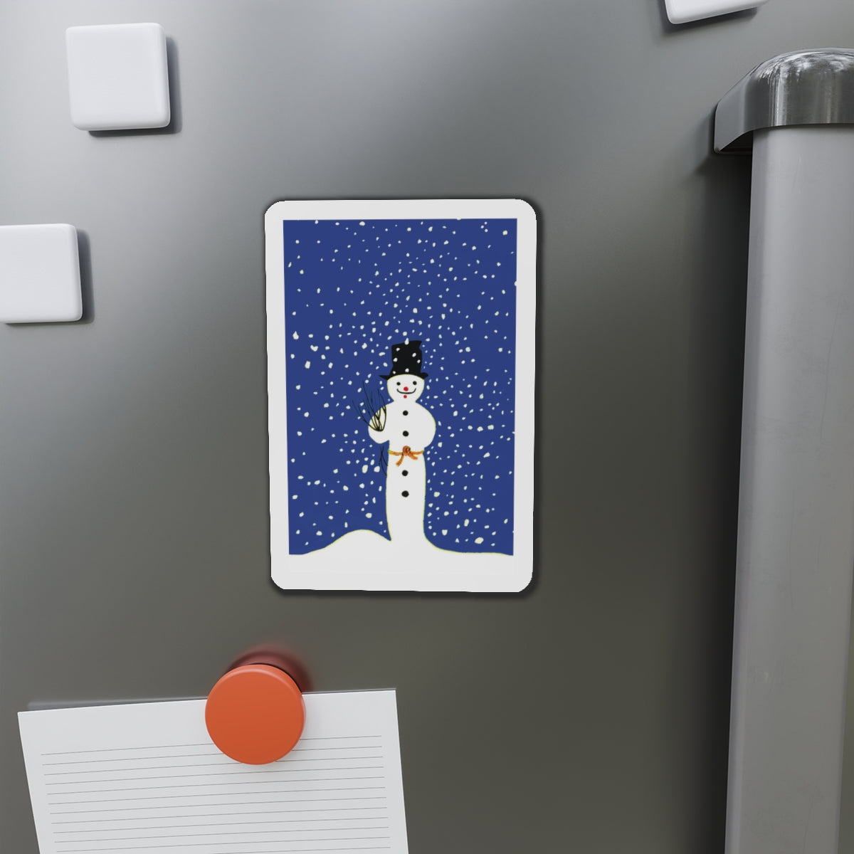 Bring festive charm to any space with the Snowman in Falling Snow die-cut magnets. Made from durable, flexible material, they’re available in five sizes—perfect for fridges, lockers, or office boards.