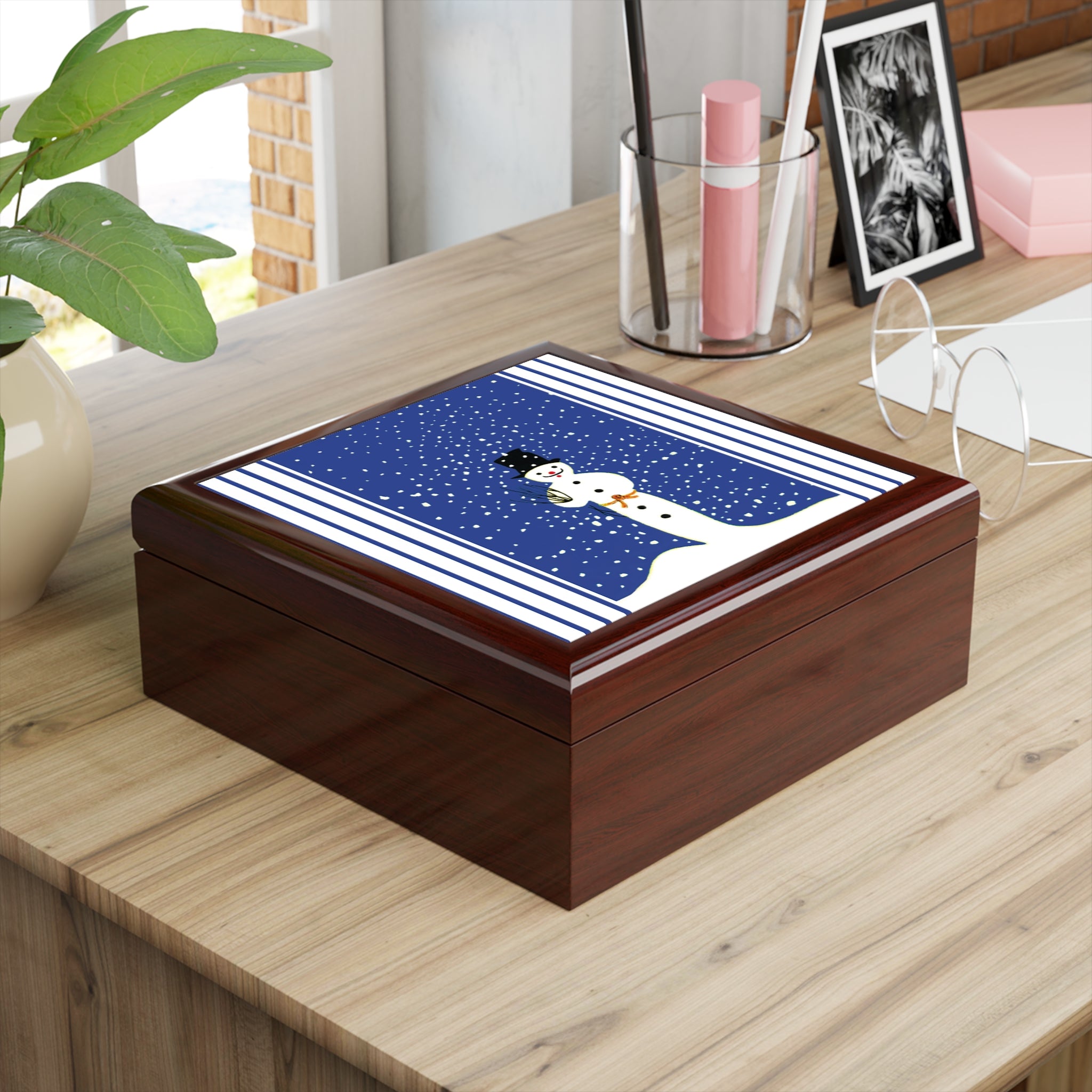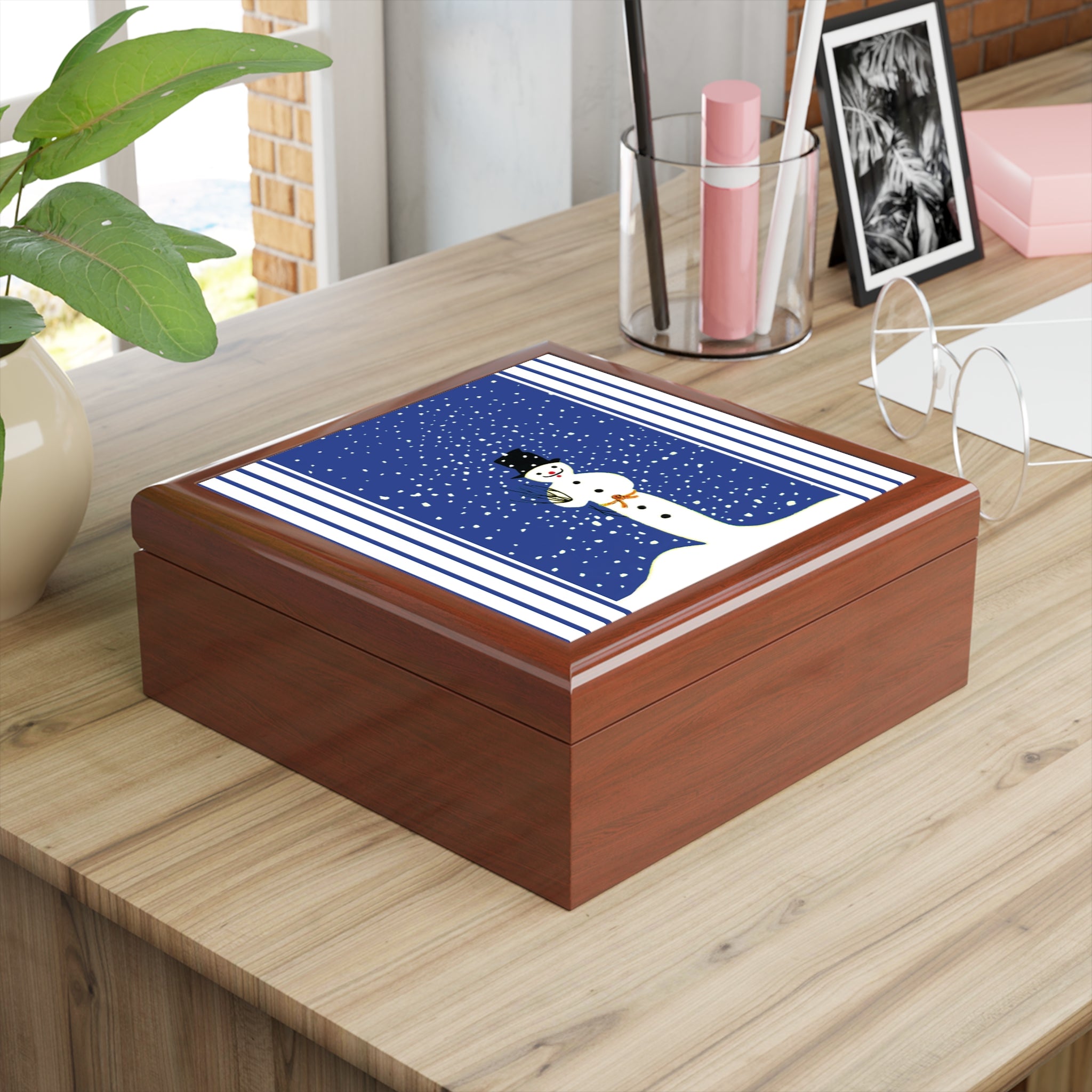 Blending functionality with seasonal artistry, this jewelry box makes a thoughtful gift or a timeless keepsake to brighten your winter décor.
