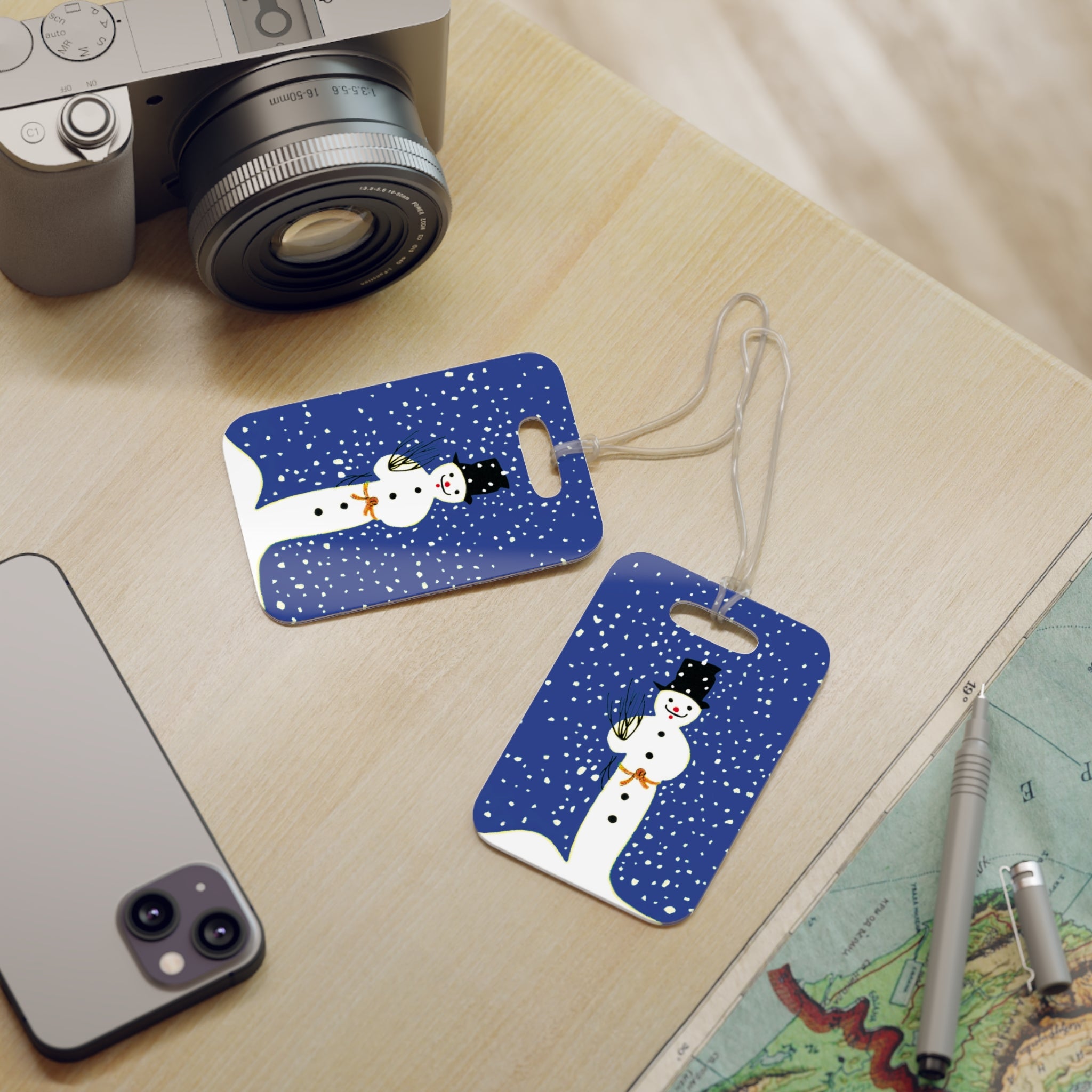 Travel with ease and a touch of holiday magic with the Snowman in Falling Snow Luggage Tags. Crafted from durable plastic with a glossy finish, these tags feature a sleek rectangular shape and a flexible clear acrylic tie that keeps them securely in place. The double-sided print ensures your details are visible, while the sturdy build withstands the demands of any journey.