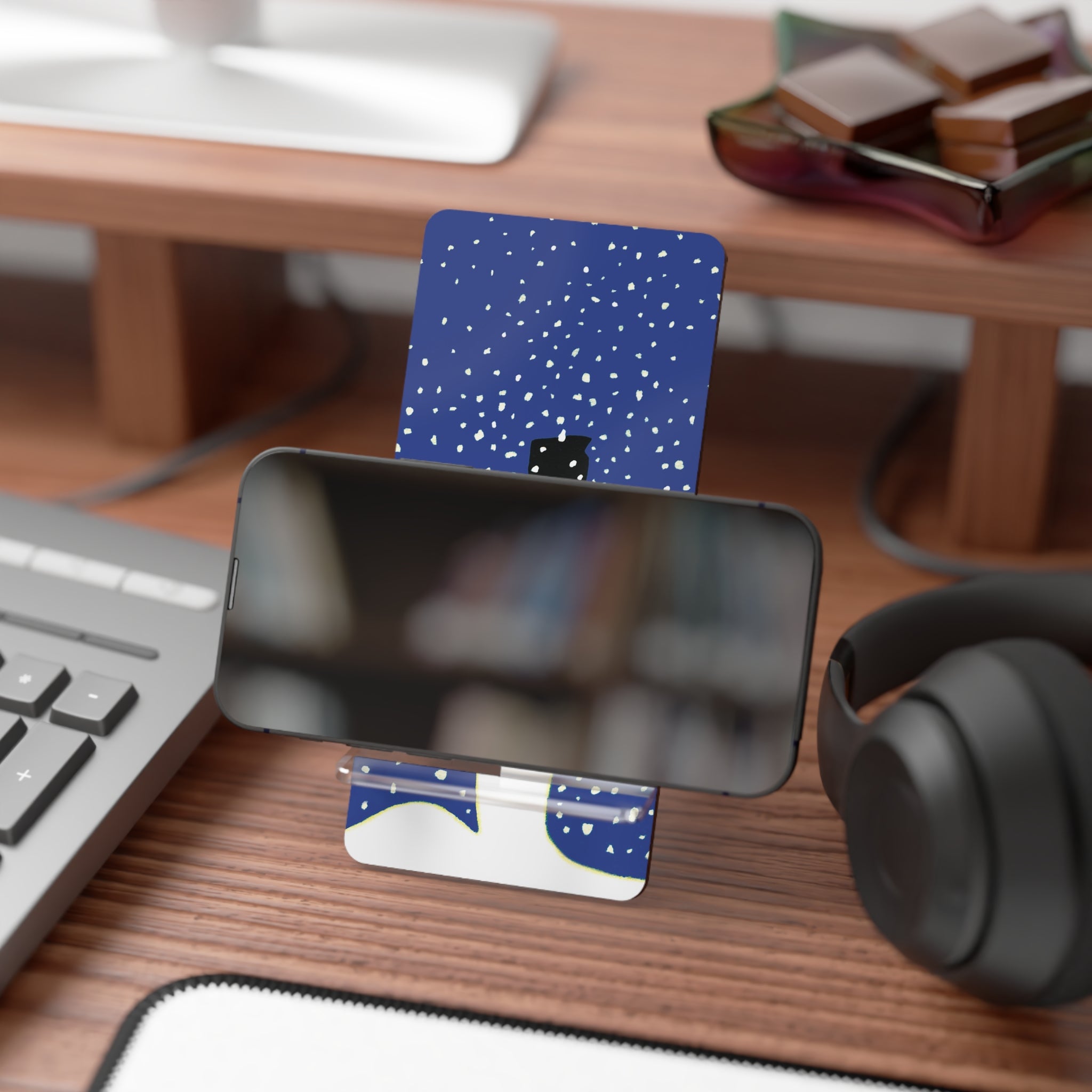 Bring festive charm to your desk or nightstand with this sturdy mobile display stand. Made with a hardboard panel and durable plastic leg, it offers a stable, hands-free way to enjoy calls, videos, or browsing. Its two-piece design slots together easily and packs flat for travel.