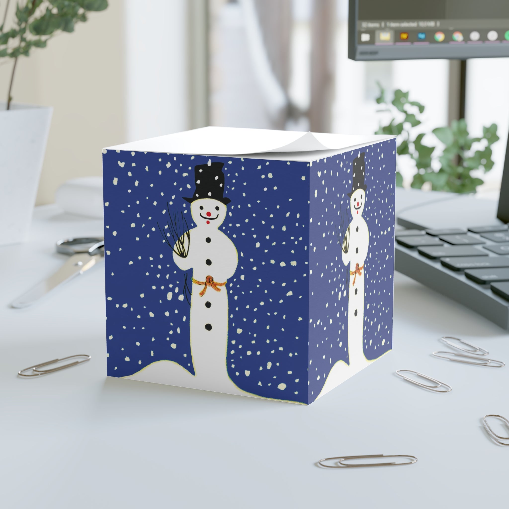Keep your notes festive with the Snowman in Falling Snow Note Cube. With 700 sticky sheets and a compact 3.37" x 3.5" size, it’s the perfect desk companion for reminders, lists, and holiday messages.