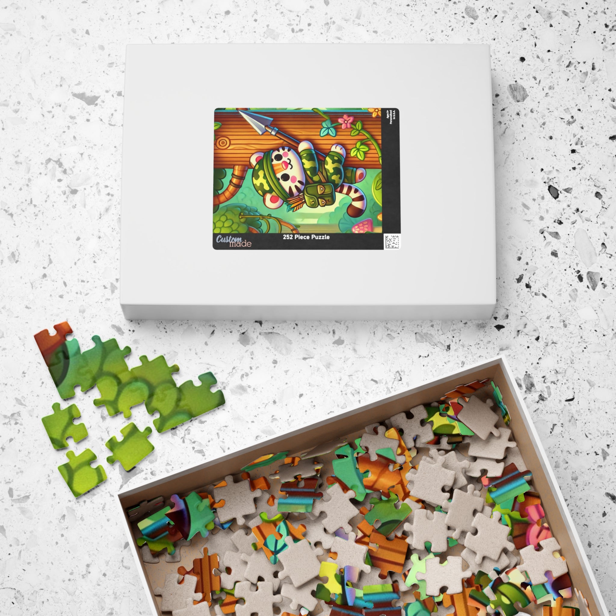 Venture into the heart of the jungle with Stealthy Stripes Puzzle, a delightful mix of courage, color, and imagination. This playful puzzle helps adults and kids alike spend quality time over a game they’ll love. Each puzzle comes in a glossy finish and features a sturdy chipboard backing, while each pack includes a reference print to easily put the puzzle together. Available in 110, 252, or 520 piece options, it’s perfect for family fun, relaxation, or a touch of adventure at home.