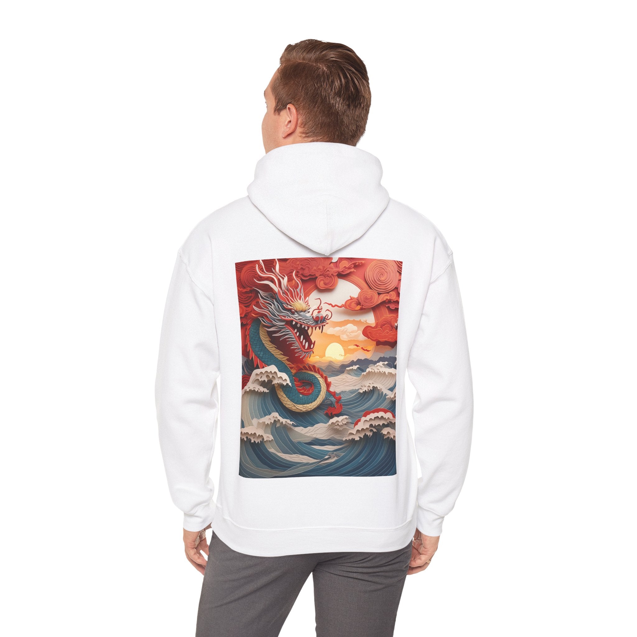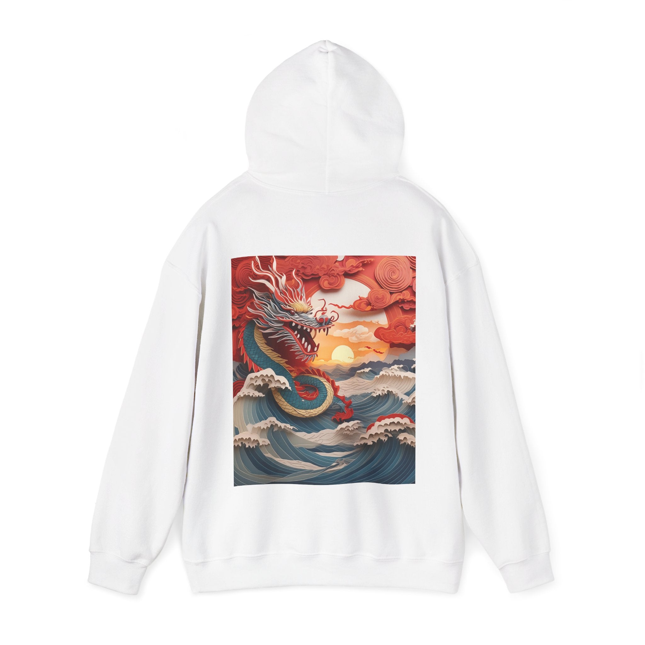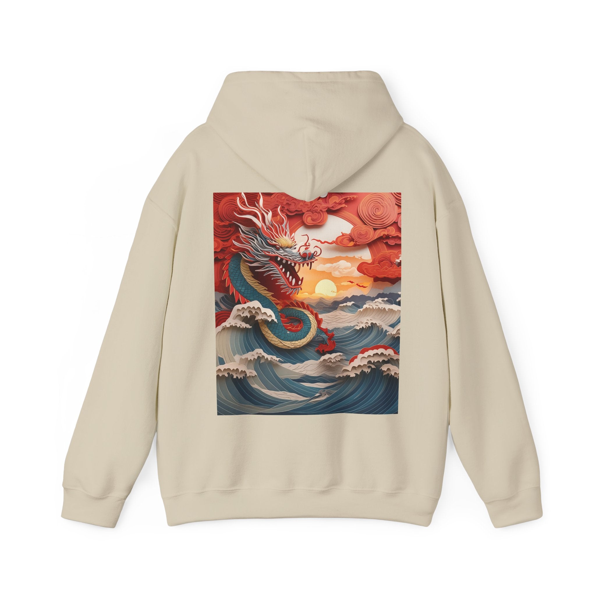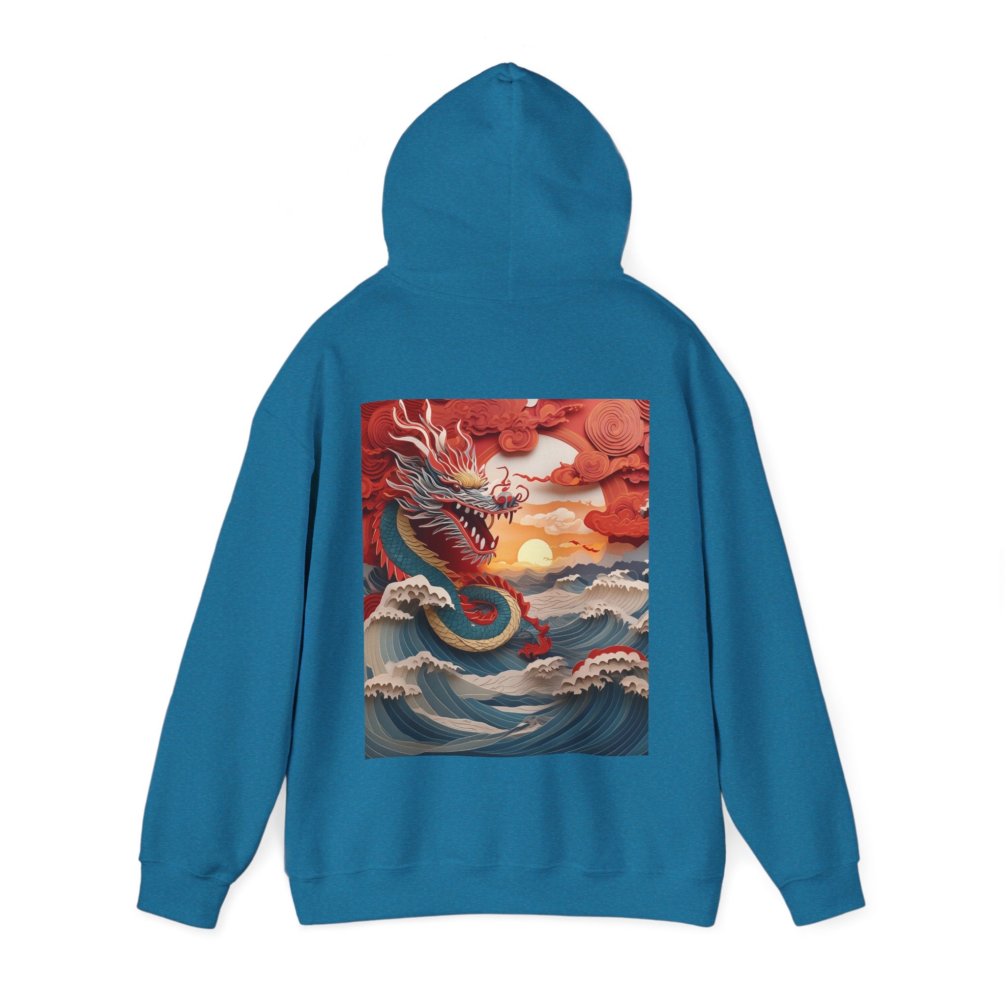 Stormbound Dragon – Heavy Blend™ Hooded Sweatshirt brings the fierce beauty of a storm to life in a bold, atmospheric design. The artwork follows a powerful dragon soaring through a turbulent sky, its form illuminated by flashes of light as it weaves between swirling clouds. Below, crashing waves rise to meet it, reflecting its strength and the raw majesty of nature. Even amid the chaos, a faint break of sunlight slips through the storm—hinting at resilience, balance, and the calm that follows power in motion.