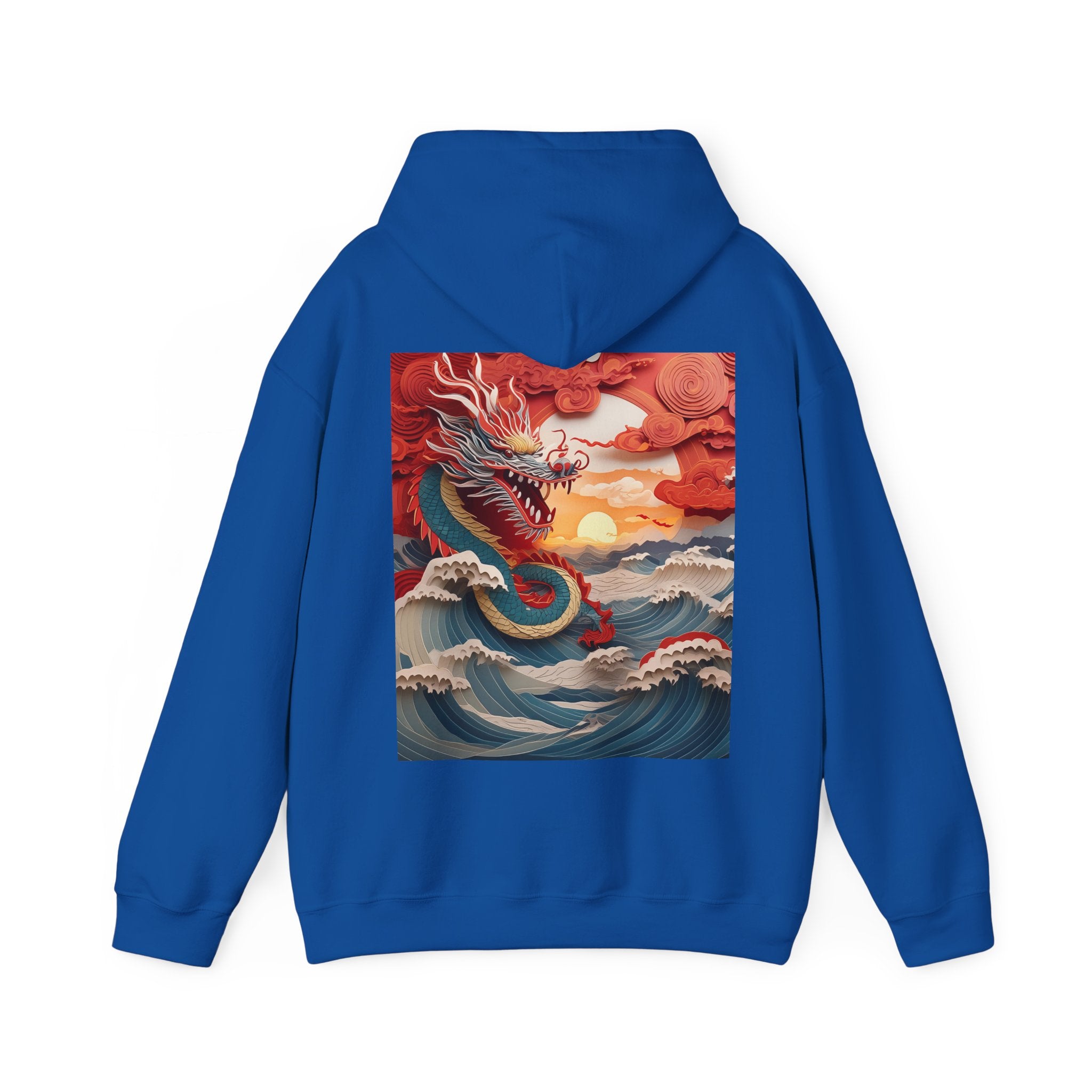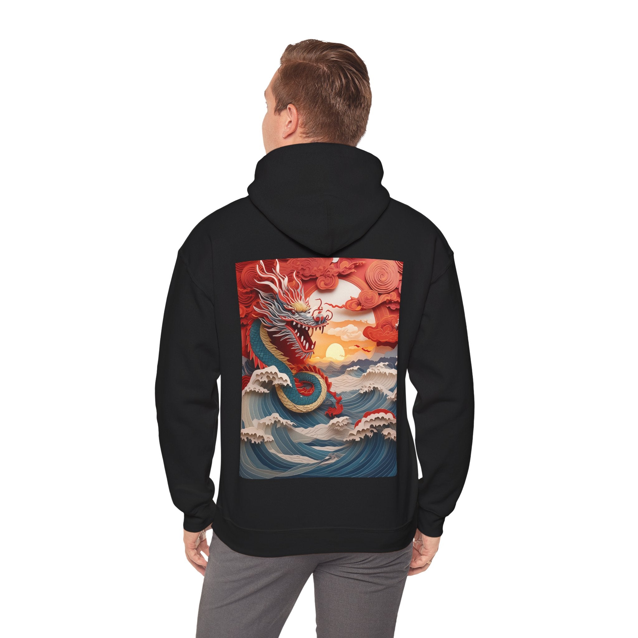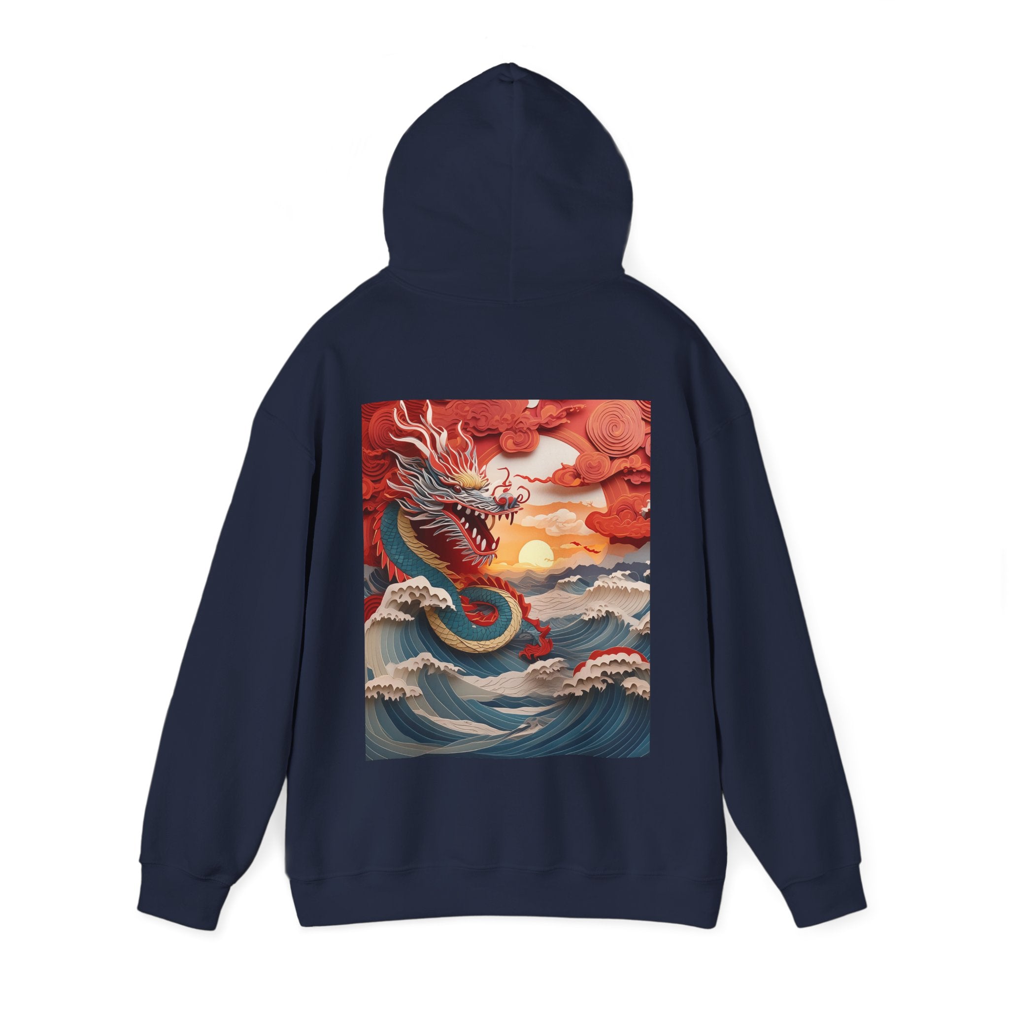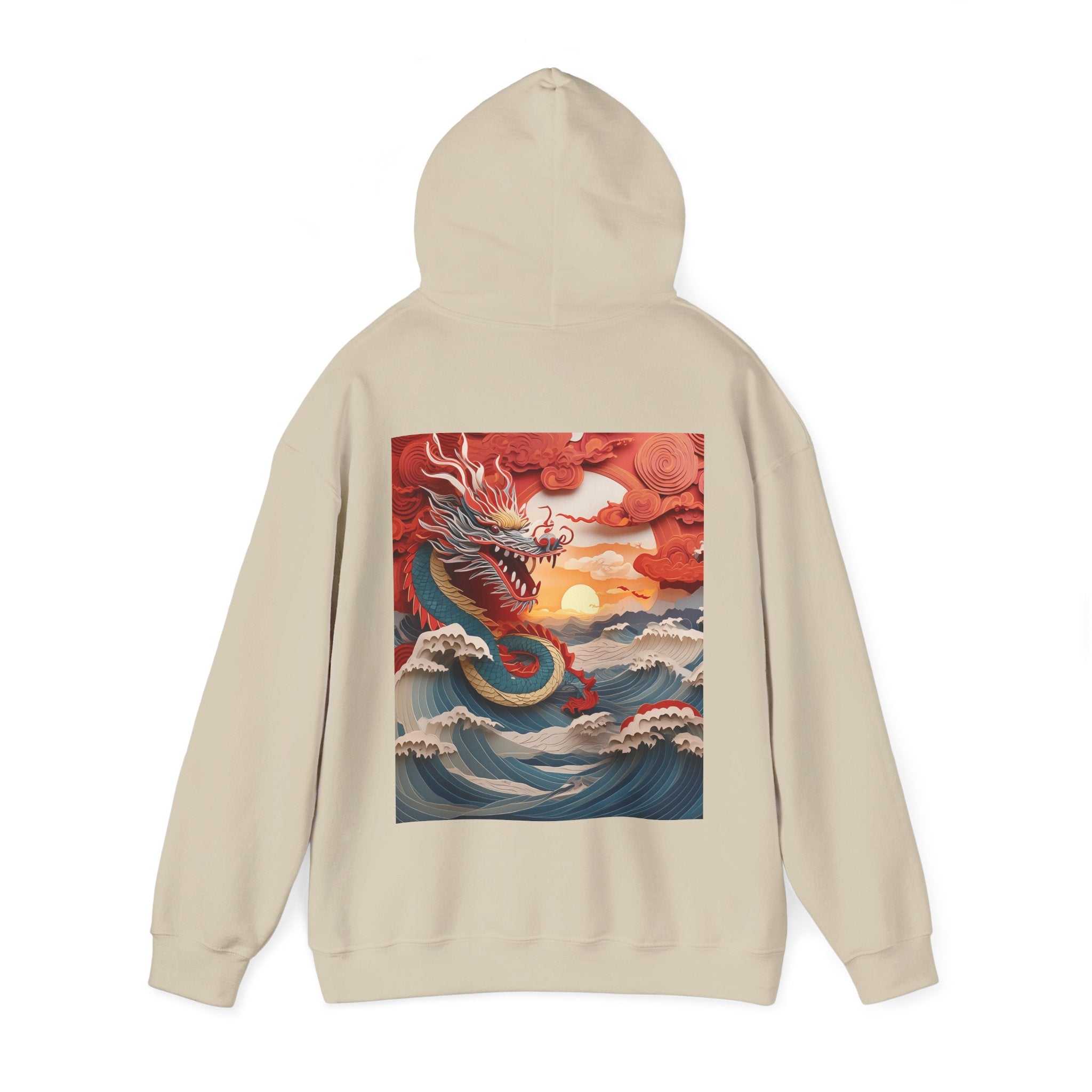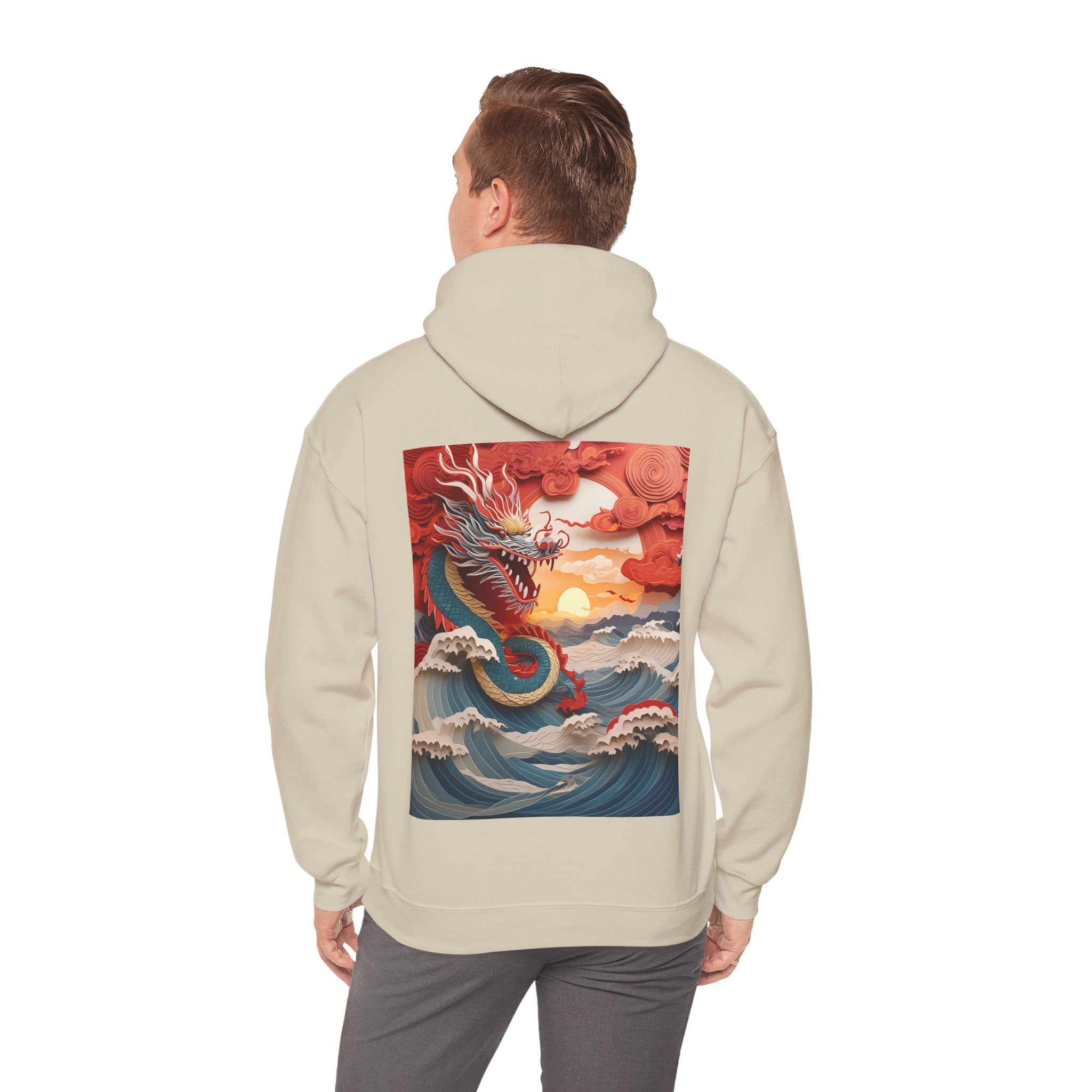Stormbound Dragon – Heavy Blend™ Hooded Sweatshirt brings the fierce beauty of a storm to life in a bold, atmospheric design. The artwork follows a powerful dragon soaring through a turbulent sky, its form illuminated by flashes of light as it weaves between swirling clouds. Below, crashing waves rise to meet it, reflecting its strength and the raw majesty of nature. Even amid the chaos, a faint break of sunlight slips through the storm—hinting at resilience, balance, and the calm that follows power in motion.