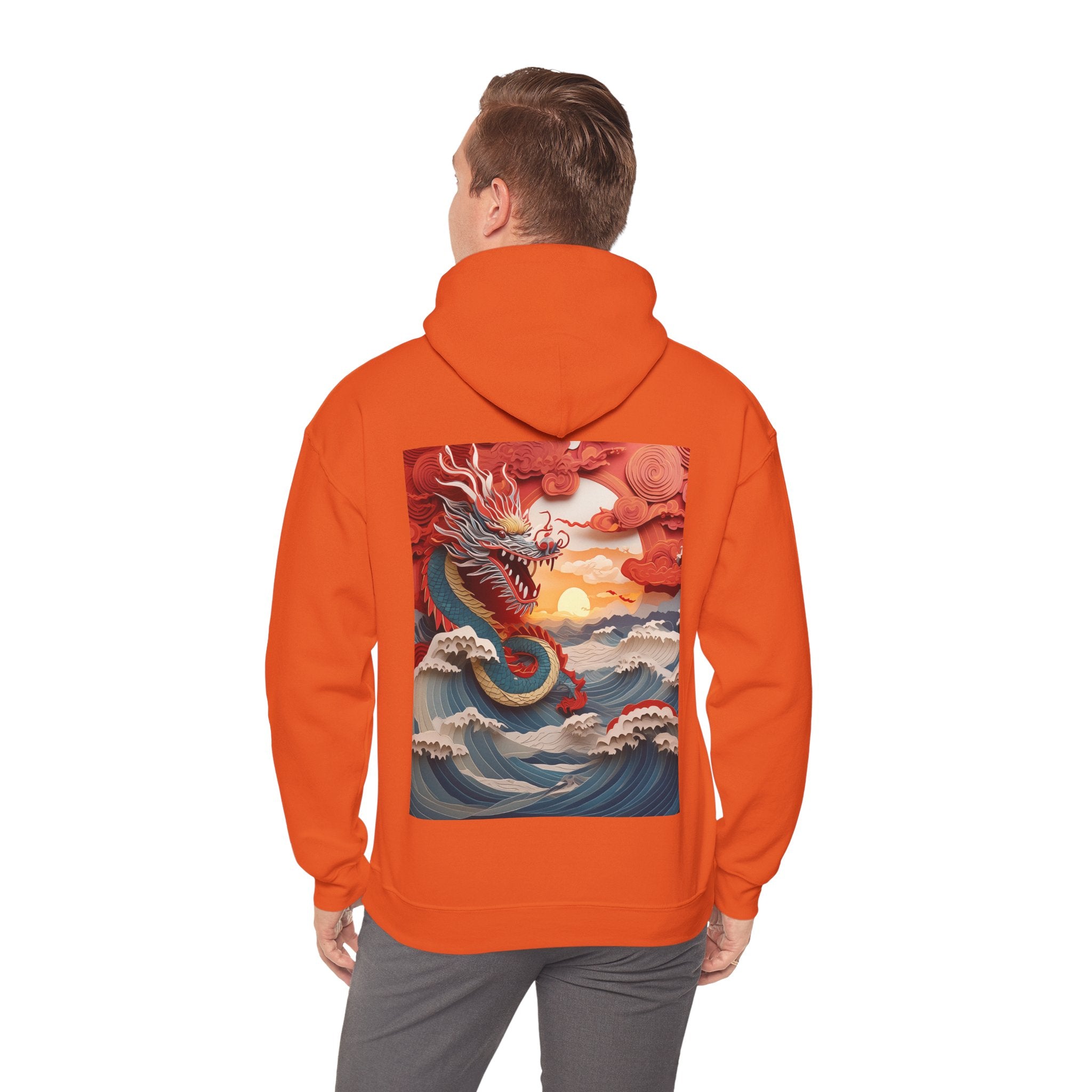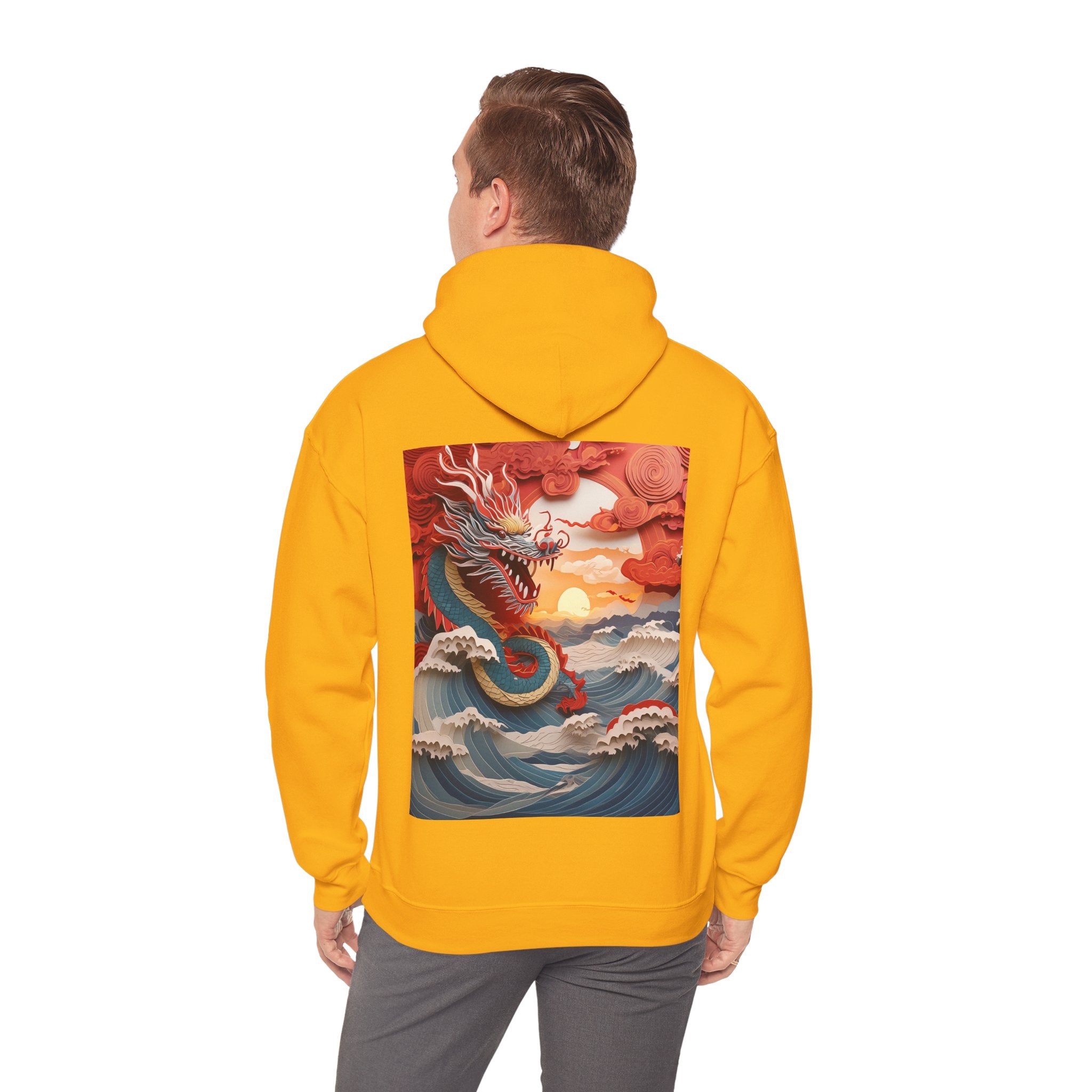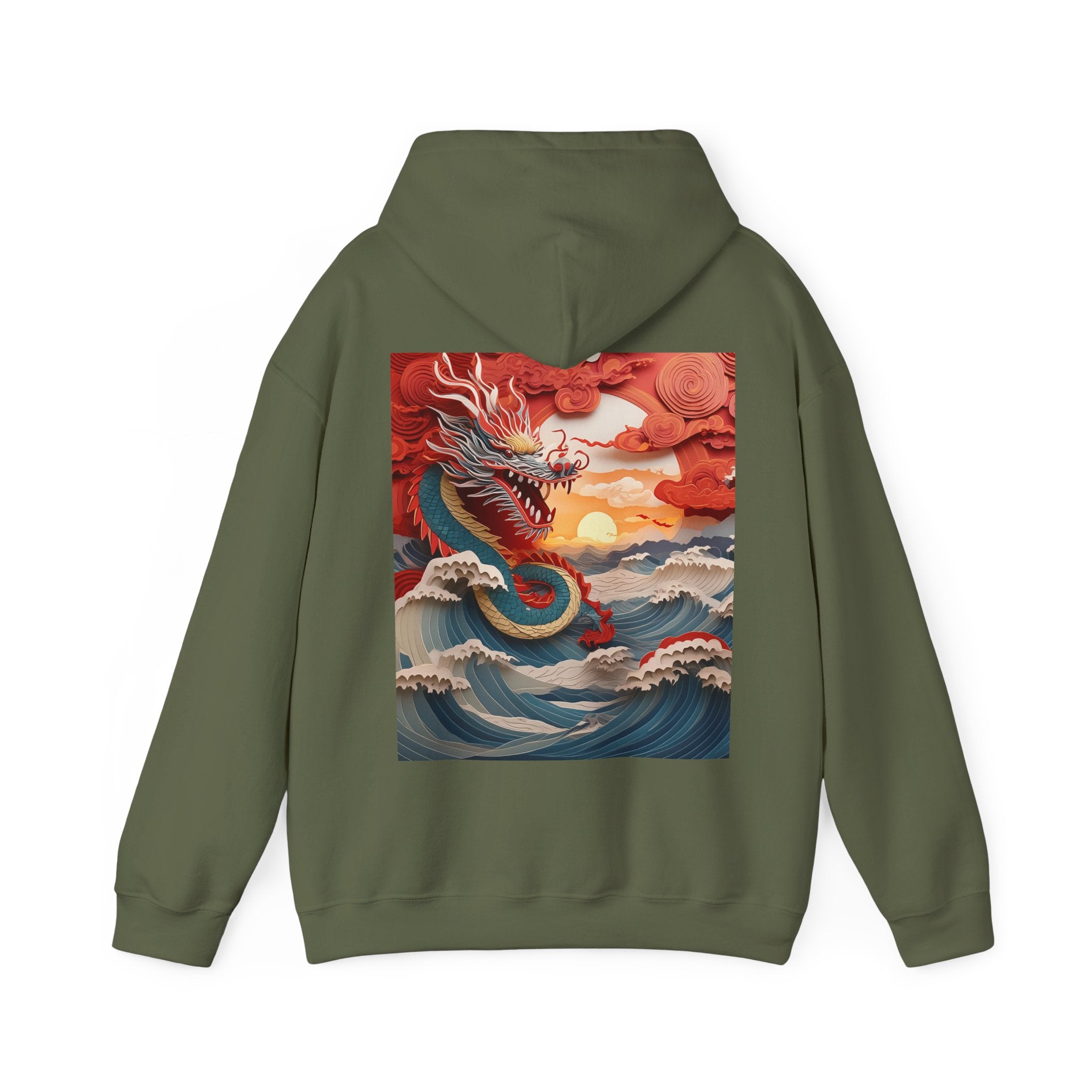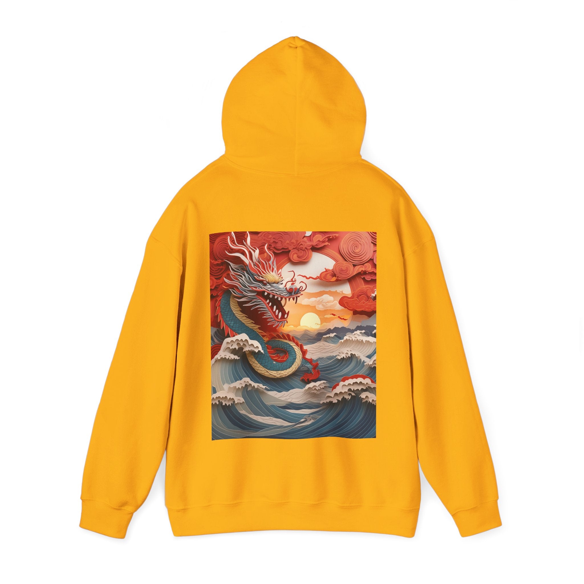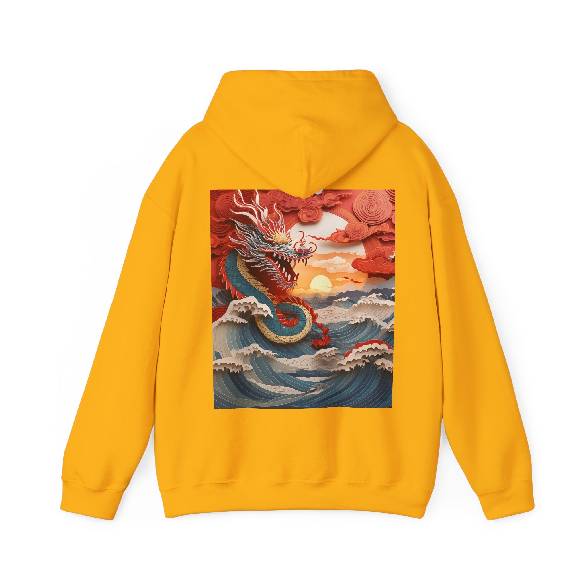 Stormbound Dragon – Heavy Blend™ Hooded Sweatshirt brings the fierce beauty of a storm to life in a bold, atmospheric design. The artwork follows a powerful dragon soaring through a turbulent sky, its form illuminated by flashes of light as it weaves between swirling clouds. Below, crashing waves rise to meet it, reflecting its strength and the raw majesty of nature. Even amid the chaos, a faint break of sunlight slips through the storm—hinting at resilience, balance, and the calm that follows power in motion.
