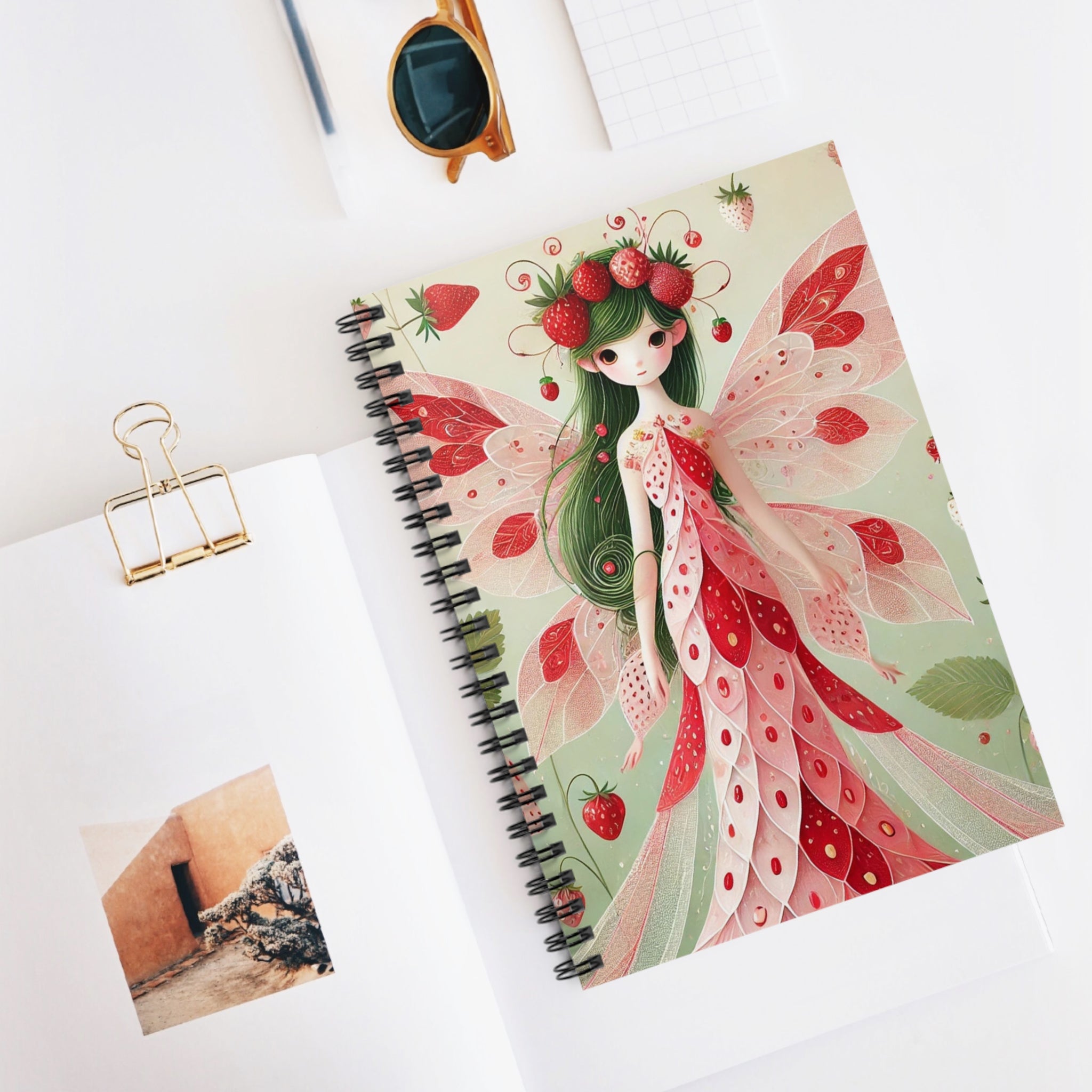 Shopping lists, school notes, or dreamy poems—make everyday writing a little sweeter with the Strawberry Fairy Delight Spiral Notebook. This whimsical design features the enchanting Strawberry Fairy, adorned in a charming red and pink strawberry dress and a delicate crown of strawberries. Surrounded by wild strawberries and lush green leaves, she brings a magical touch of summer sweetness to every adventure.