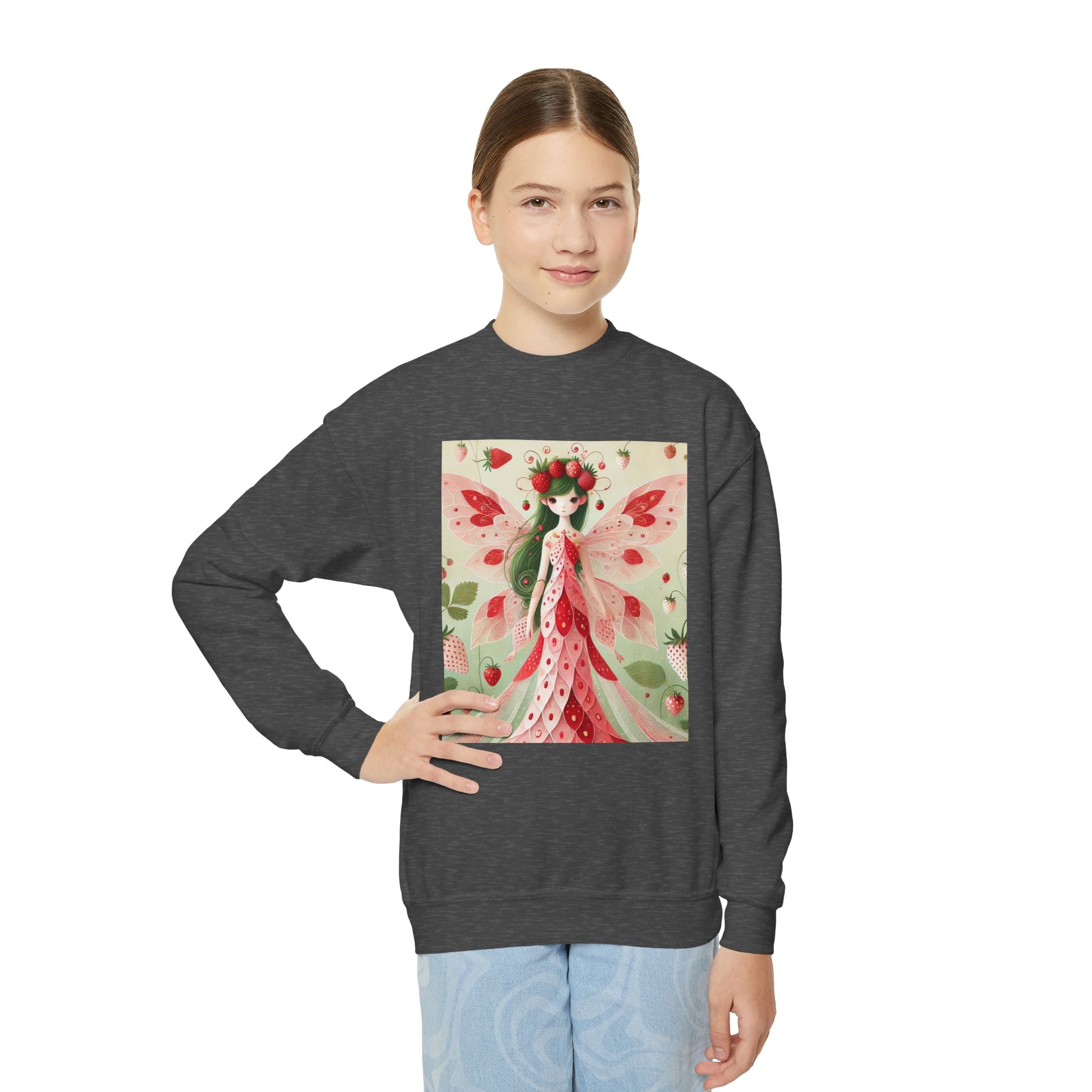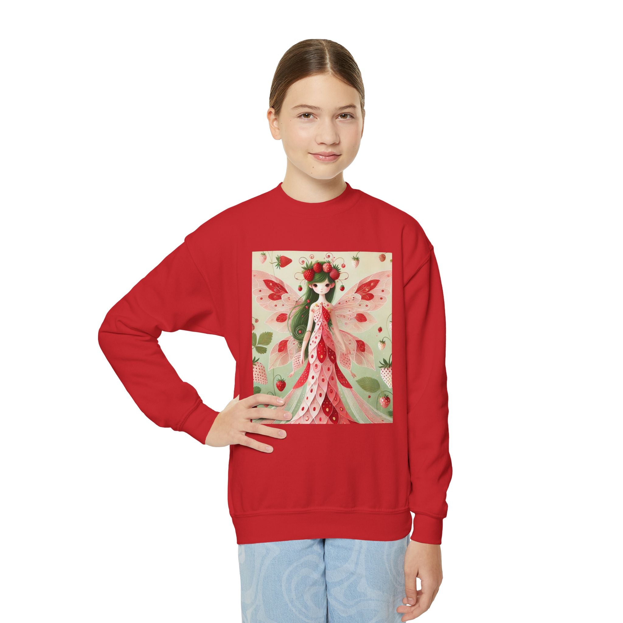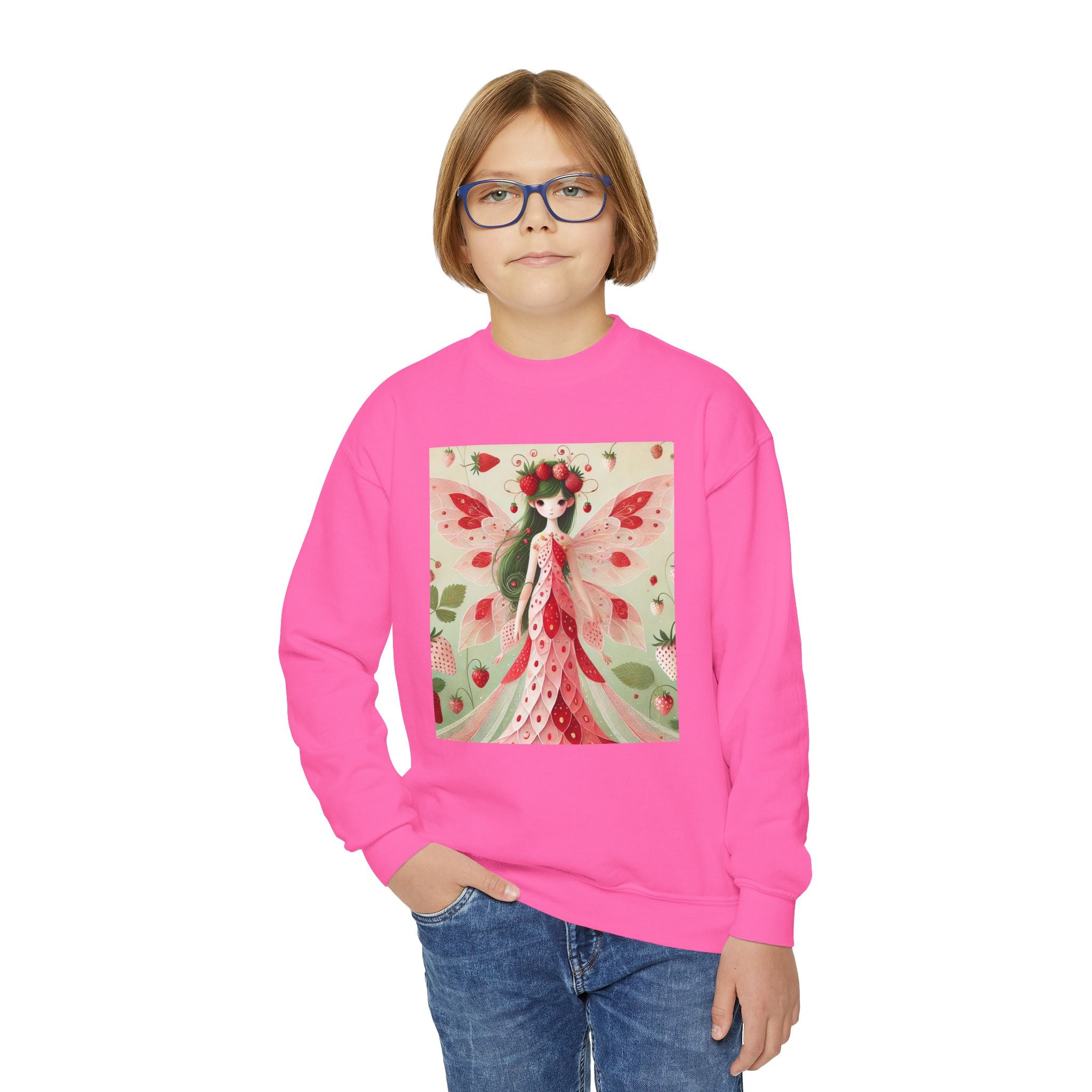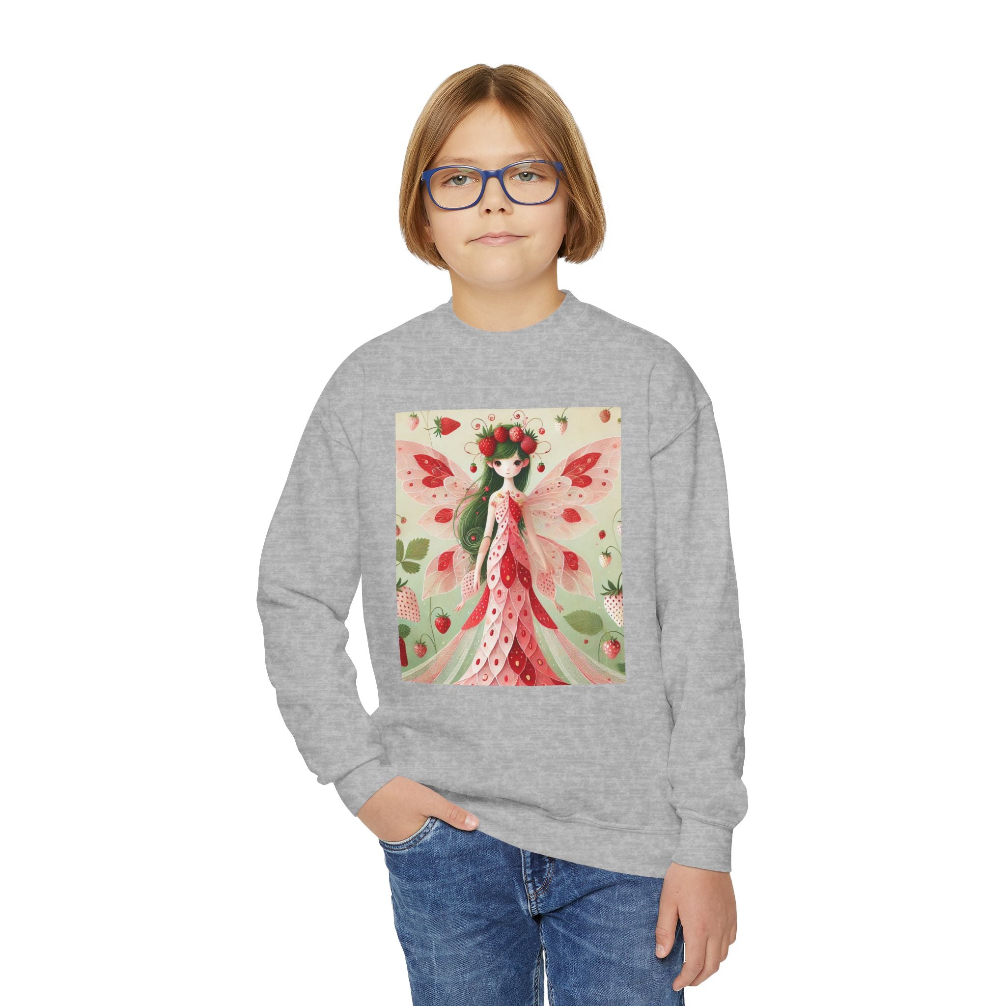 Strawberry Fairy Delight Youth Crewneck Sweatshirt brings cozy comfort and a splash of fairy-tale charm to every day. Made from a perfectly balanced blend of 50% cotton and 50% polyester, this Gildan 18000B sweatshirt offers a soft, warm feel ideal for school, play, or relaxing at home. Its medium-heavy fabric ensures durability and a premium texture, while the loose fit allows for easy, carefree movement. Please note: due to the fabric properties, the White color variant may appear slightly off-white.