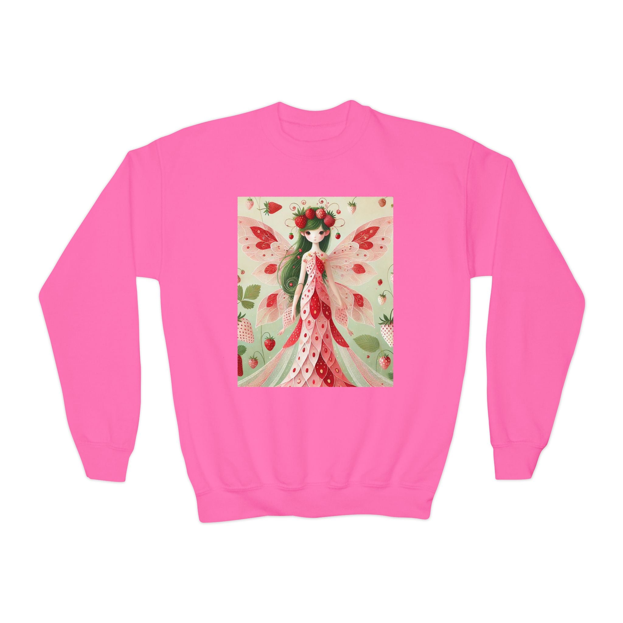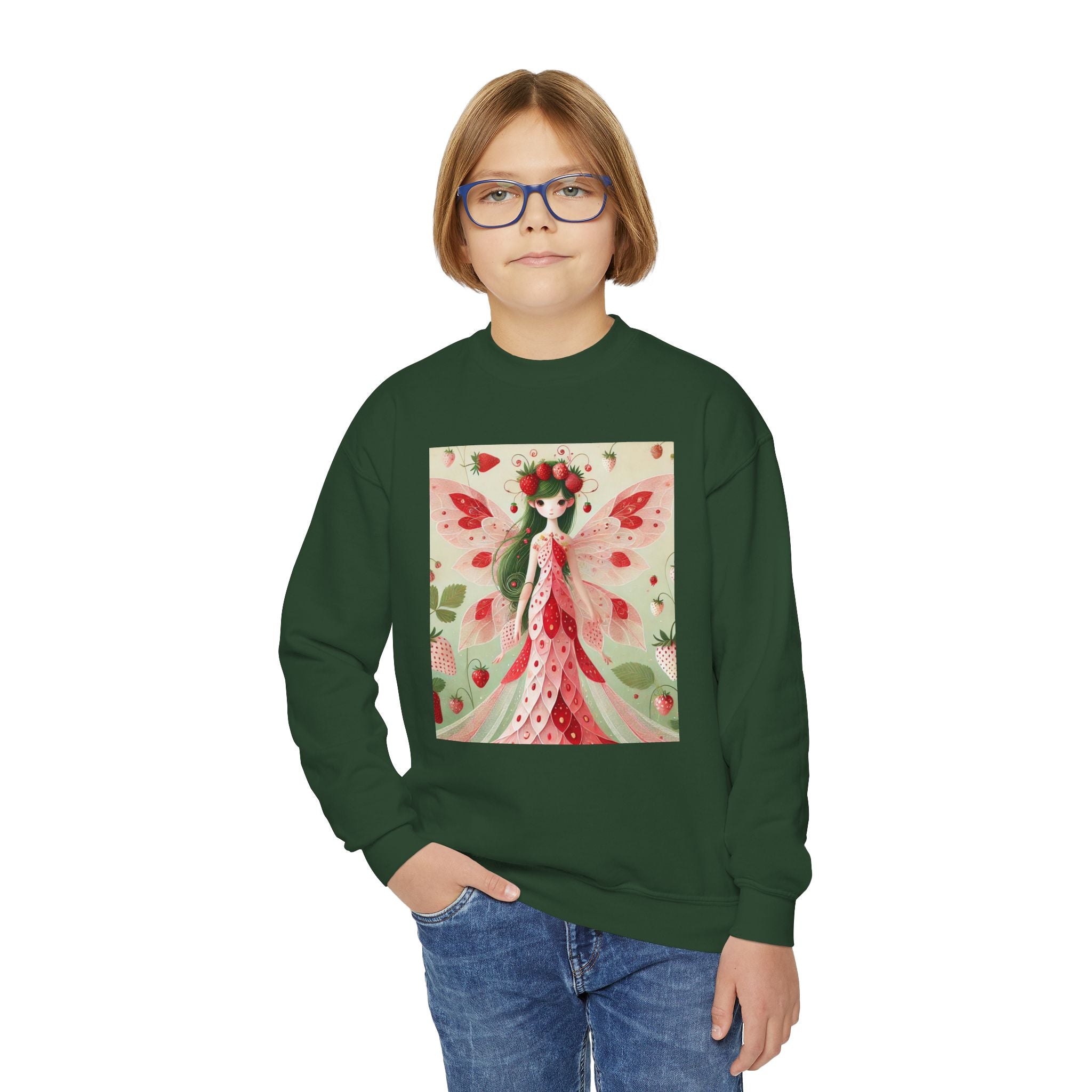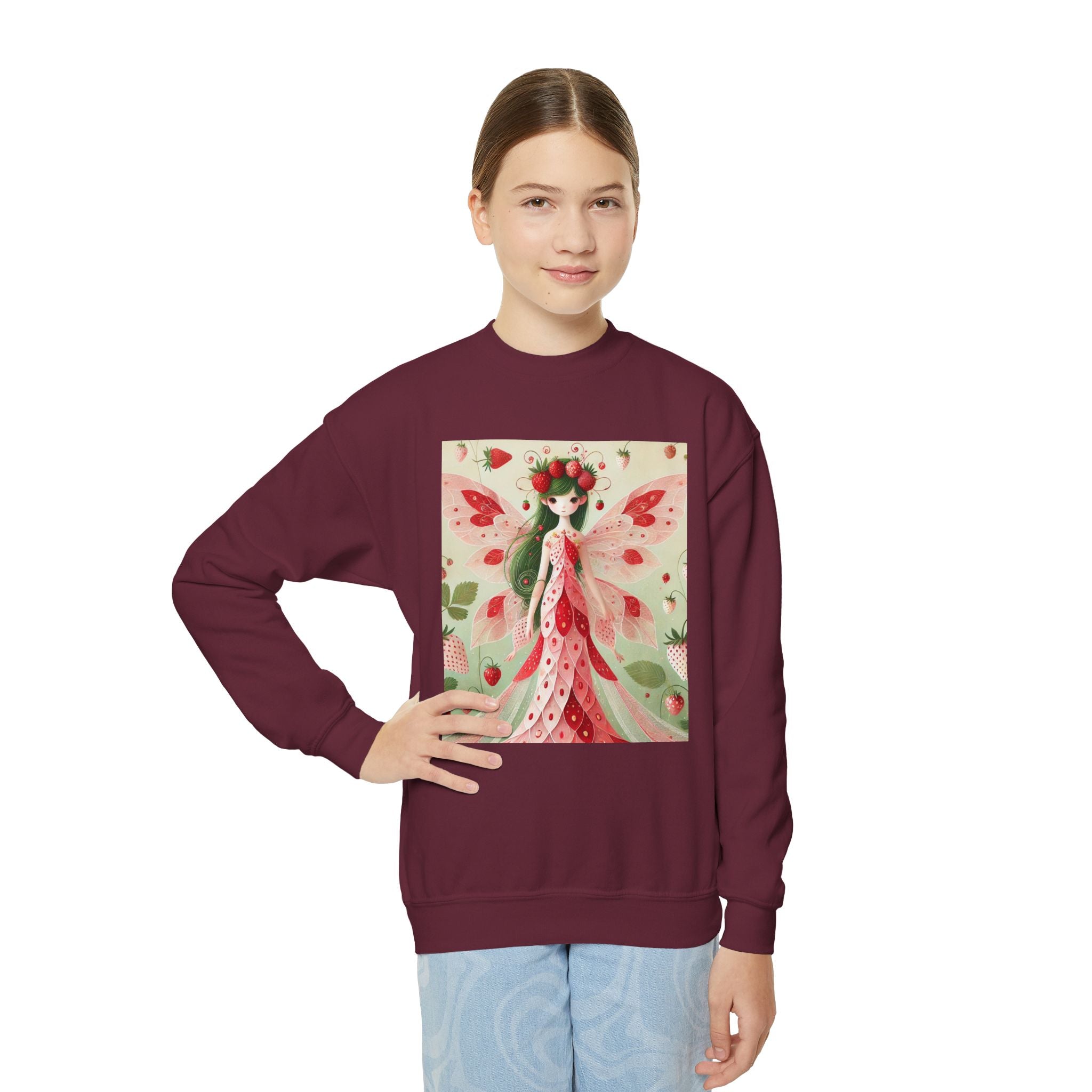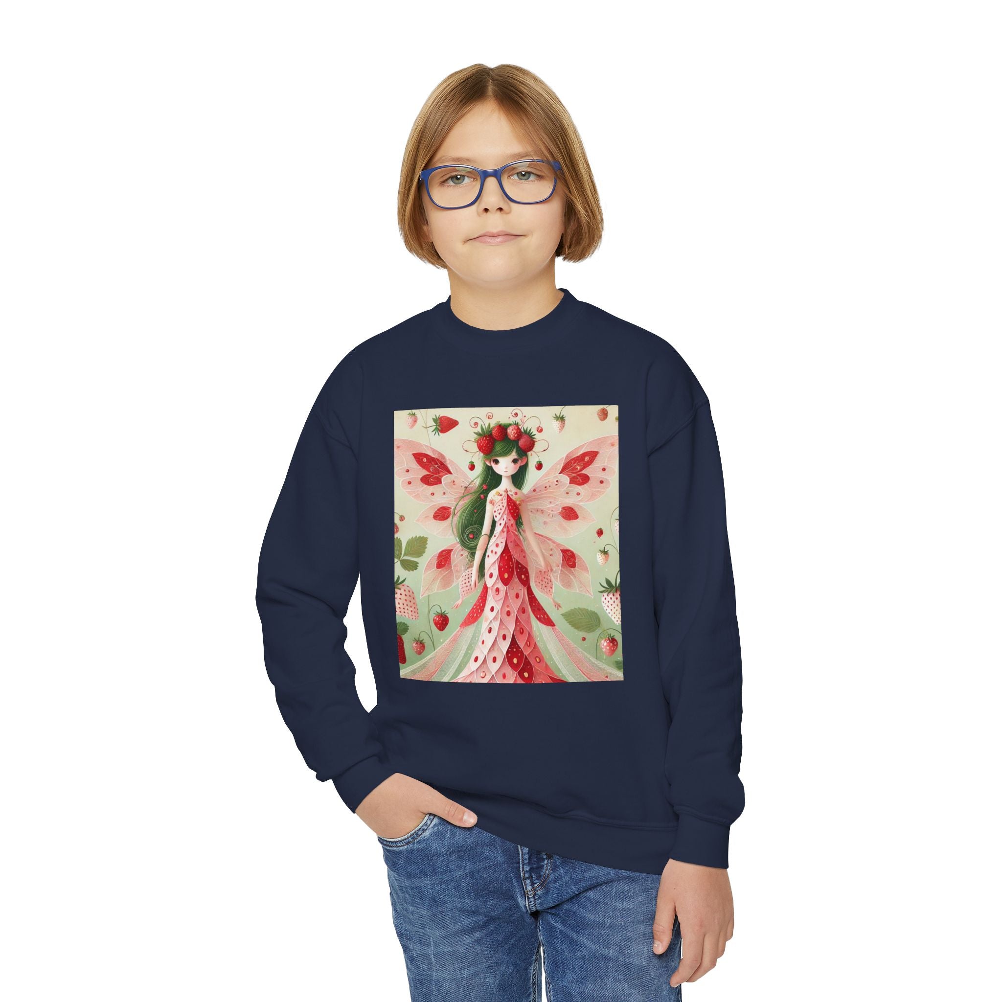 Strawberry Fairy Delight Youth Crewneck Sweatshirt brings cozy comfort and a splash of fairy-tale charm to every day. Made from a perfectly balanced blend of 50% cotton and 50% polyester, this Gildan 18000B sweatshirt offers a soft, warm feel ideal for school, play, or relaxing at home. Its medium-heavy fabric ensures durability and a premium texture, while the loose fit allows for easy, carefree movement. Please note: due to the fabric properties, the White color variant may appear slightly off-white.