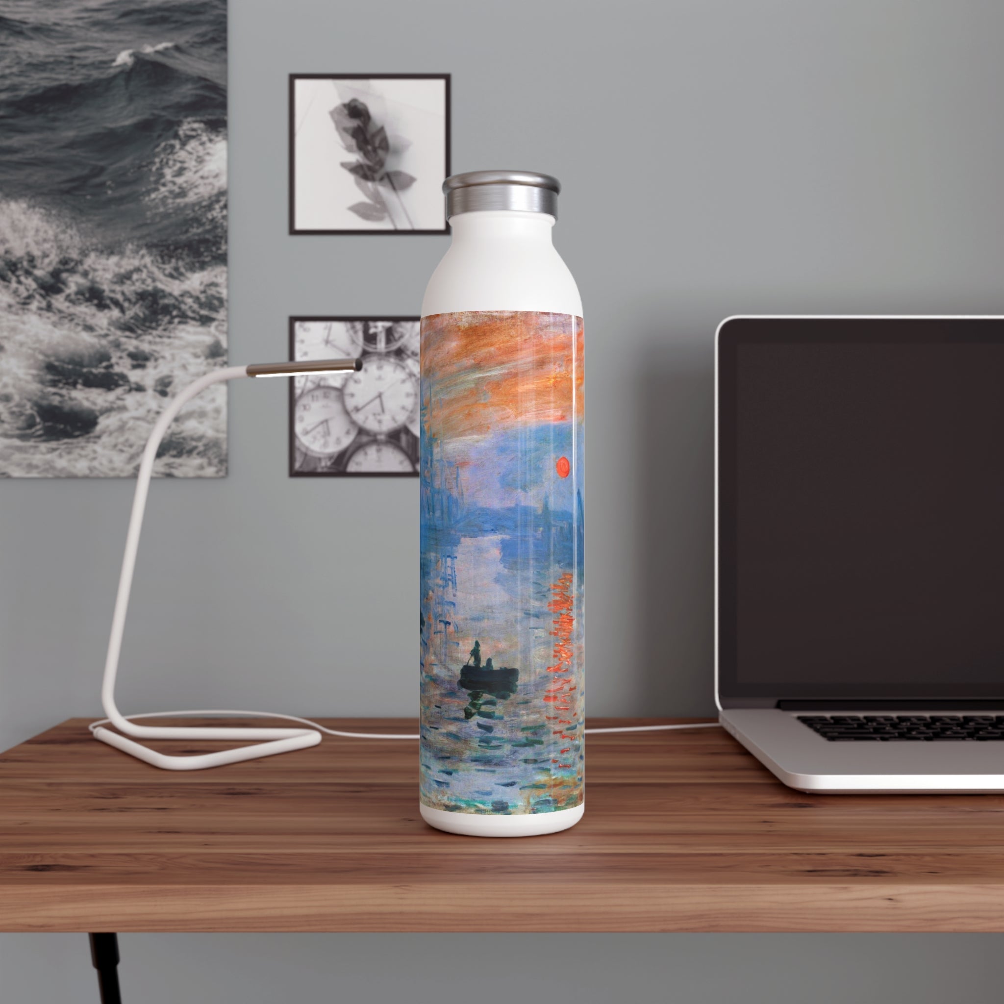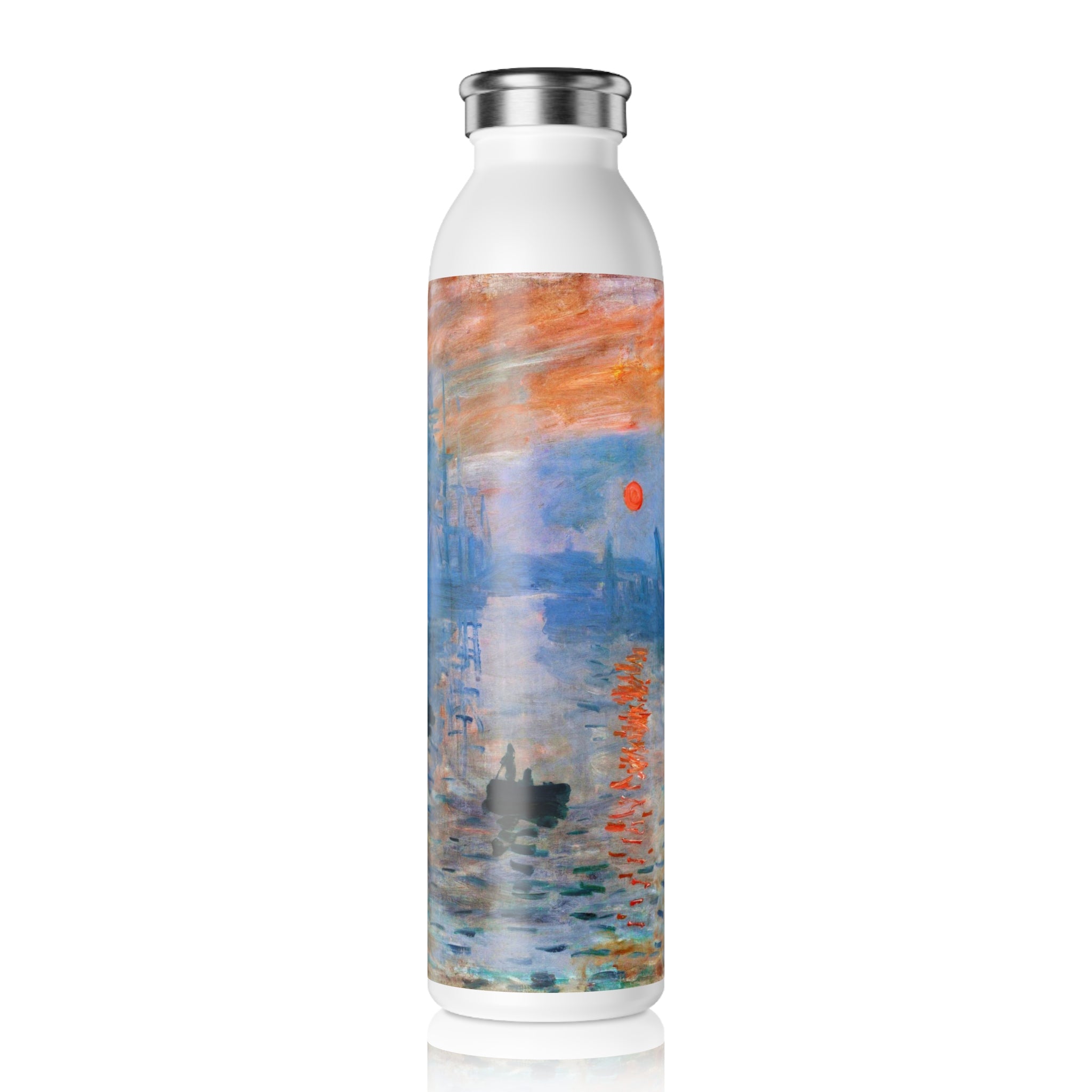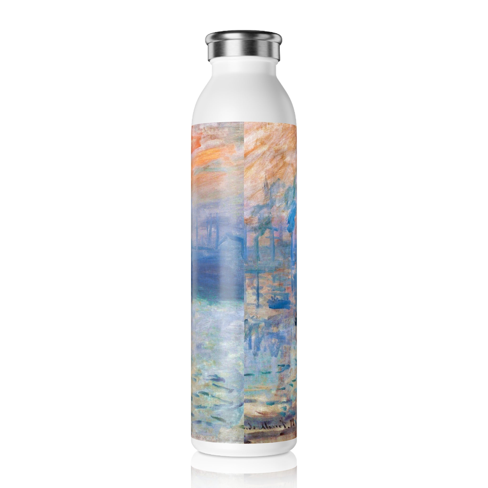 This artful water bottle boasts a 20oz capacity, a trendy lid, double-wall stainless steel construction, and employs vacuum insulation to maintain the ideal temperature of your beverages for extended periods. The vintage art design comes alive in vibrant detail against the chic matte finish.