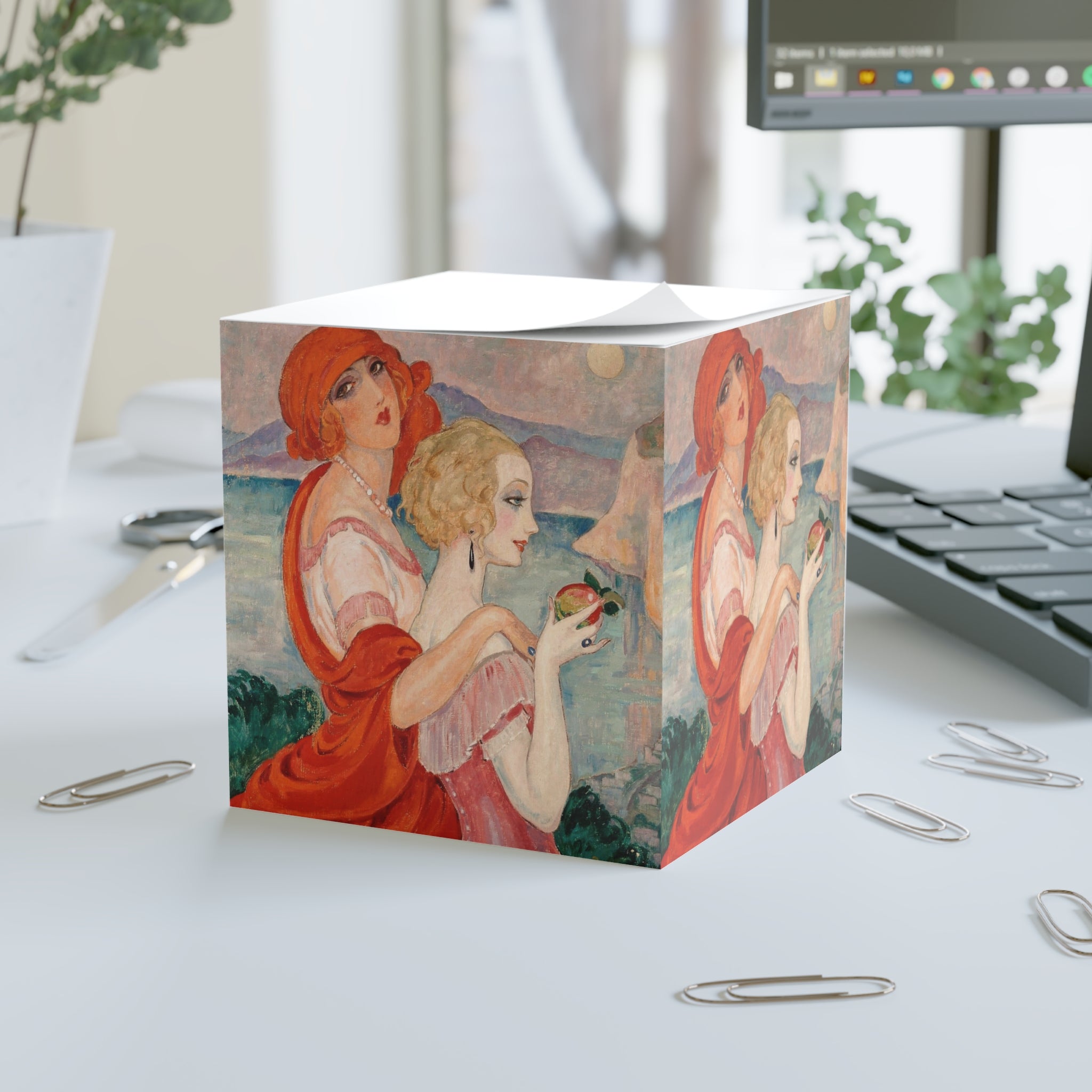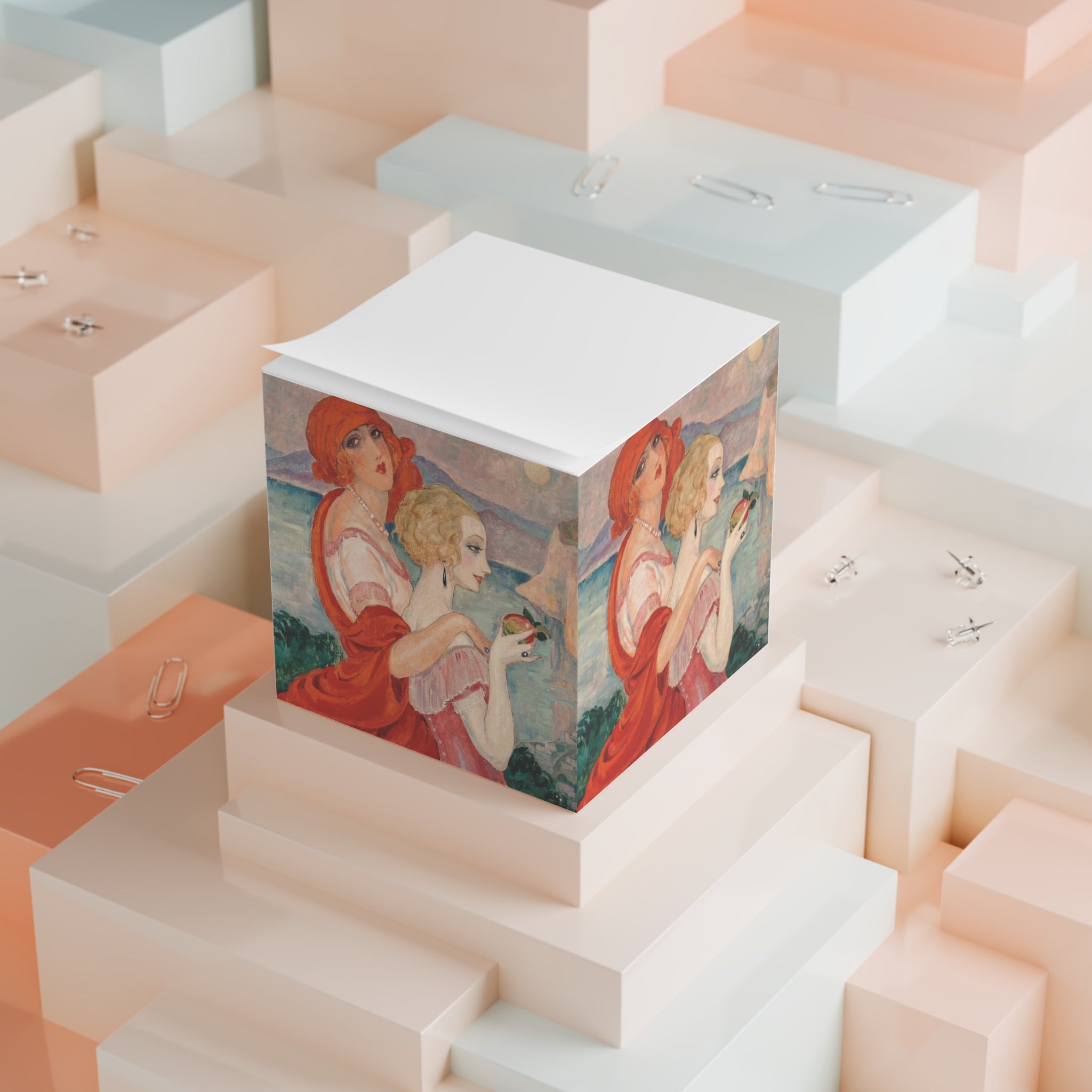 When utility meets art deco-inspired design, the result is the remarkable art deco-designed sticky note cube that effortlessly combines functionality with a touch of aesthetic charm. This sticky note cube features 700 sticky sheets for you to conveniently take notes on. Effortlessly blending into any desk or office space, this art deco-designed piece exudes unparalleled elegance, becoming a captivating addition to your surroundings. Each cube measures 3.37" (W) by 3.5" (H).