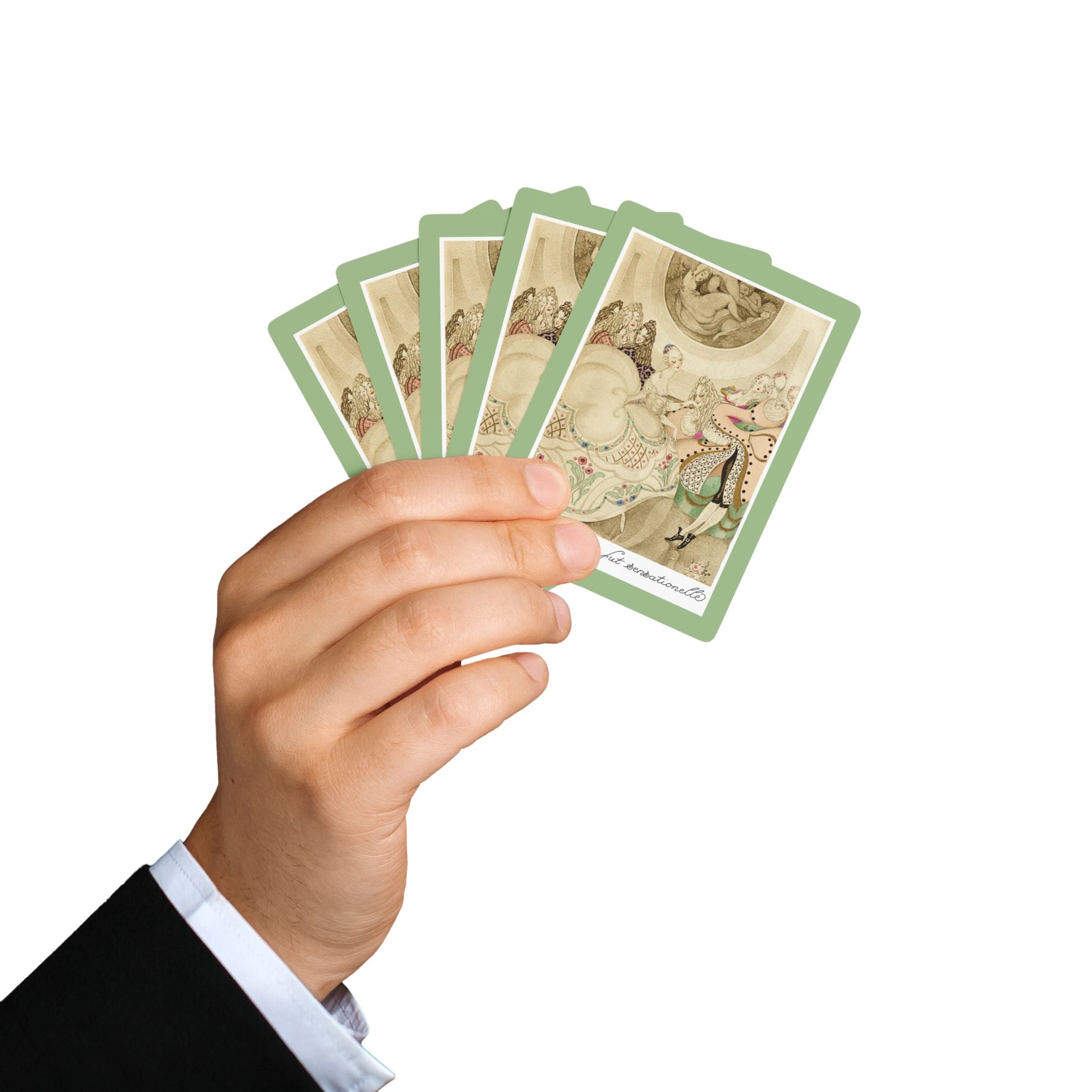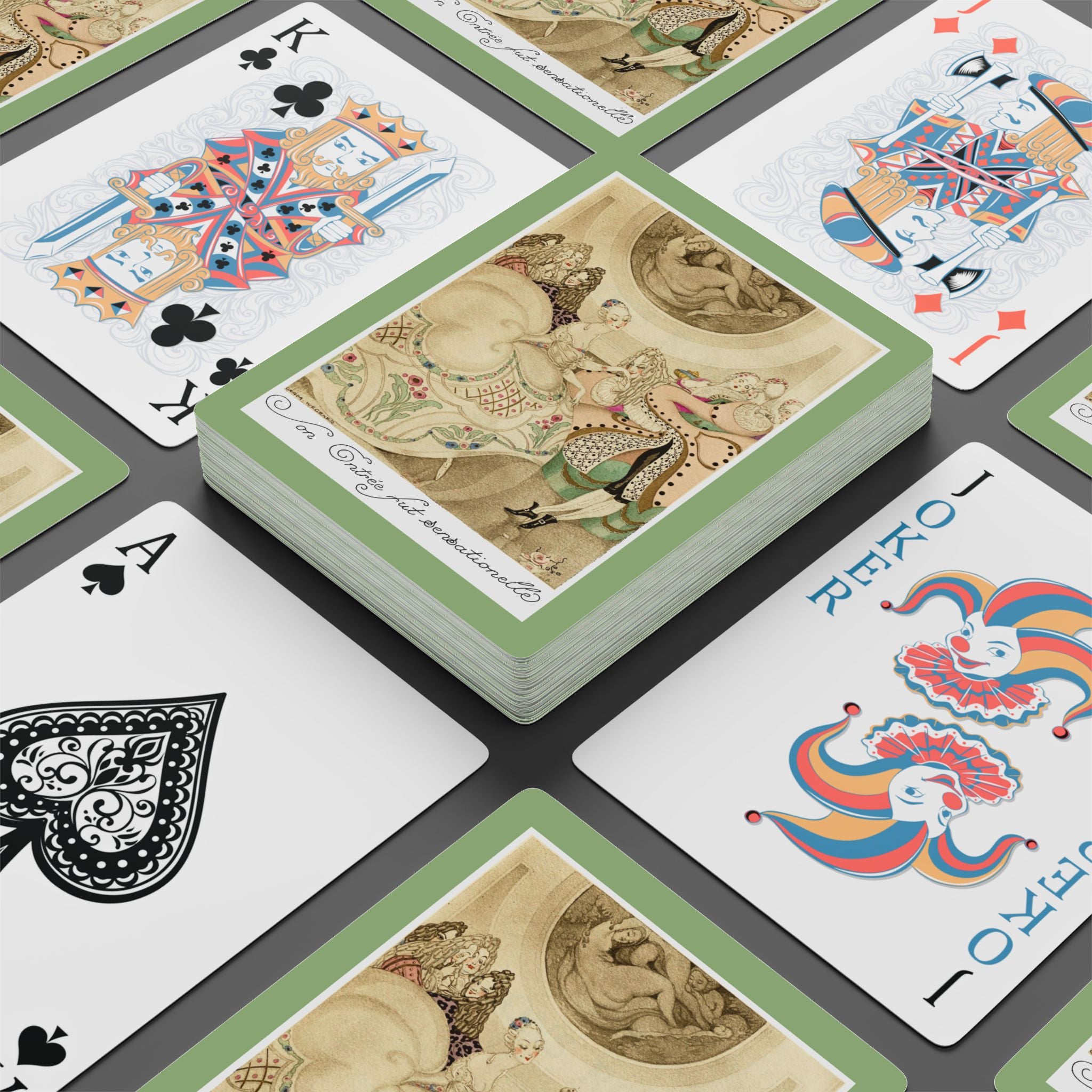 Poker and family game nights are a great deal of fun, but a deck of beautiful cards makes them even better. These Sur talons rouges poker cards are printed on smooth, 300gsm premium card stock that’s perfect for dealing and shuffling. Card Dimensions: 2.5" x 3.5"; Includes 52 playing cards with 2 Joker cards, packaged in a sleek acrylic box for easy storage.