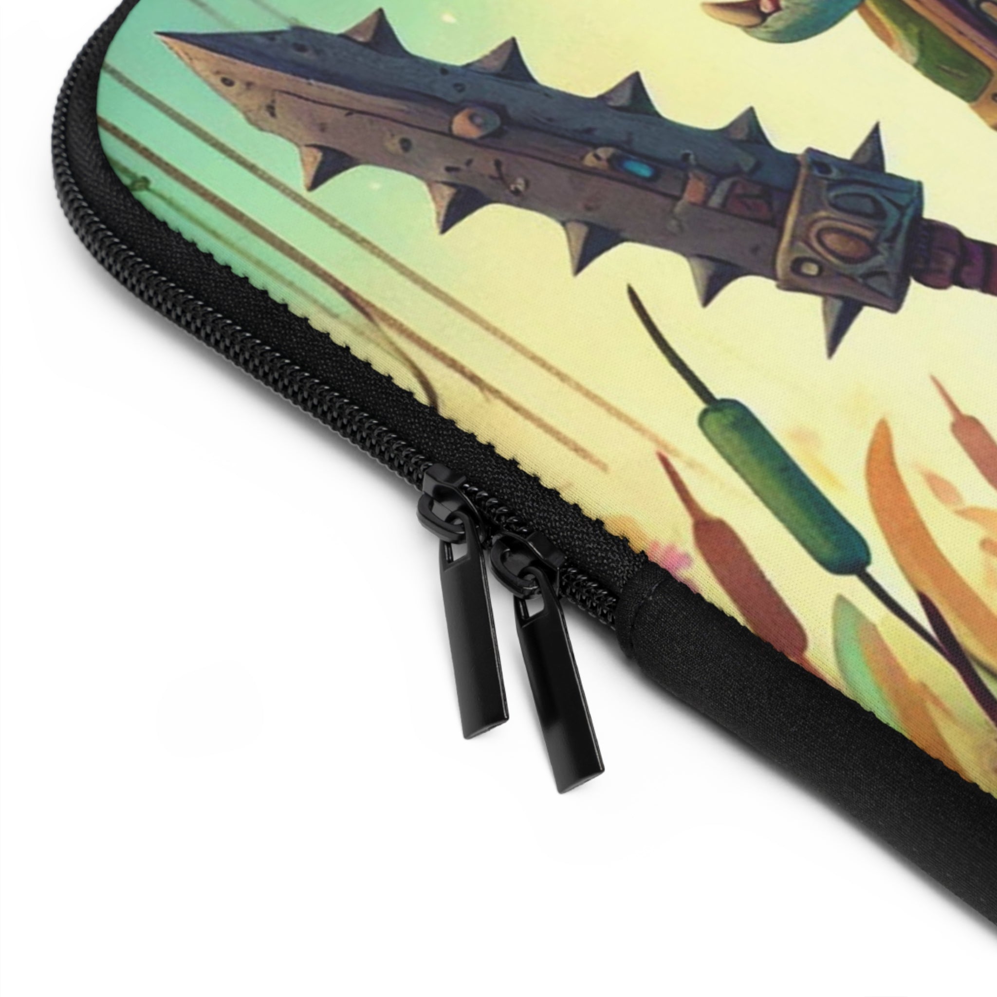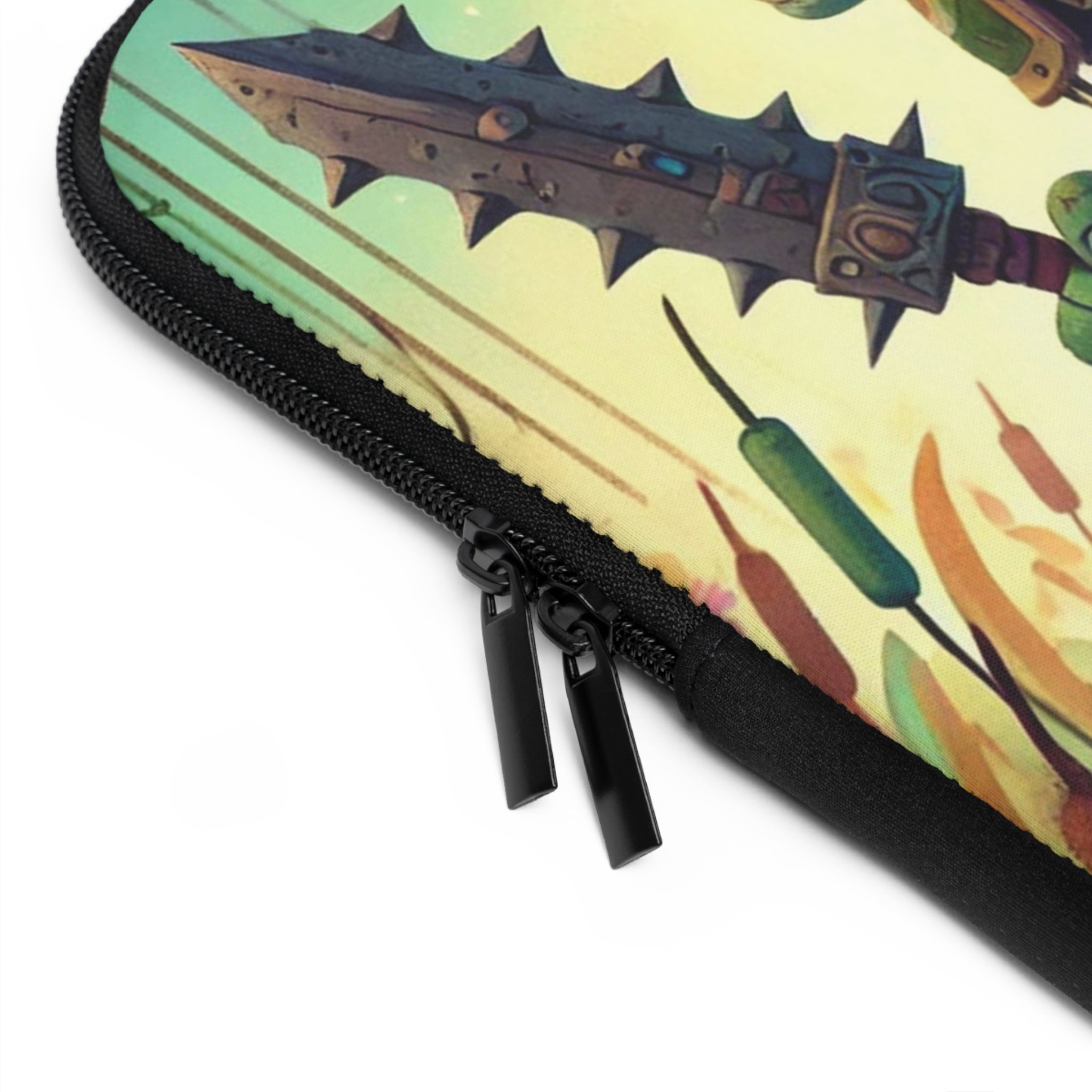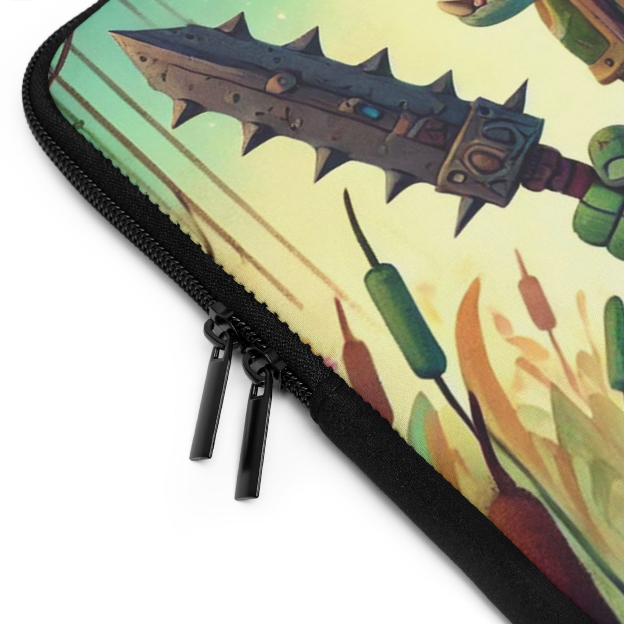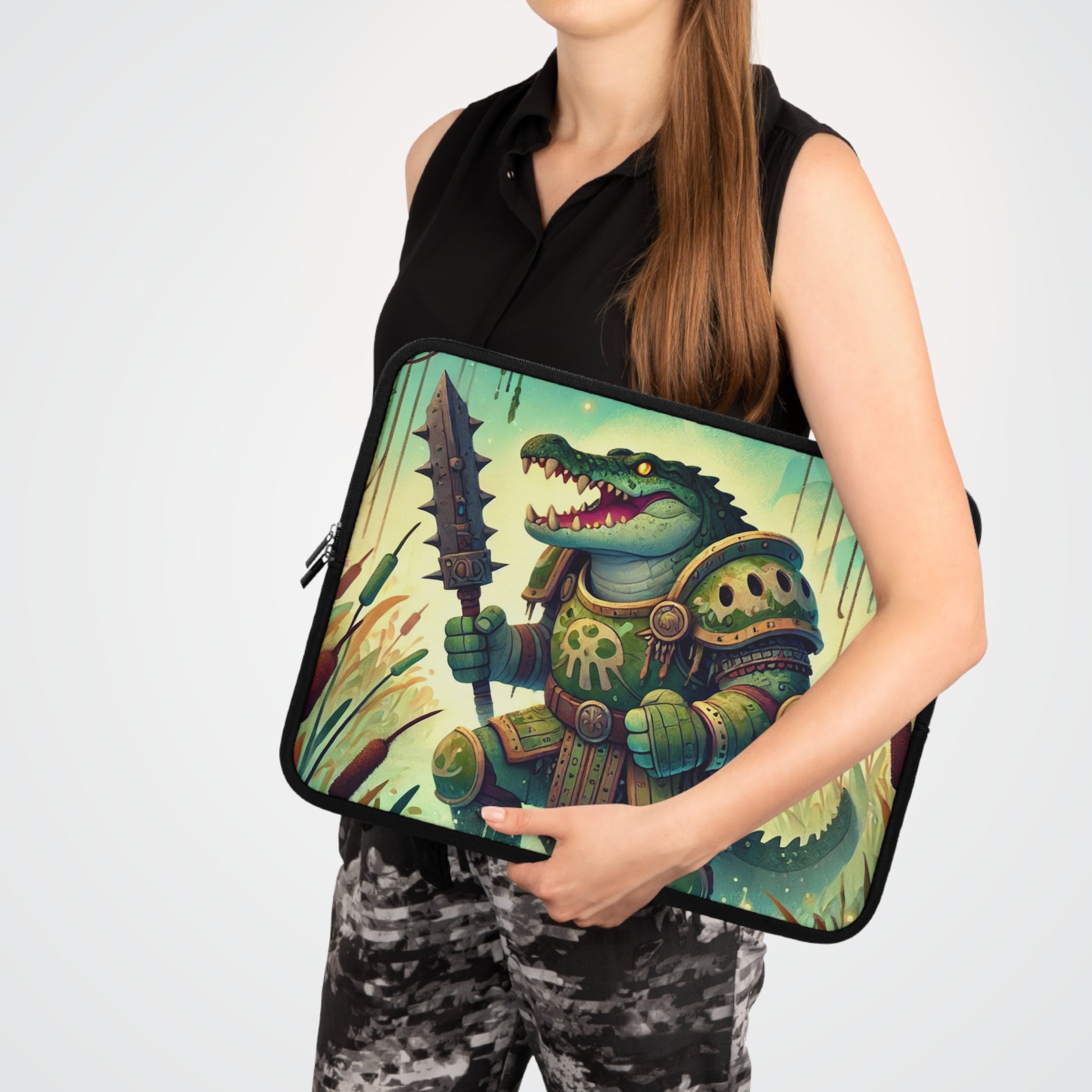 Command attention wherever you go with the Swamp Tyrant Laptop Sleeve, a fusion of fierce imagination and bold design. This captivating artwork portrays a towering crocodile warlord rising from a mist-laden bog, its colossal frame encased in intricately crafted swamp-camo armor that gleams beneath the shifting light. Piercing eyes blaze with primal intelligence, asserting dominion over the murky waters that ripple at its feet. In one clawed hand, the creature wields a jagged club — both weapon and symbol of ancient rule. The air vibrates with the echo of legend, as if the bog itself bows to its reptilian king. This scene masterfully merges the mythical and the monstrous, capturing the timeless essence of power born from the depths.