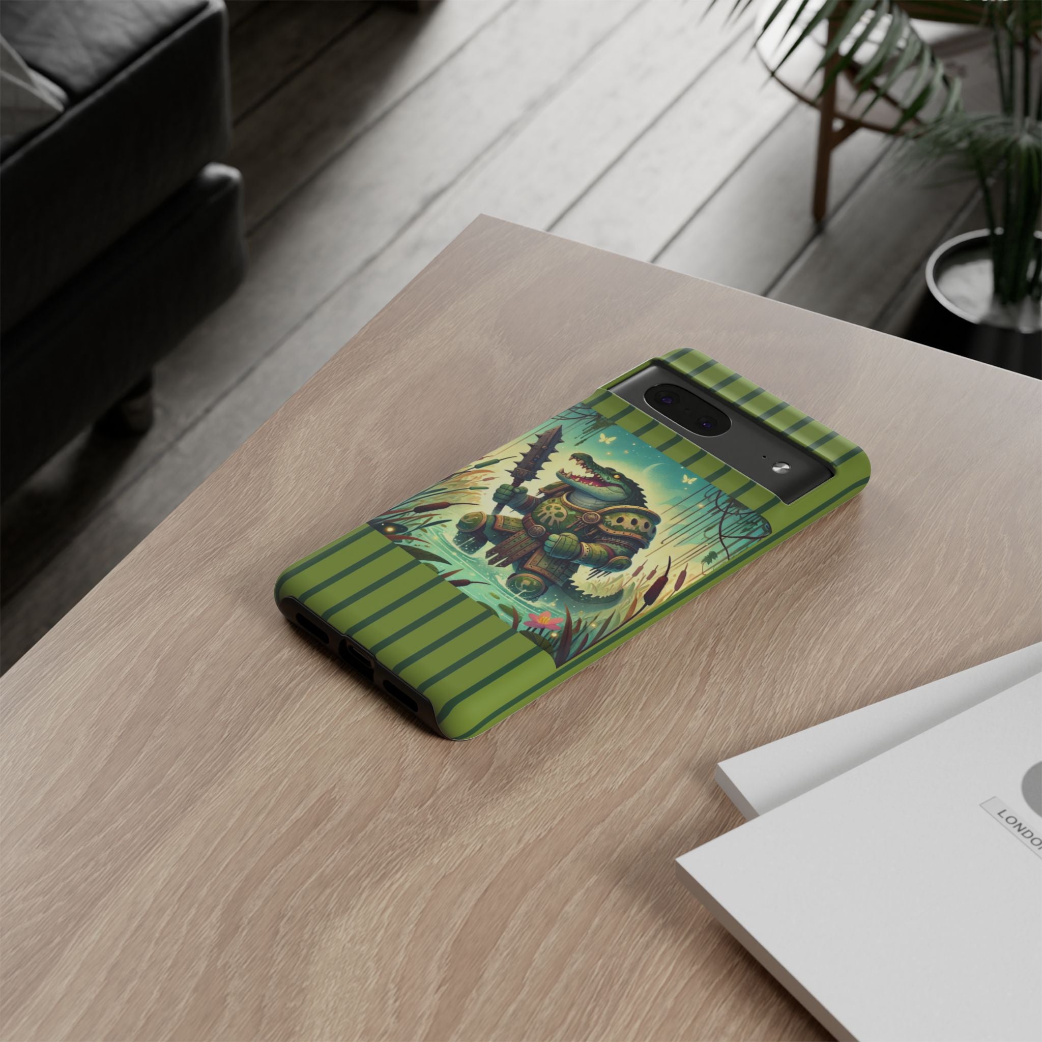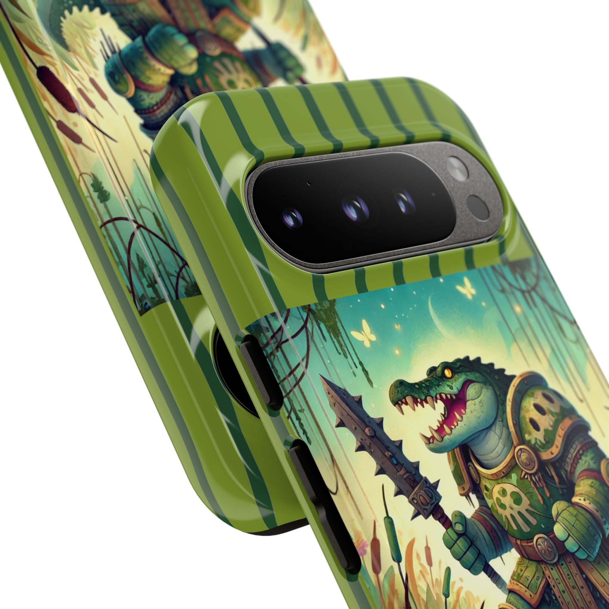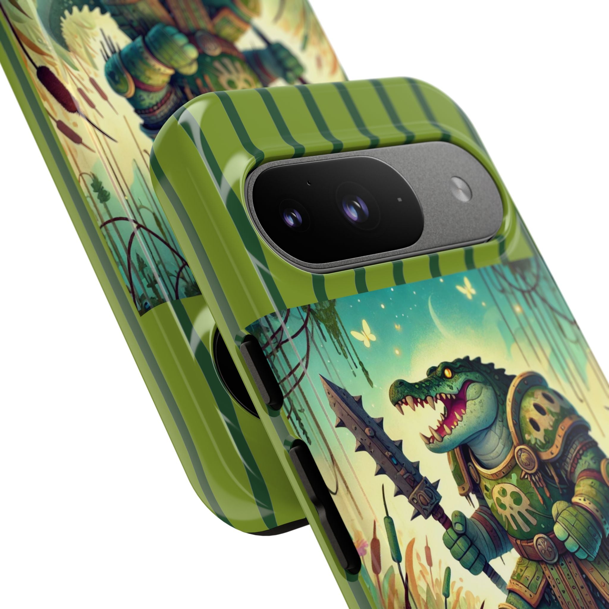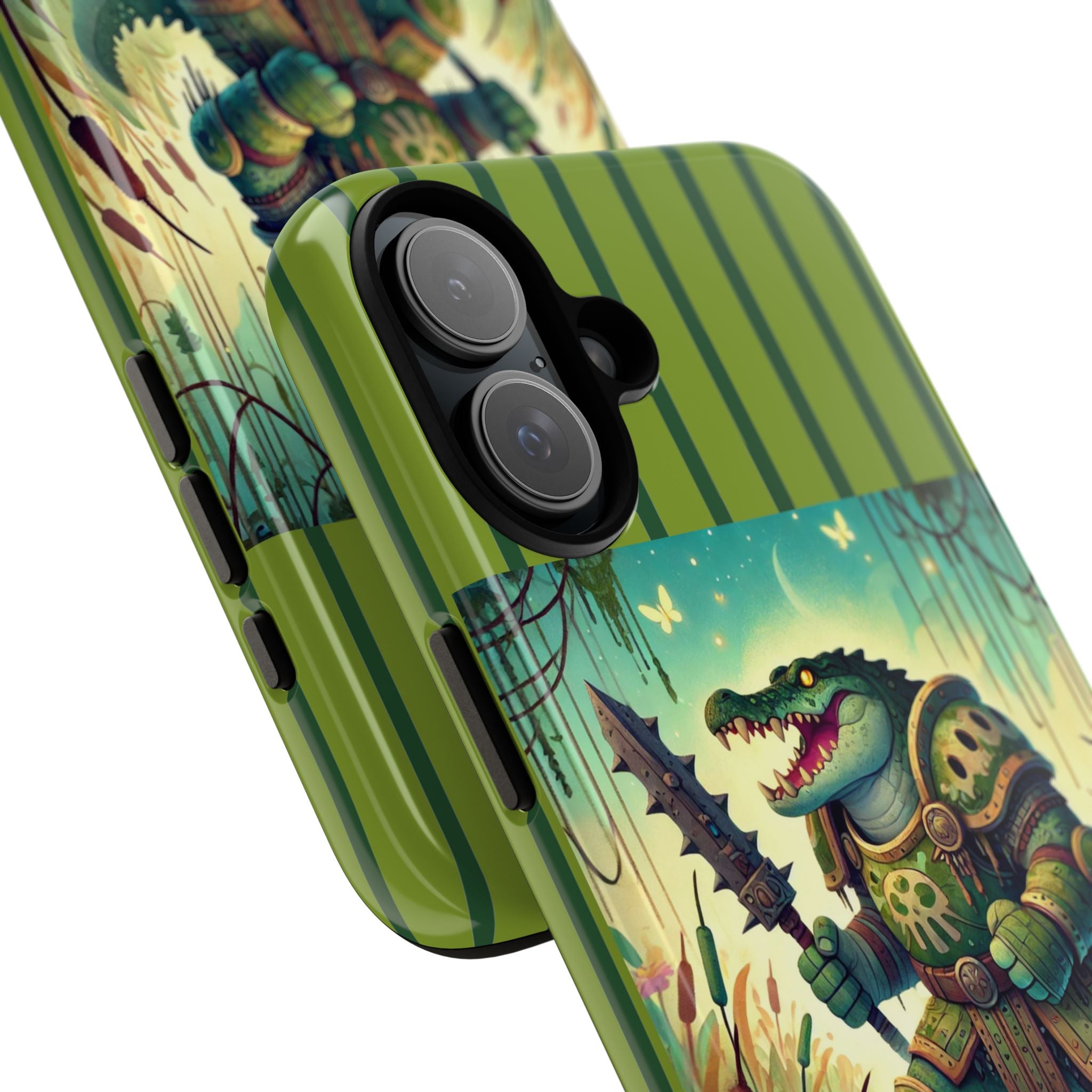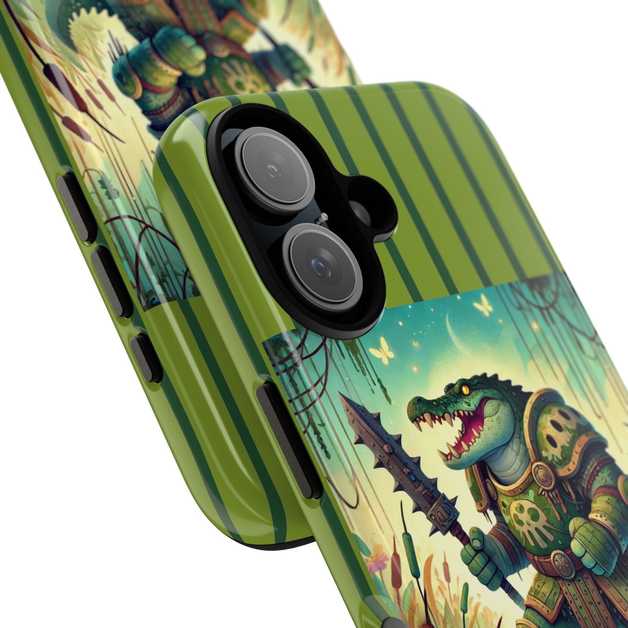 Swamp Tyrant Phone Case channels raw strength and mythic imagination into a bold design that stands apart. Created for Apple iPhone, Samsung Galaxy, and Google Pixel devices, each premium-quality case features double layers for exceptional durability and protection. The solid polycarbonate shell defends against everyday impacts, while the flexible TPU lining ensures a secure and comfortable grip. Clear, open ports make charging simple, and you can select a glossy or matte finish to enhance the artwork’s dramatic tone.