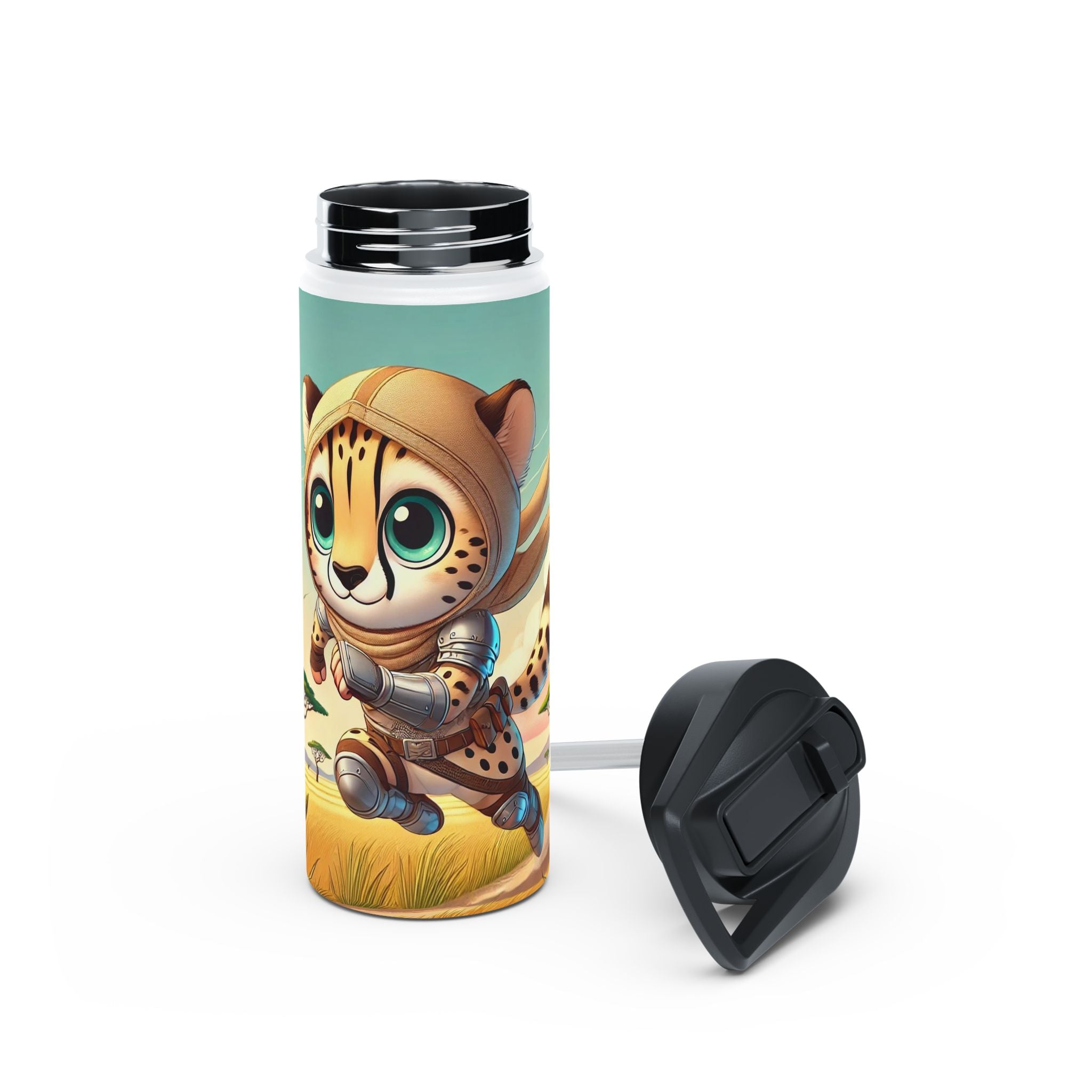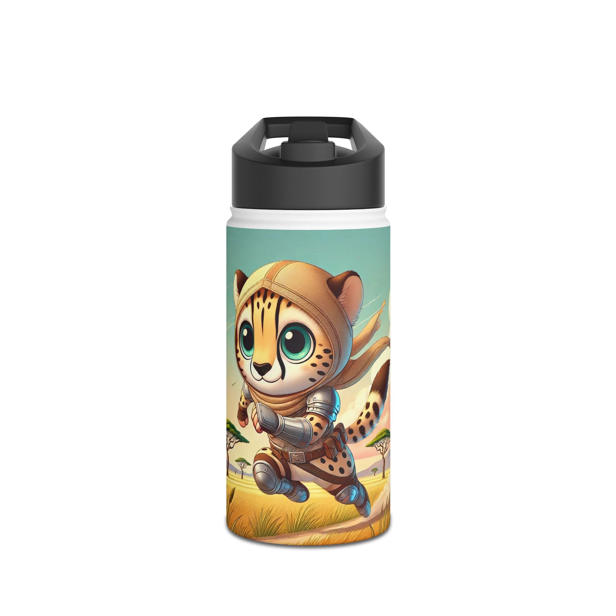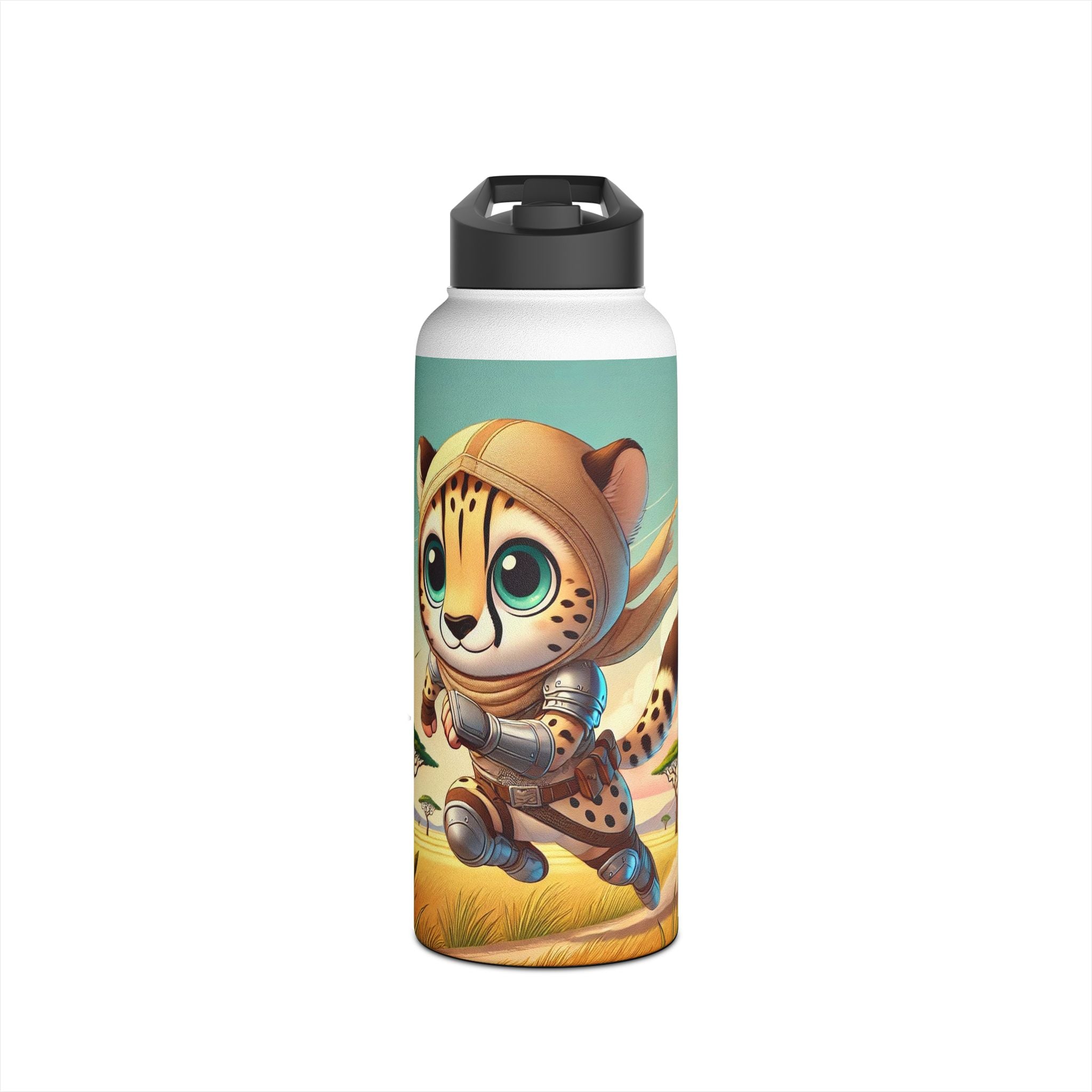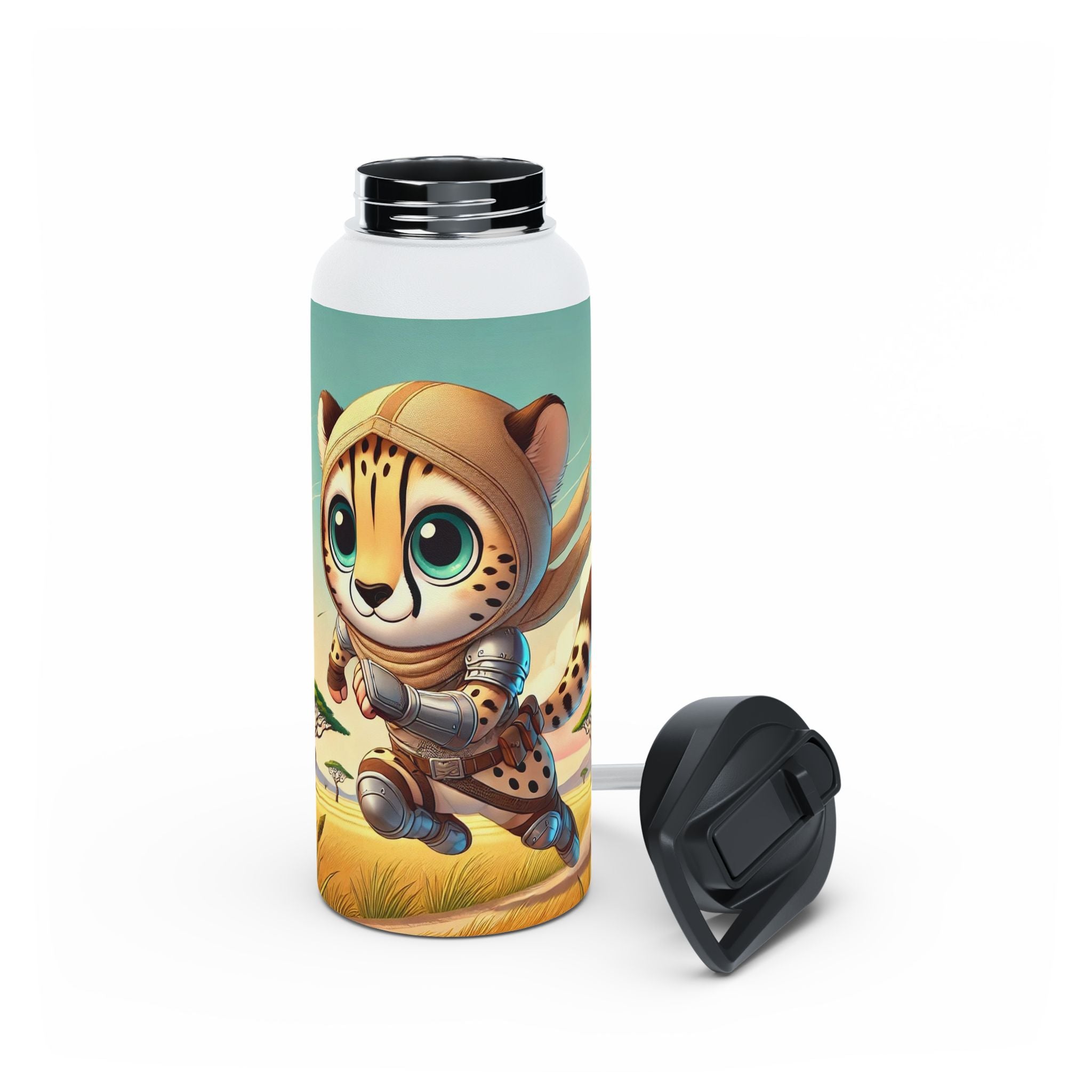 The vivid Swift Cheetah artwork captures the raw energy of a lightning-fast cheetah clad in light battle gear, sprinting across the golden savanna. Every brushstroke radiates motion and intensity, blending strength with a playful sense of adventure. The scene’s bold colors and sense of speed embody freedom, agility, and the thrill of the chase—turning a simple bottle into a piece of art in motion.