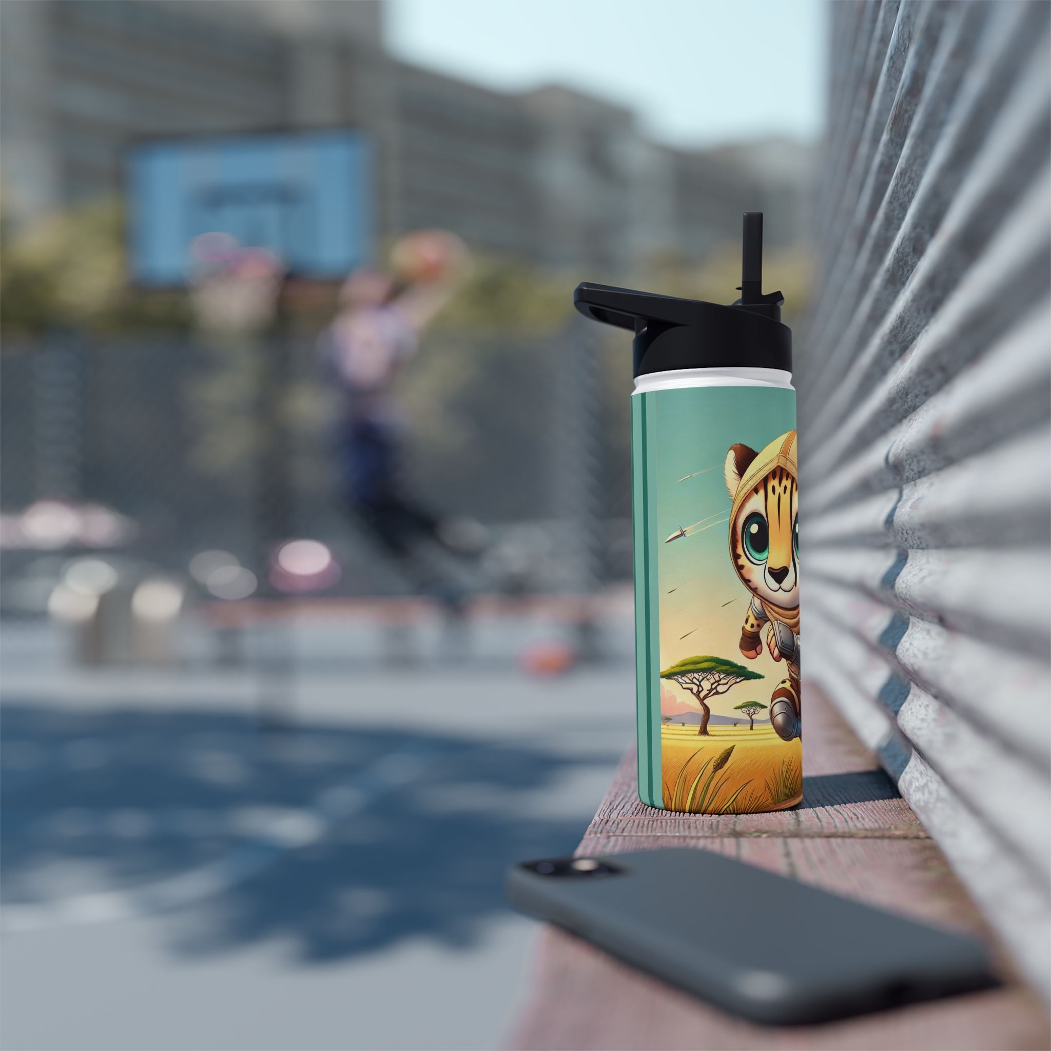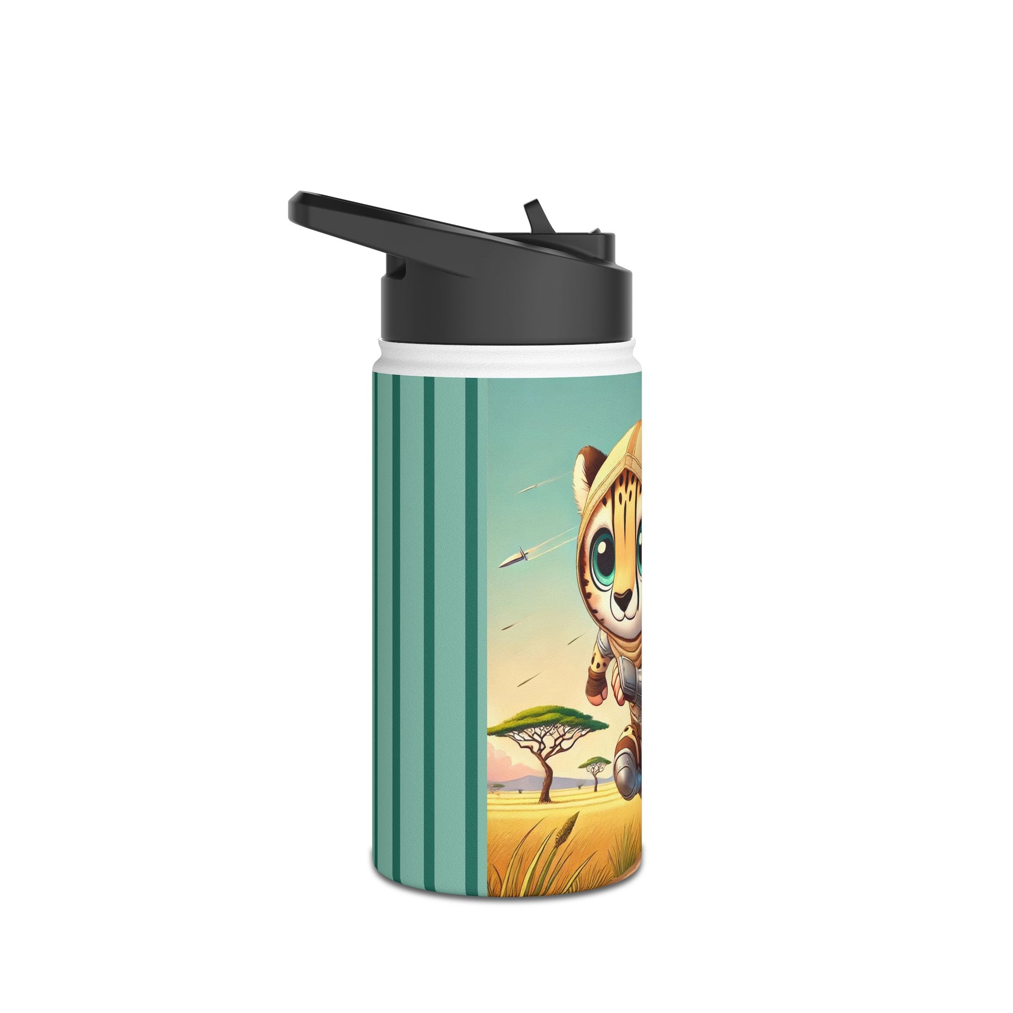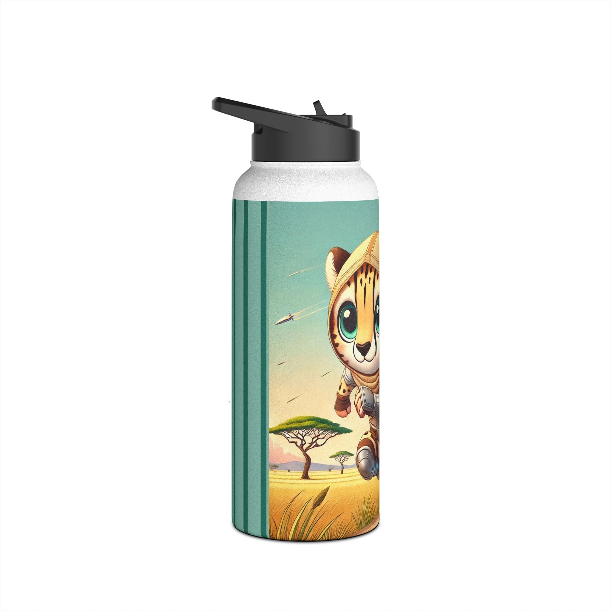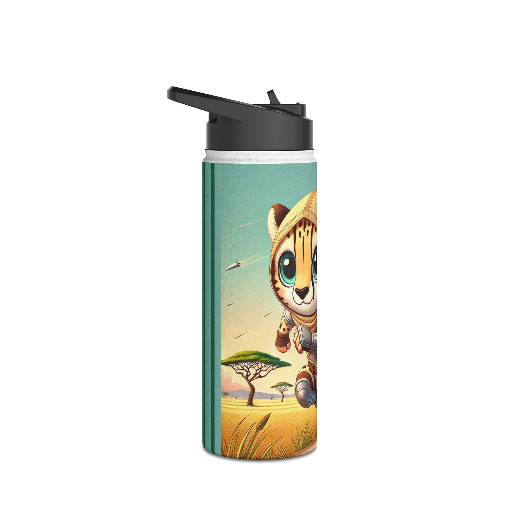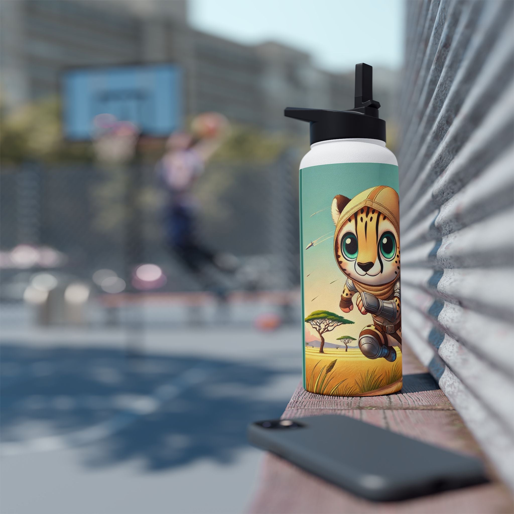 The vivid Swift Cheetah artwork captures the raw energy of a lightning-fast cheetah clad in light battle gear, sprinting across the golden savanna. Every brushstroke radiates motion and intensity, blending strength with a playful sense of adventure. The scene’s bold colors and sense of speed embody freedom, agility, and the thrill of the chase—turning a simple bottle into a piece of art in motion.
