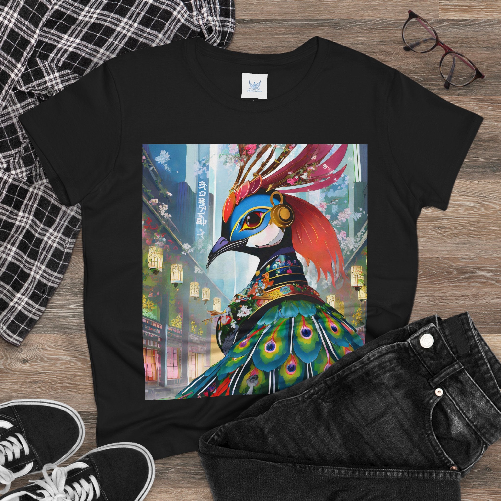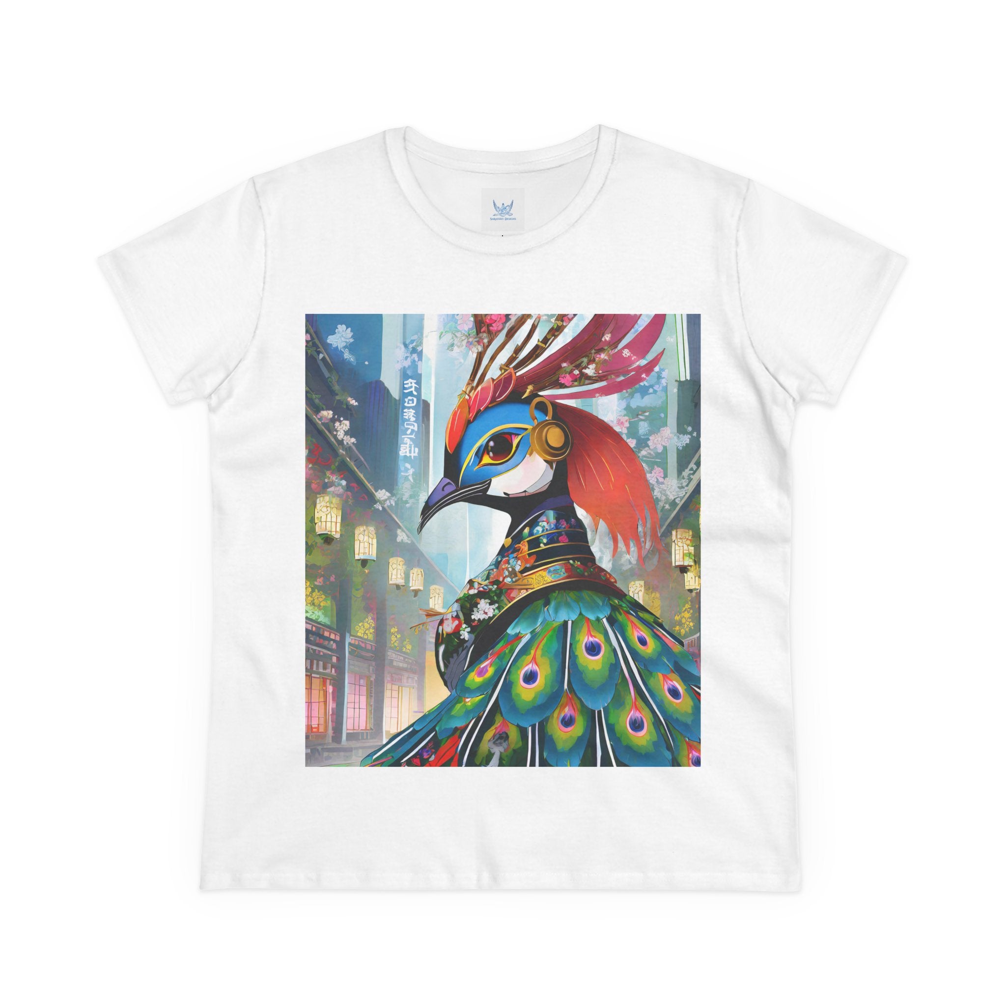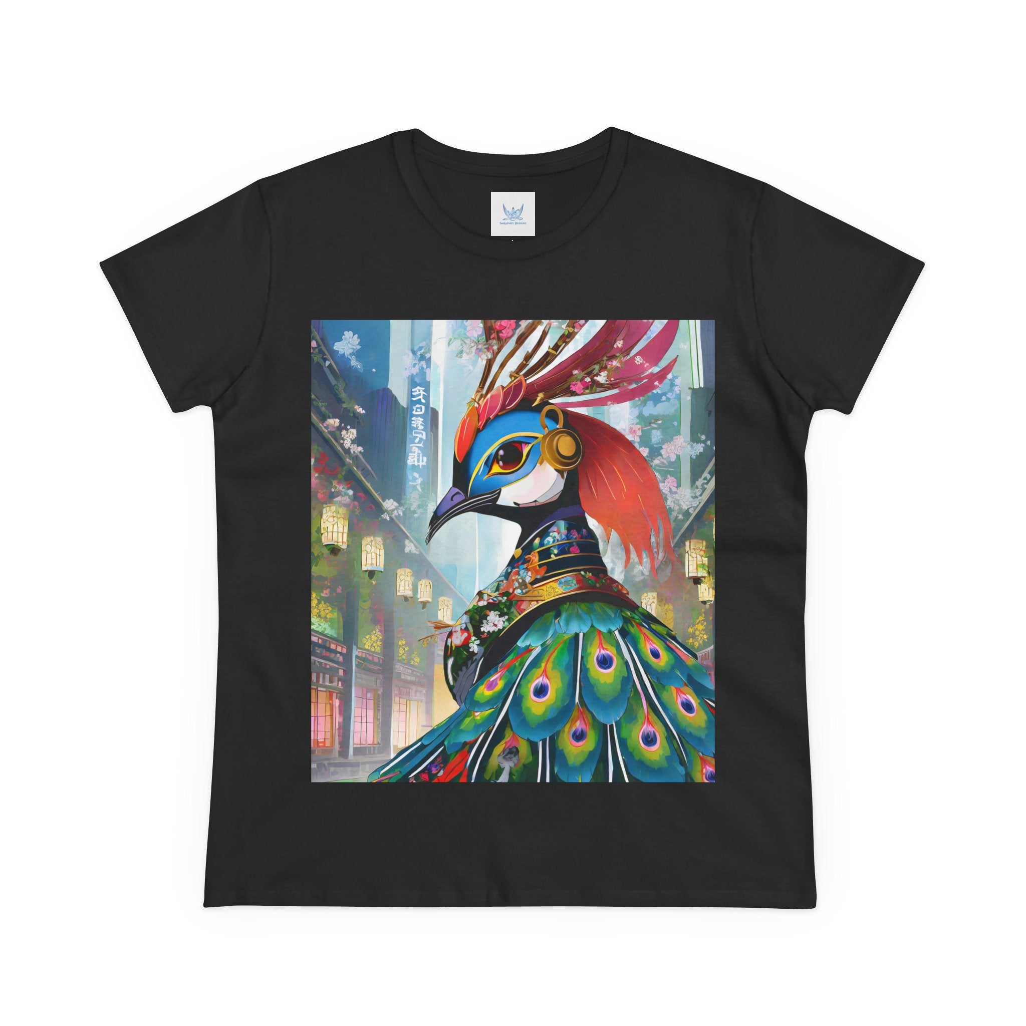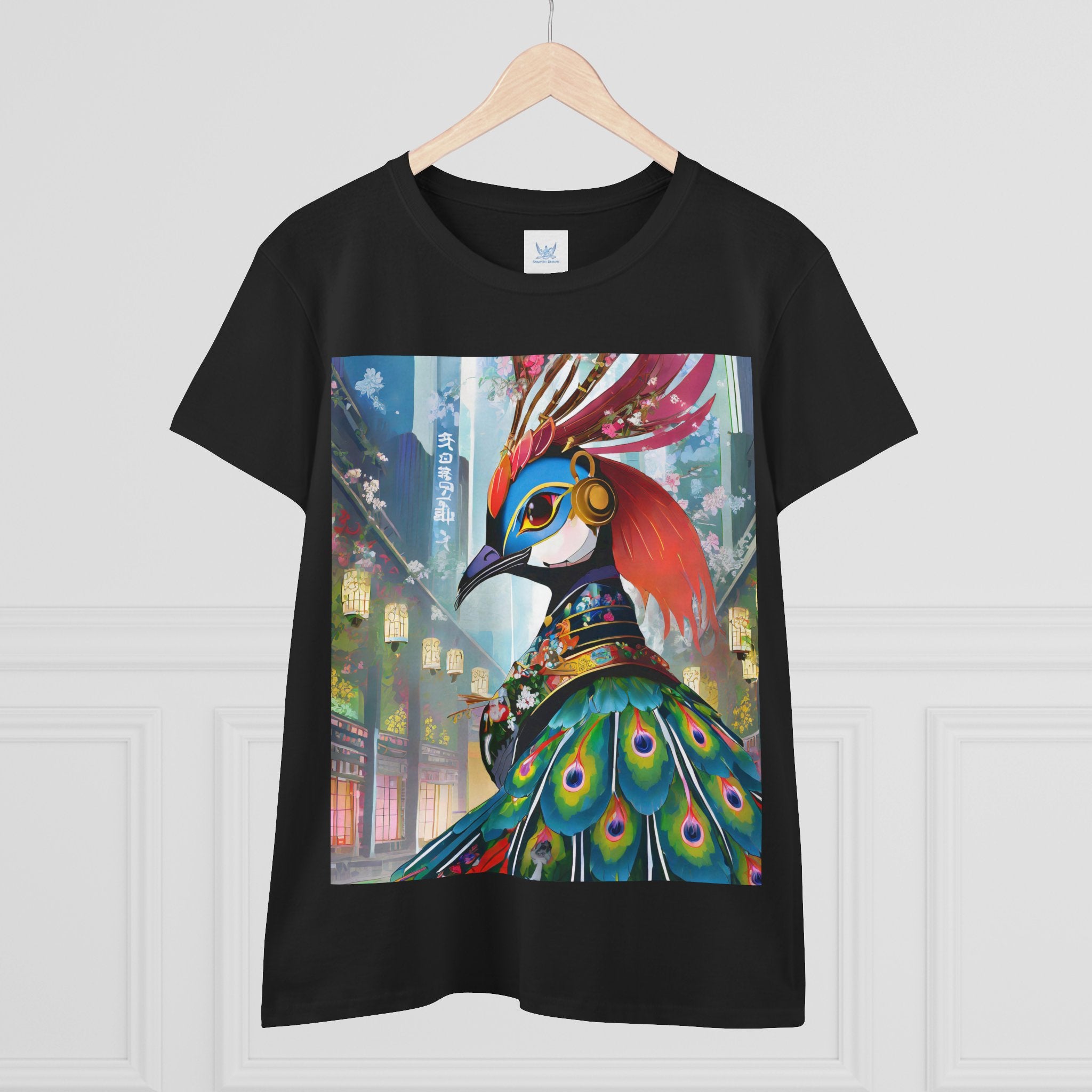 The featured artwork, Techno Plumes, showcases a proud cyberpunk robot peacock strutting with elegance and precision. Adorned in iridescent circuitry and futuristic metallic plumage, the design merges robotics with regal beauty—capturing the captivating presence of a cyber-enhanced creature in full display.
