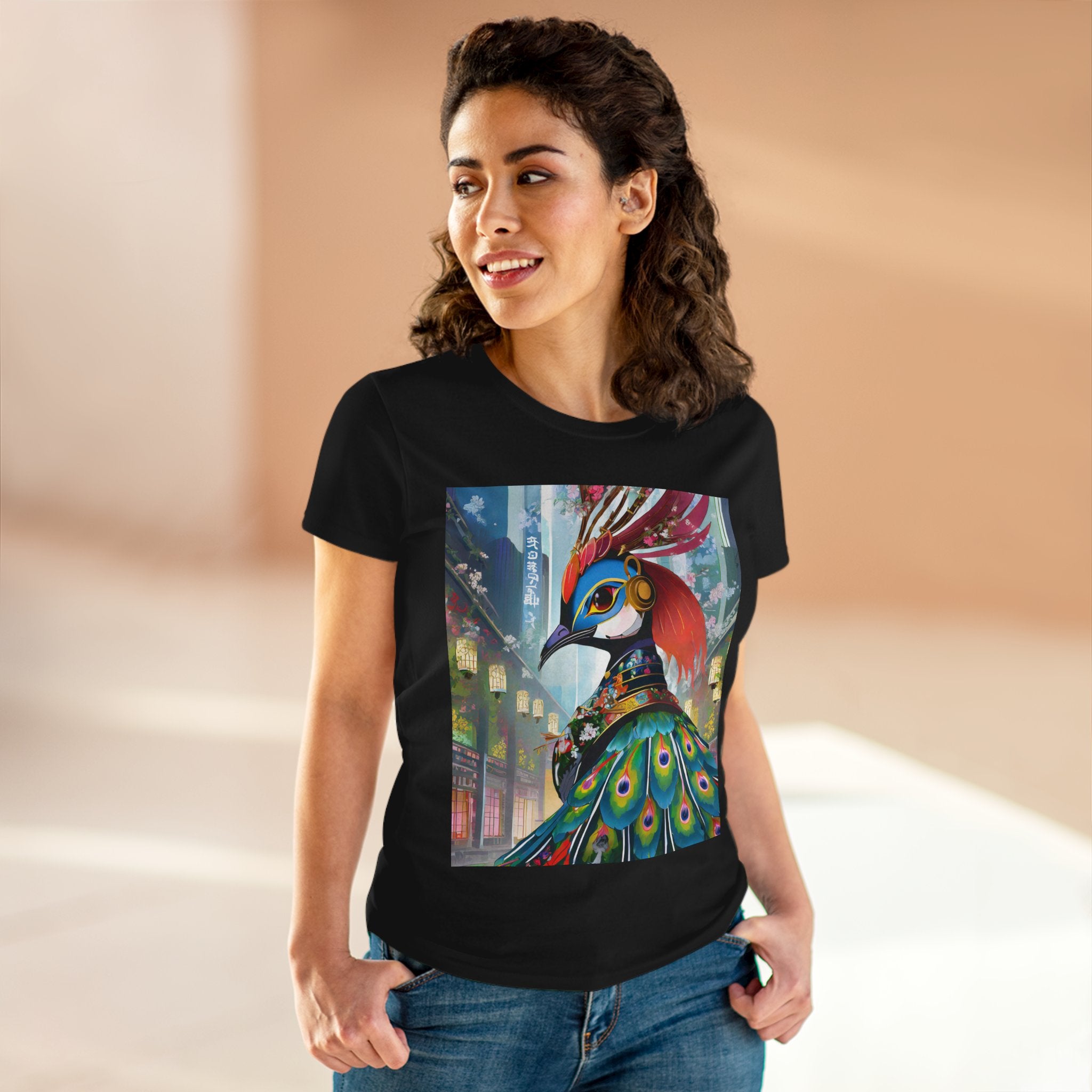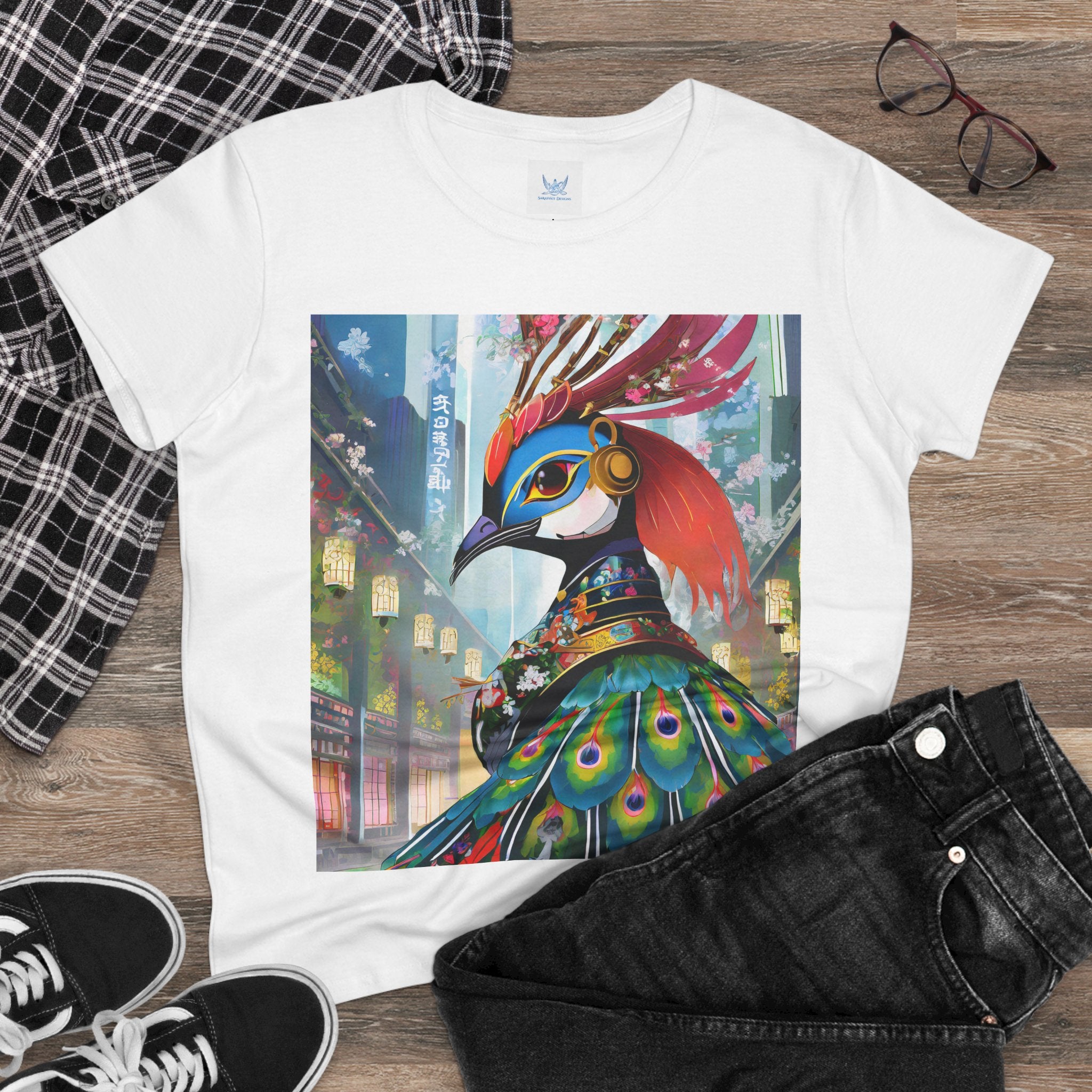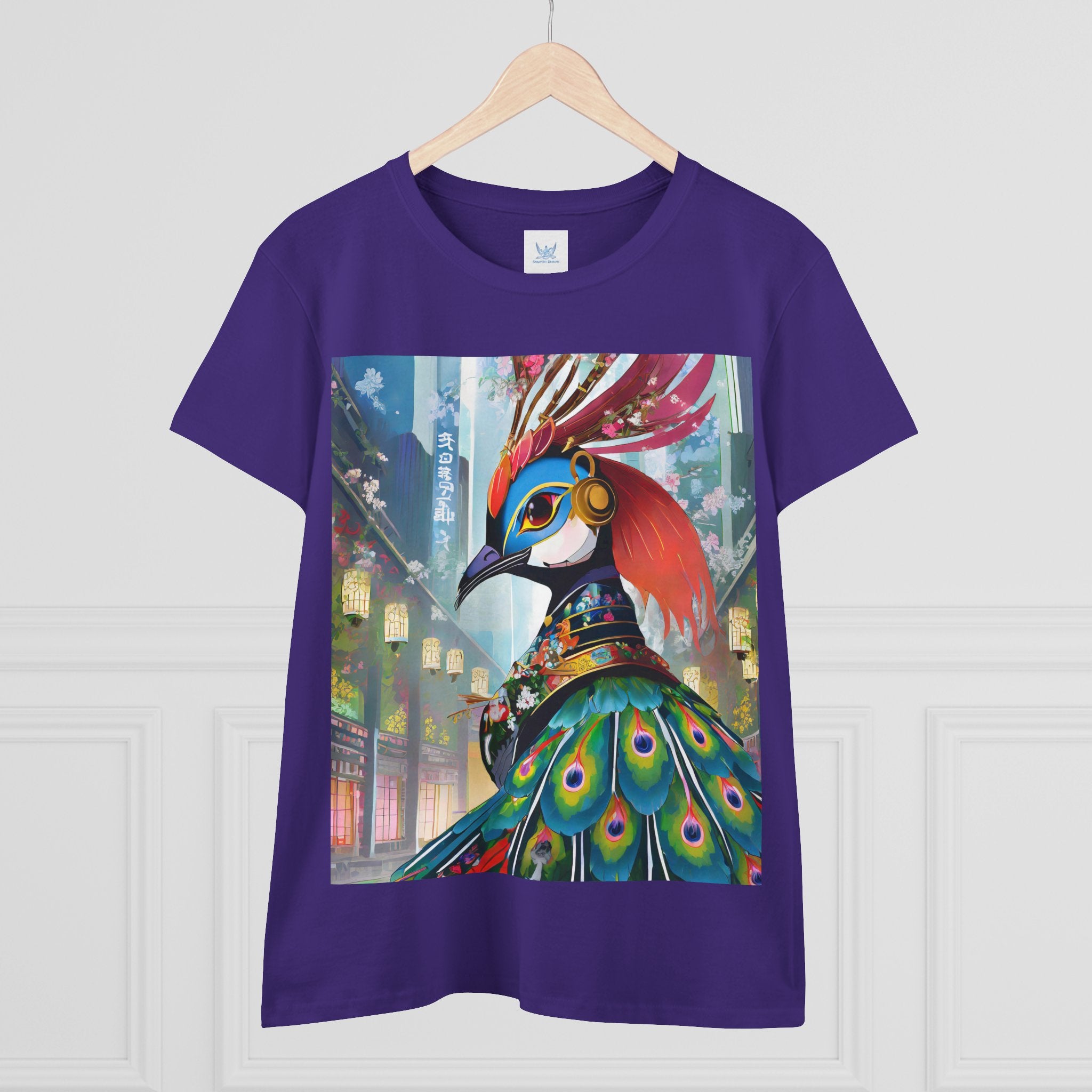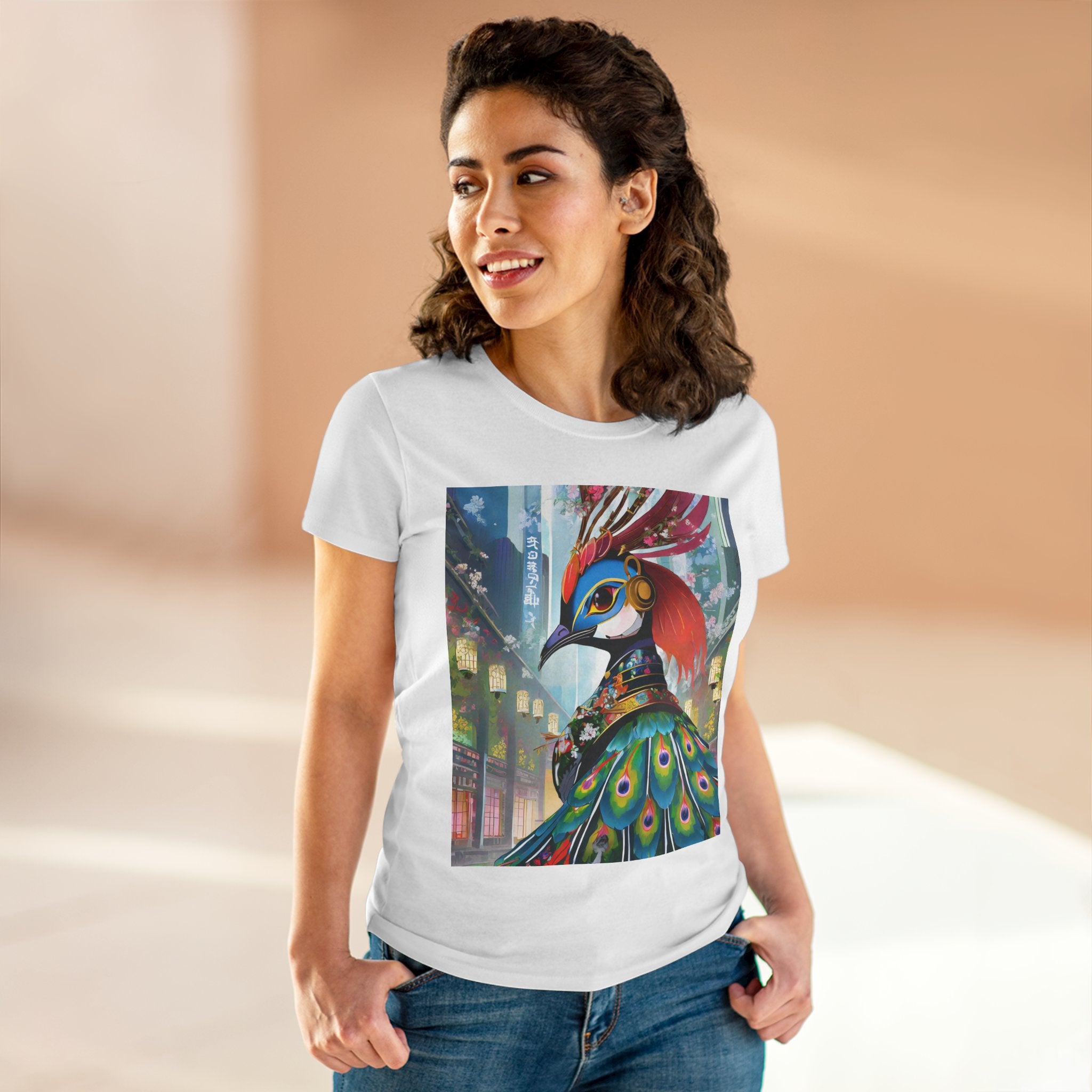 The featured artwork, Techno Plumes, showcases a proud cyberpunk robot peacock strutting with elegance and precision. Adorned in iridescent circuitry and futuristic metallic plumage, the design merges robotics with regal beauty—capturing the captivating presence of a cyber-enhanced creature in full display.