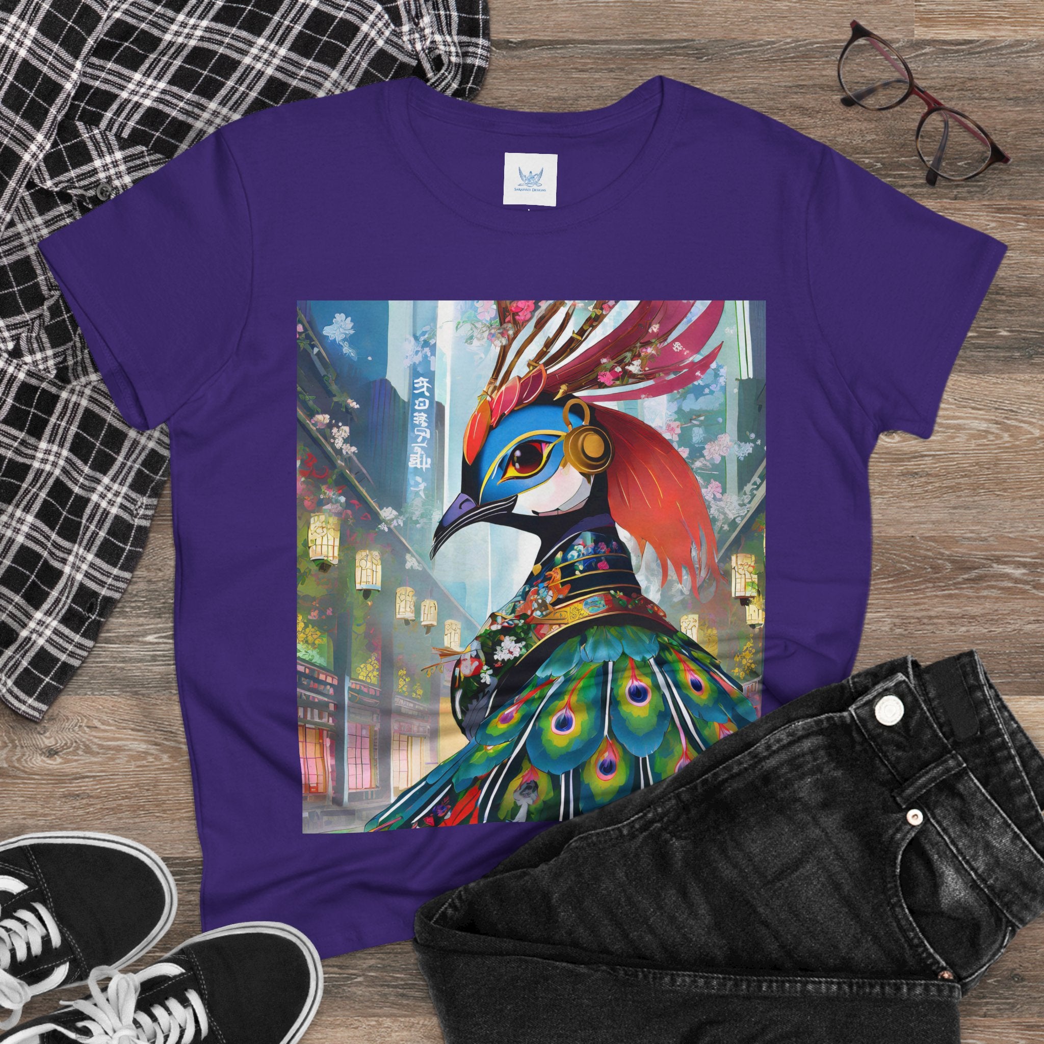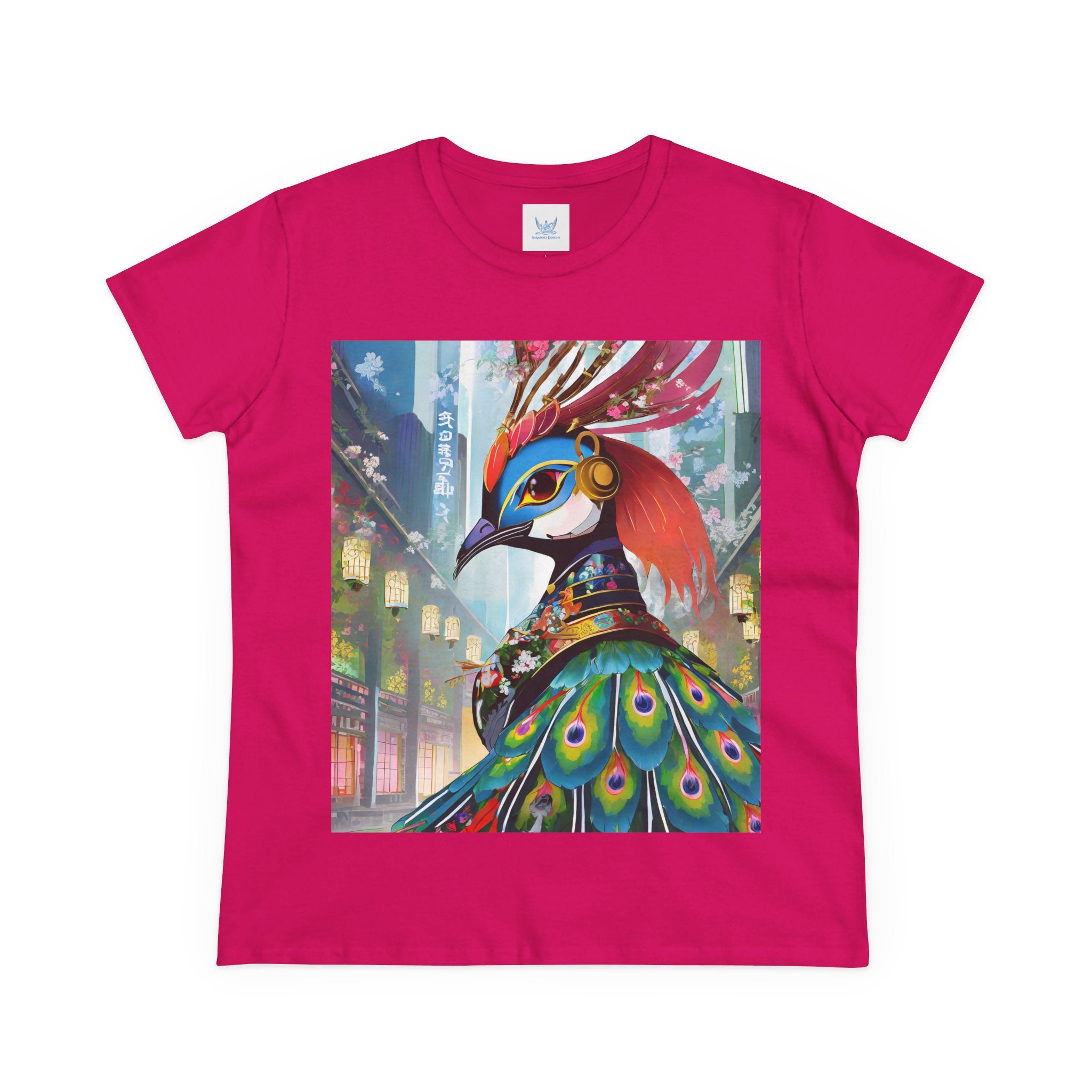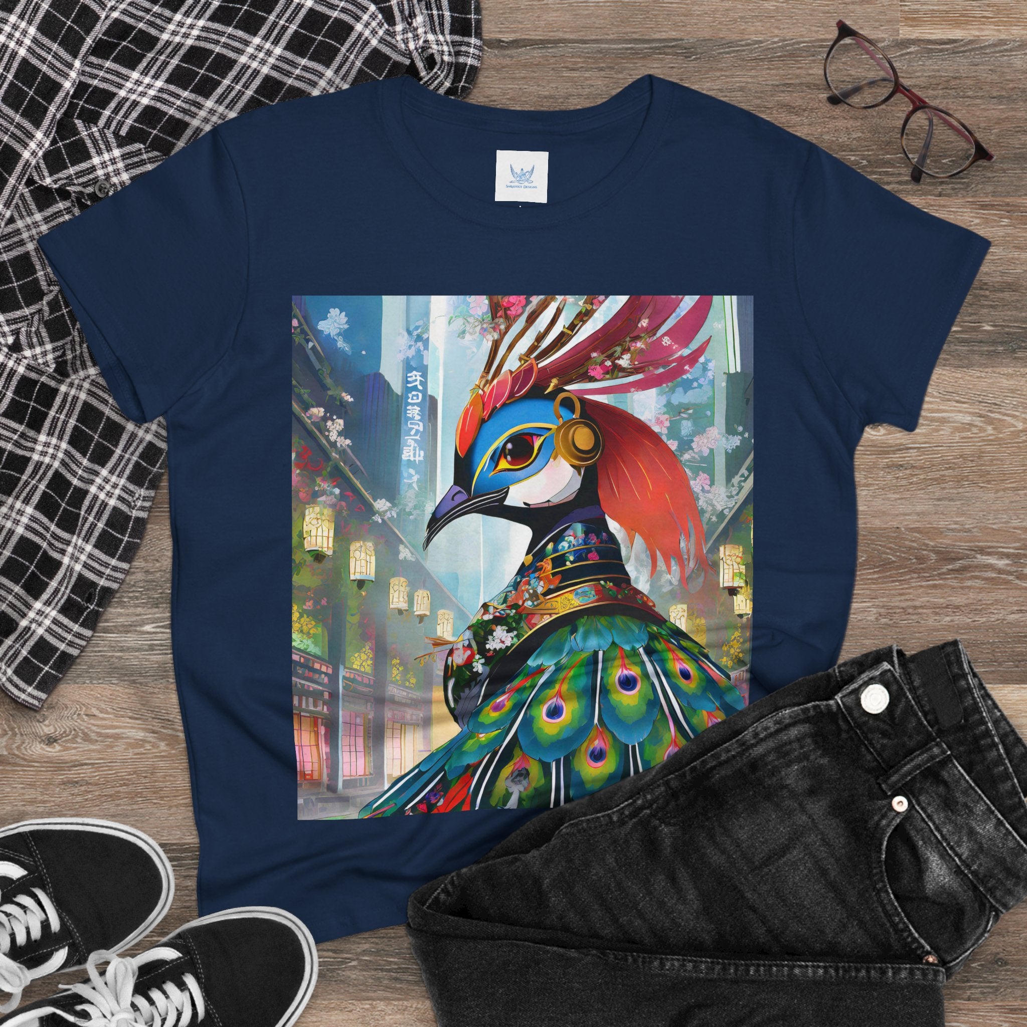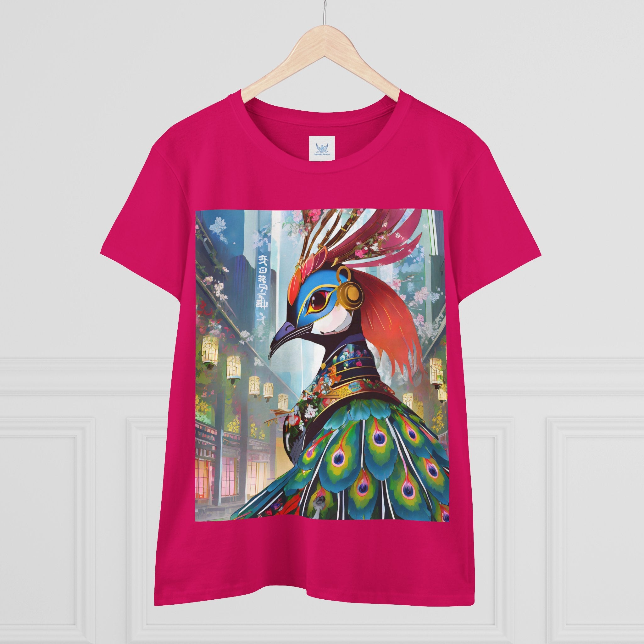 The featured artwork, Techno Plumes, showcases a proud cyberpunk robot peacock strutting with elegance and precision. Adorned in iridescent circuitry and futuristic metallic plumage, the design merges robotics with regal beauty—capturing the captivating presence of a cyber-enhanced creature in full display.