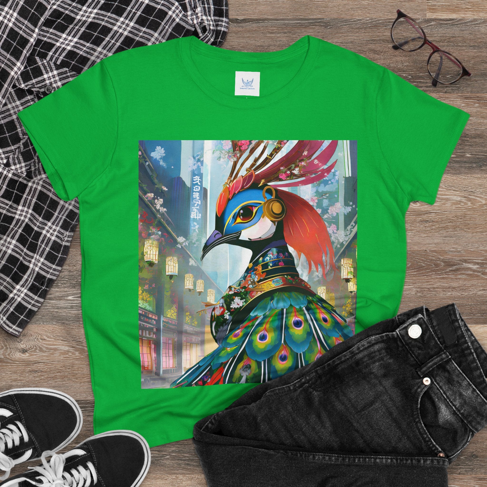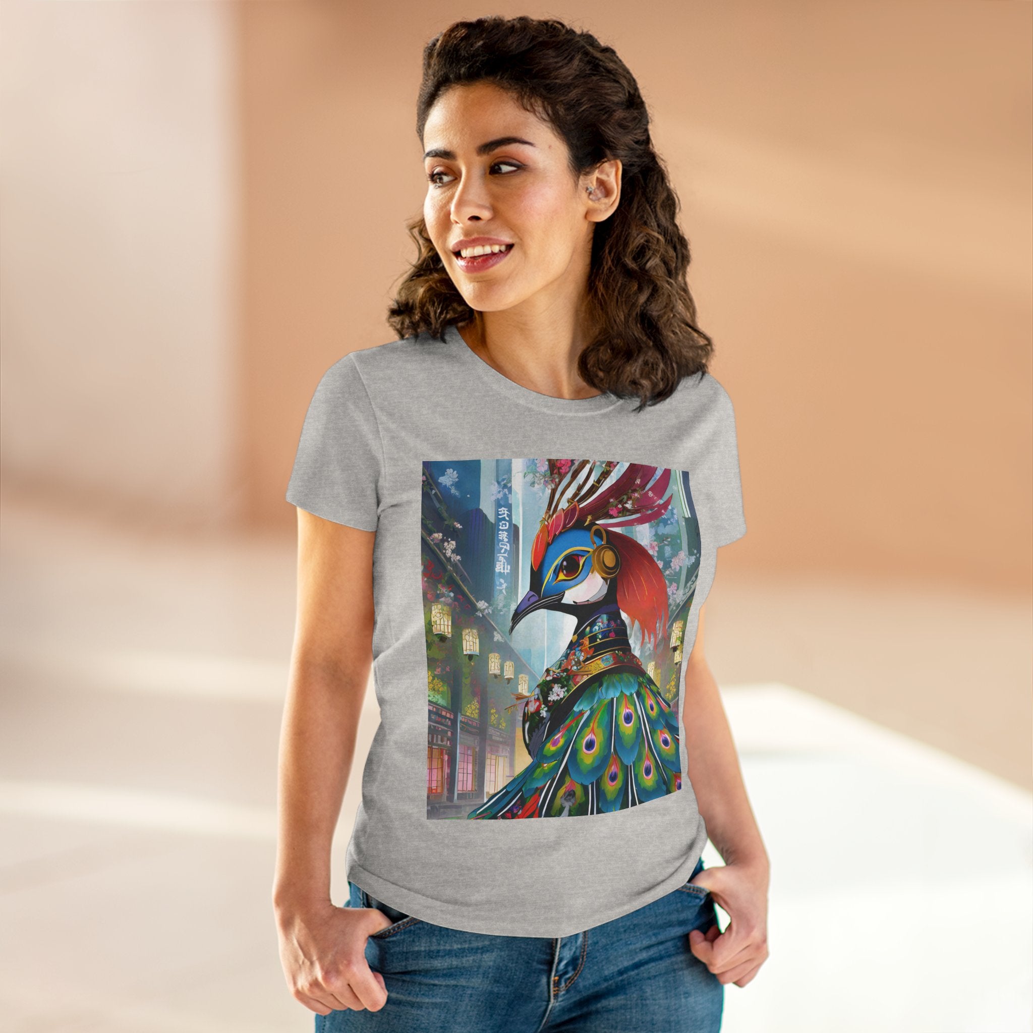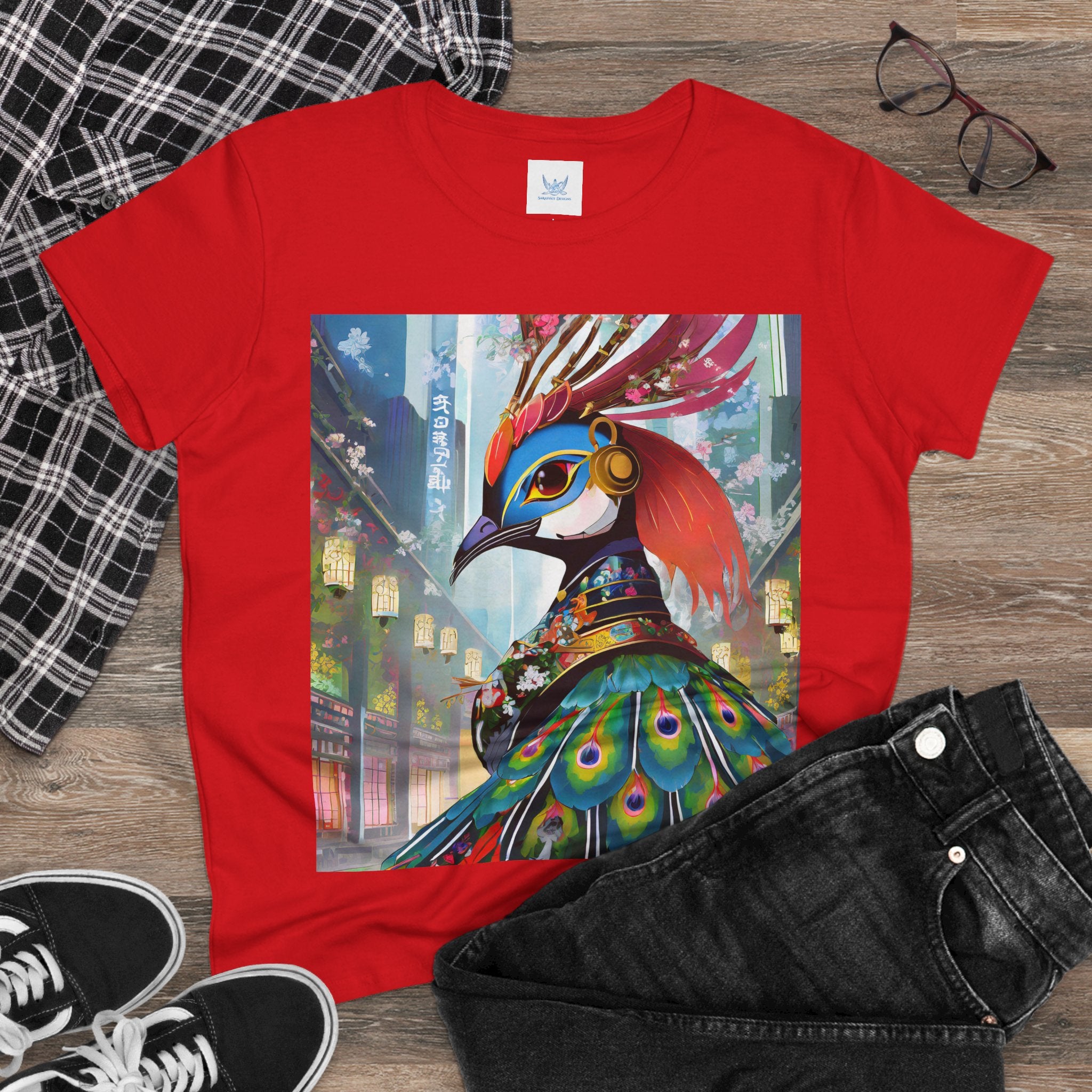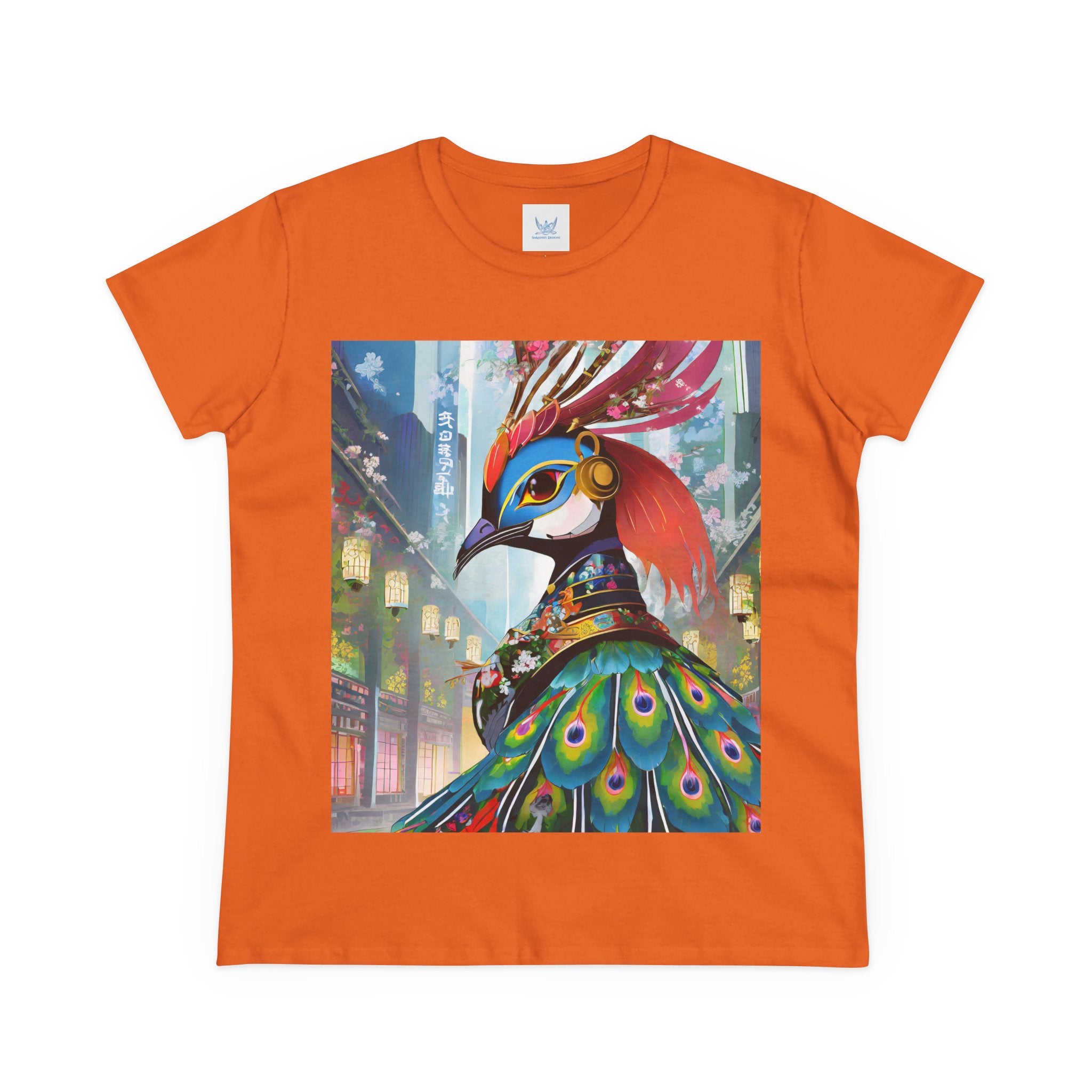 The featured artwork, Techno Plumes, showcases a proud cyberpunk robot peacock strutting with elegance and precision. Adorned in iridescent circuitry and futuristic metallic plumage, the design merges robotics with regal beauty—capturing the captivating presence of a cyber-enhanced creature in full display.