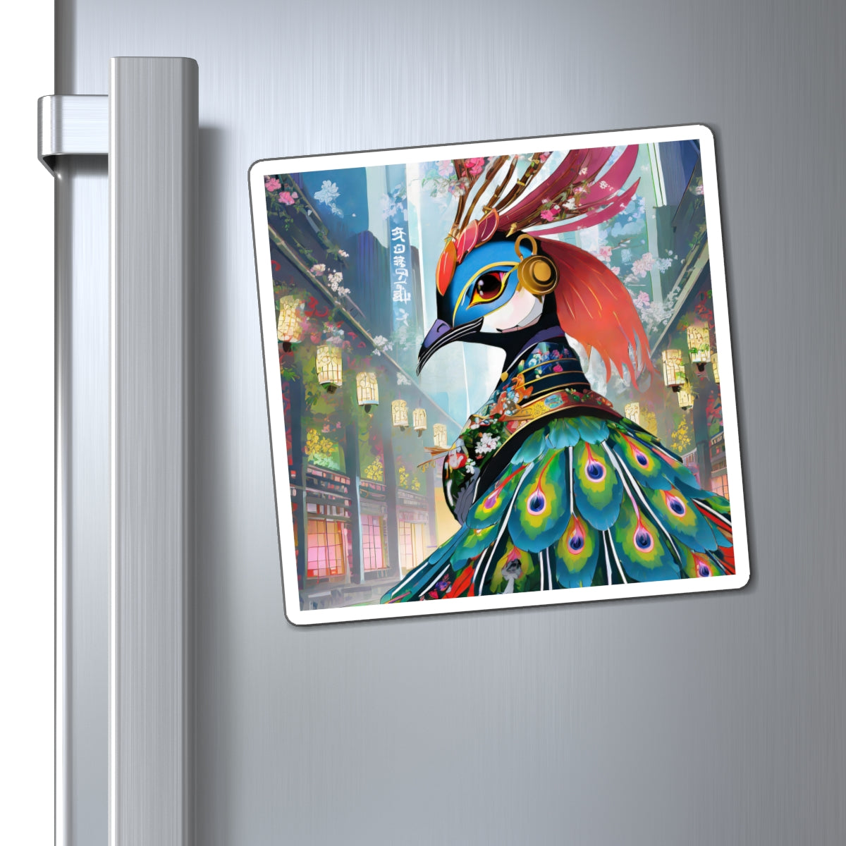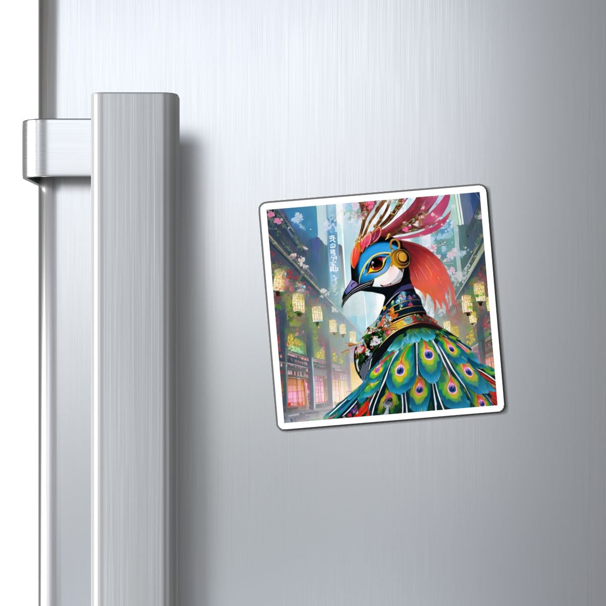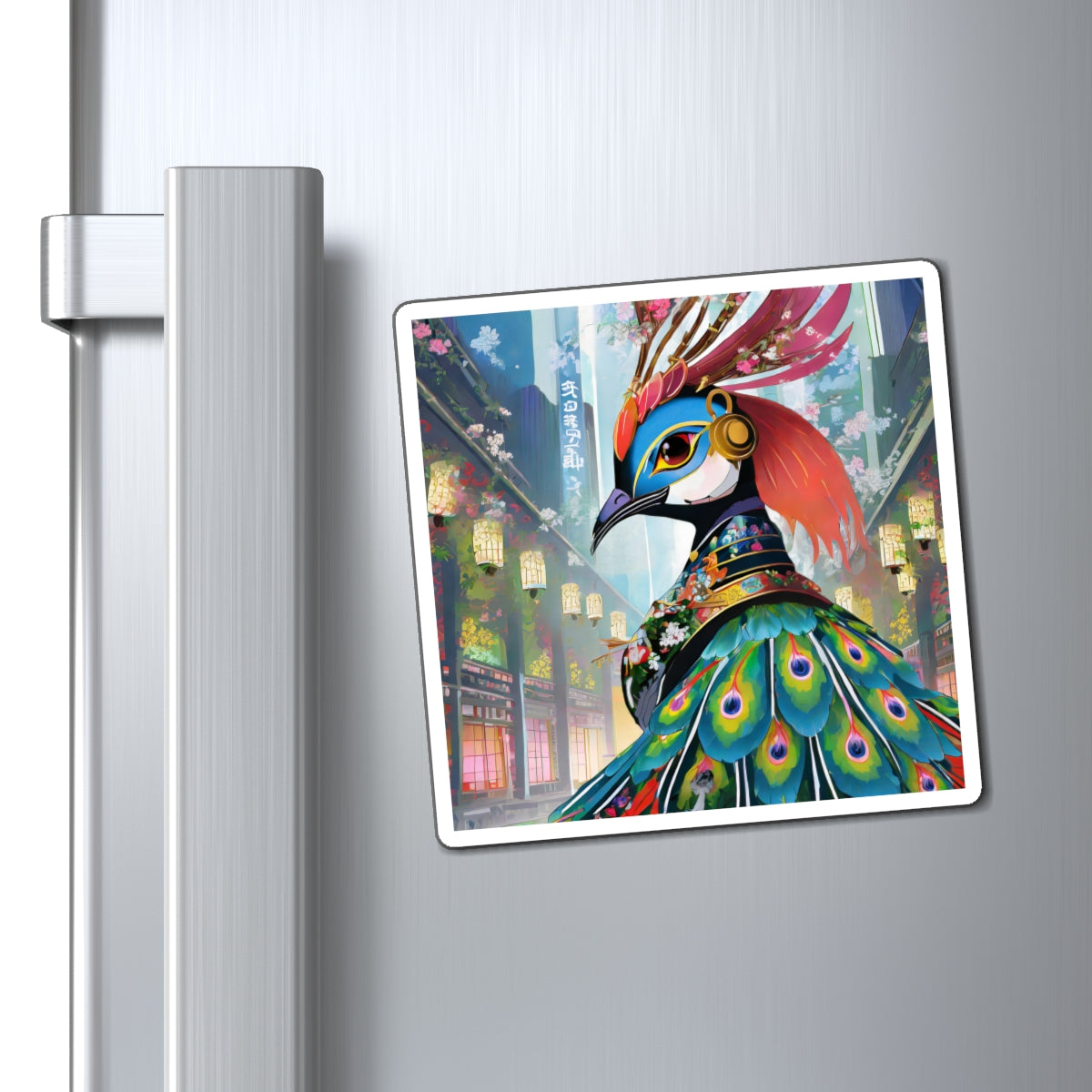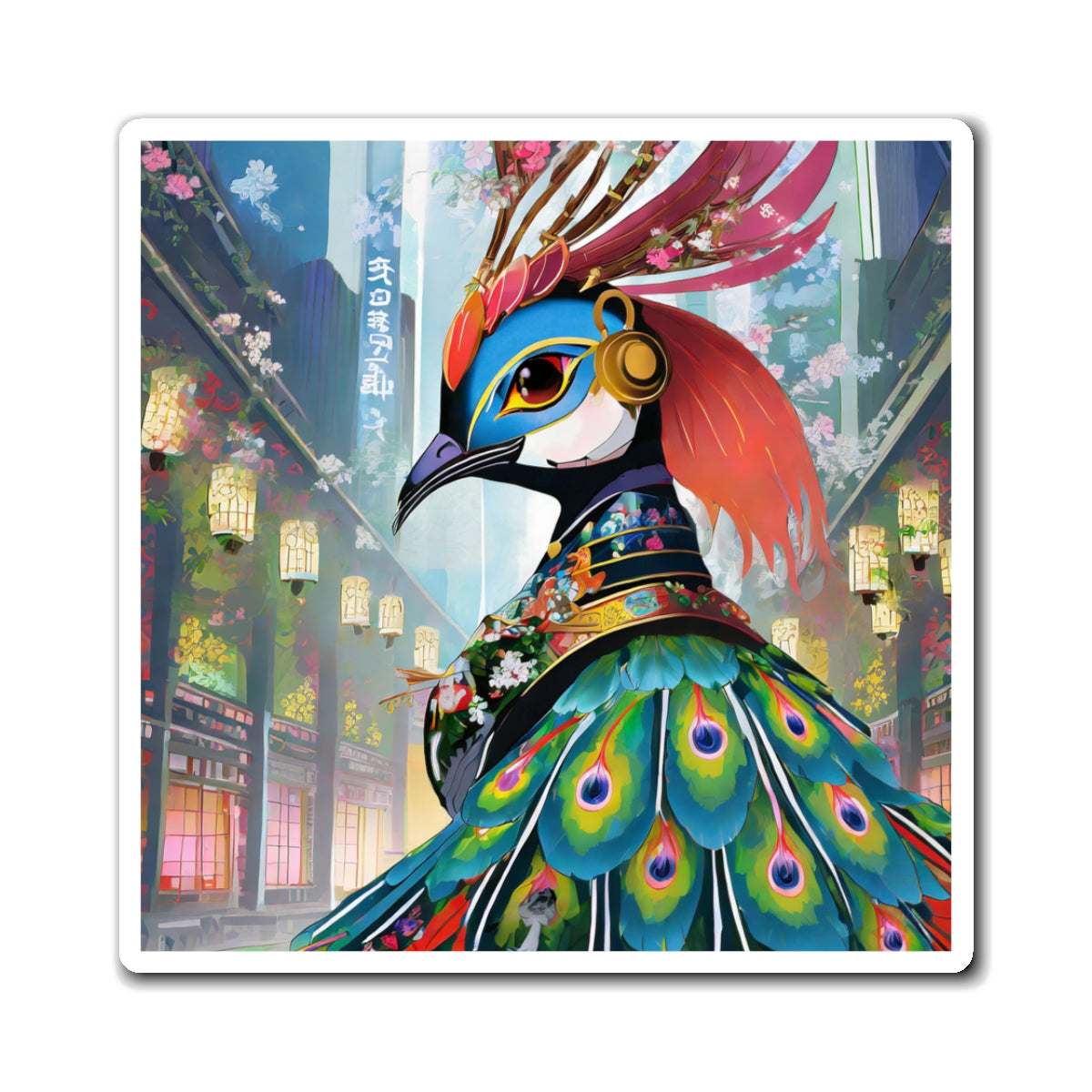 Artwork created, designed and digitally remastered by Sarasvati Designs. "Techno Plumes" showcases a proud cyber punk robot peacock strutting with elegance and grace, adorned in futuristic embellishments that captivate with their iridescent allure.