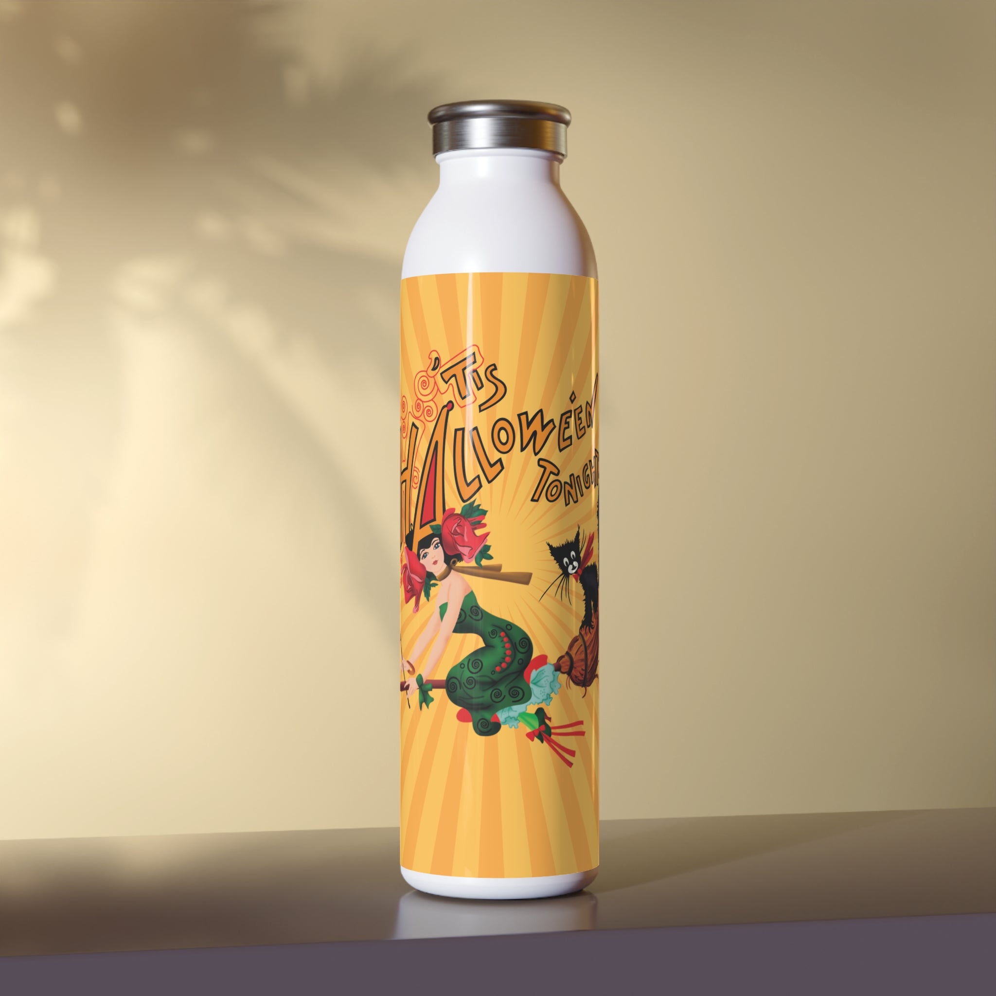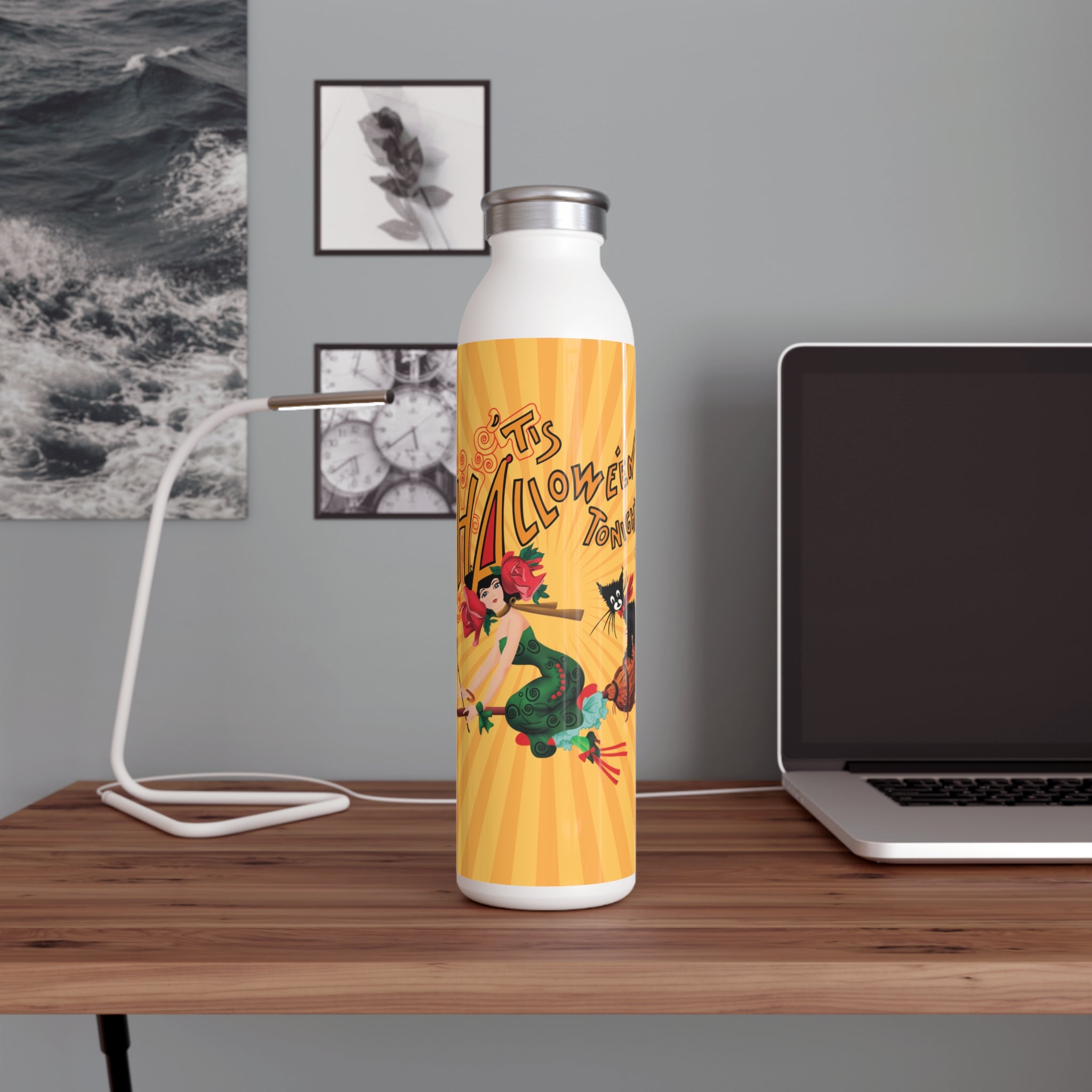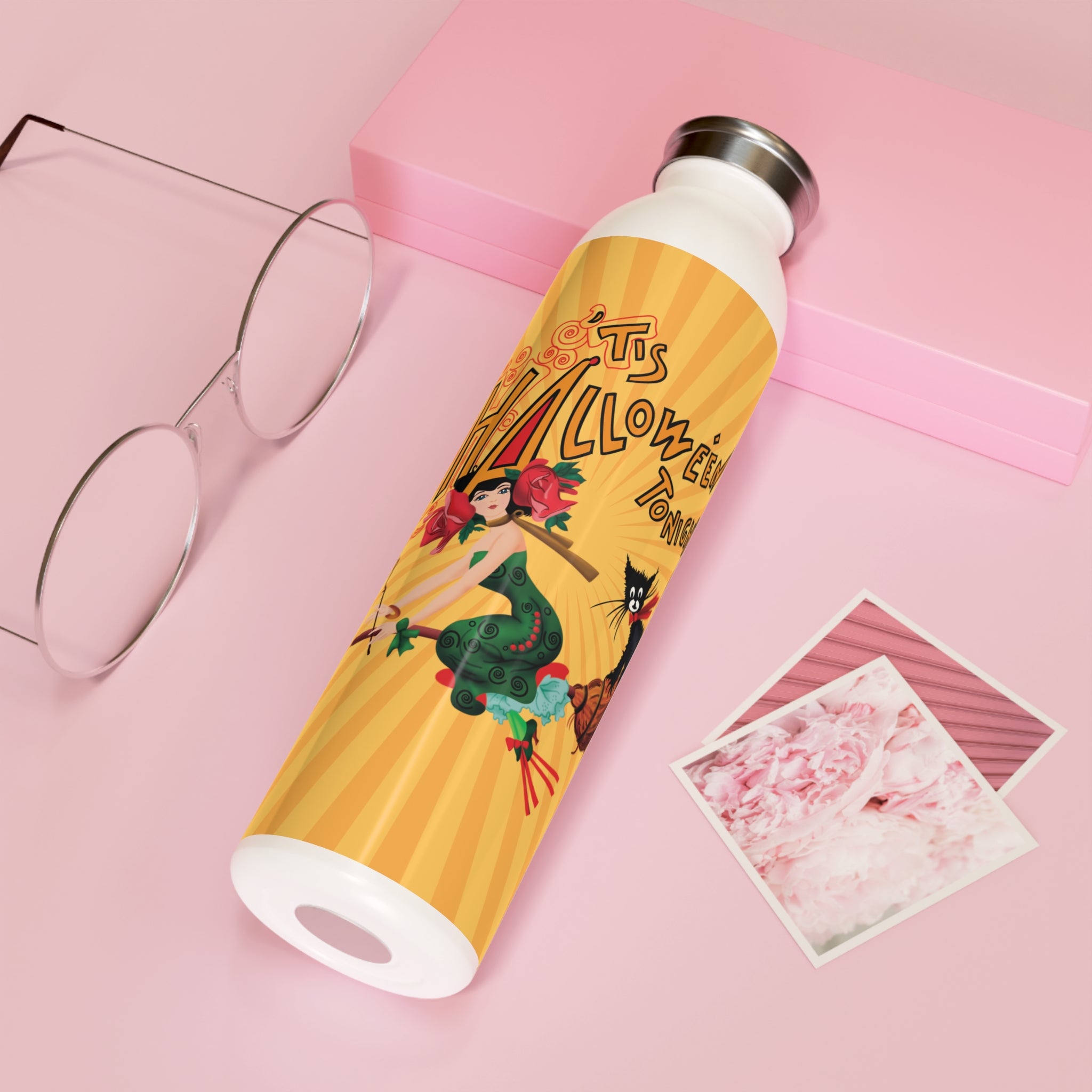 This Halloween-themed water bottle boasts a 20oz capacity, a trendy lid, and double-wall stainless steel construction. It features spooky designs that come alive in vibrant detail against the chic matte finish. With vacuum insulation, this bottle keeps your beverages at the perfect temperature for extended periods, making it both a functional and festive accessory for the Halloween season.