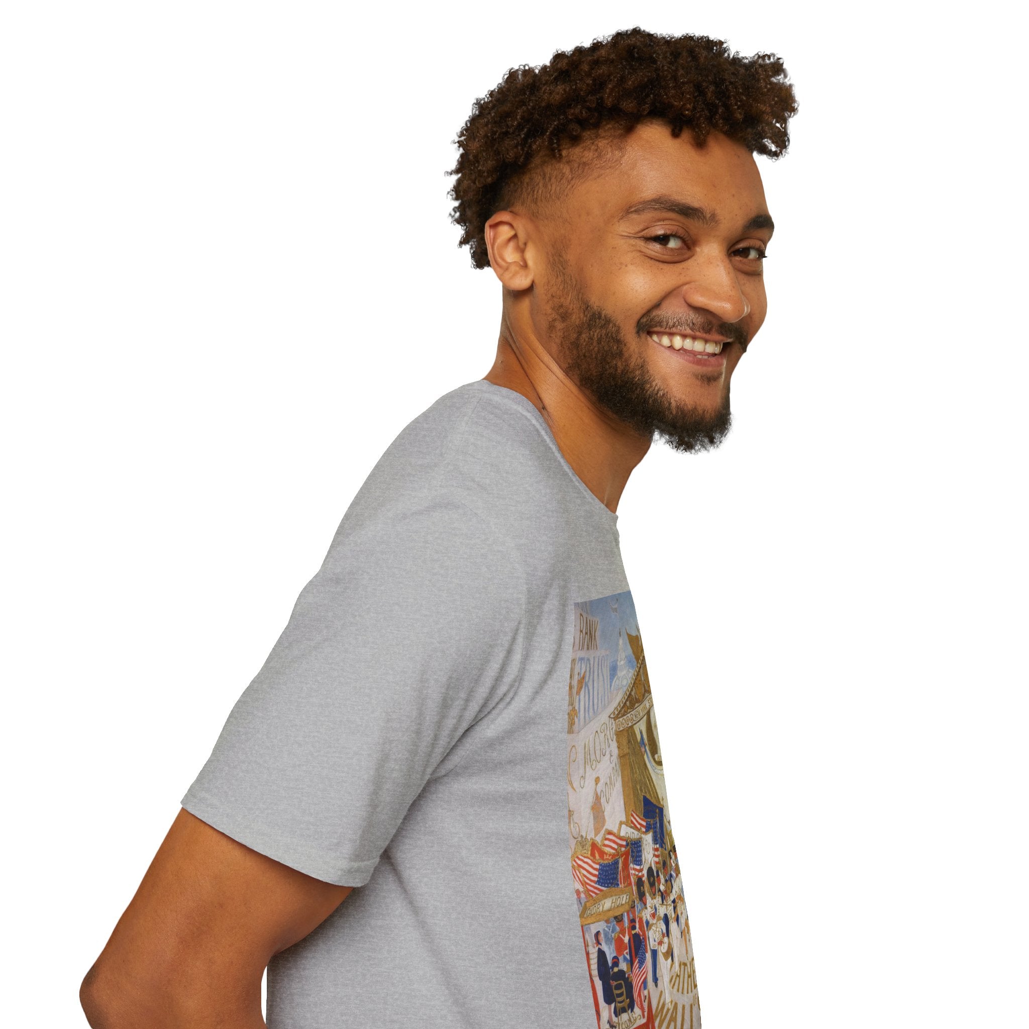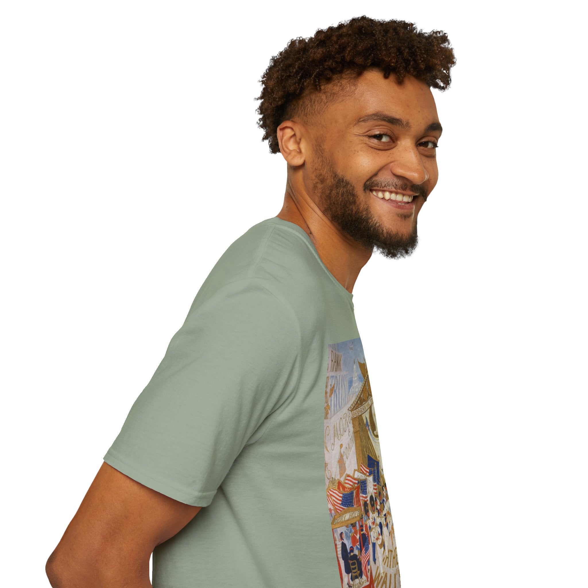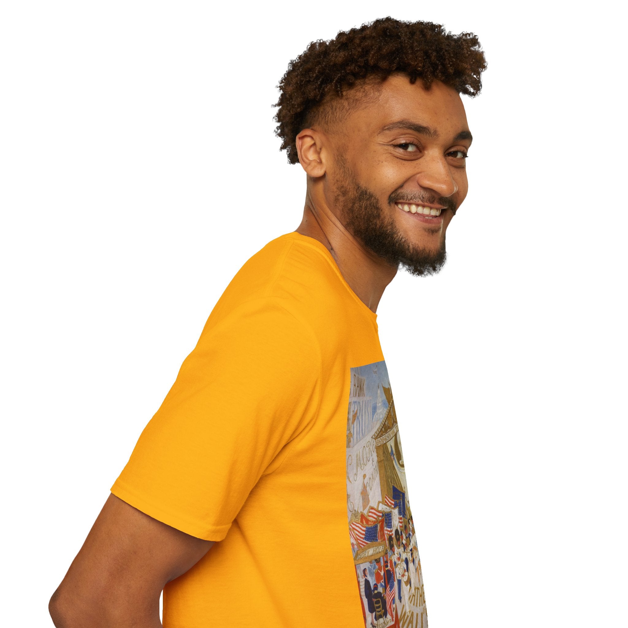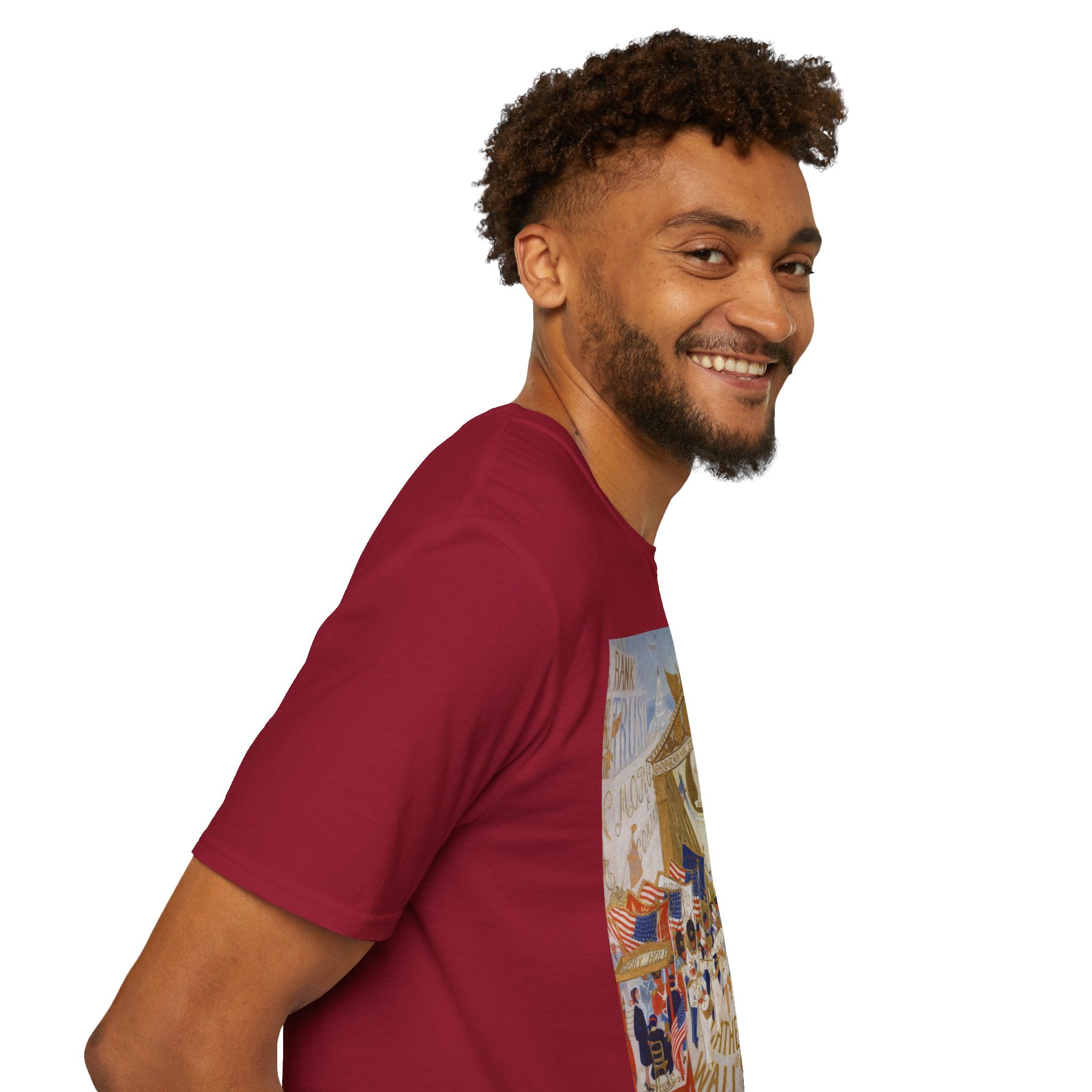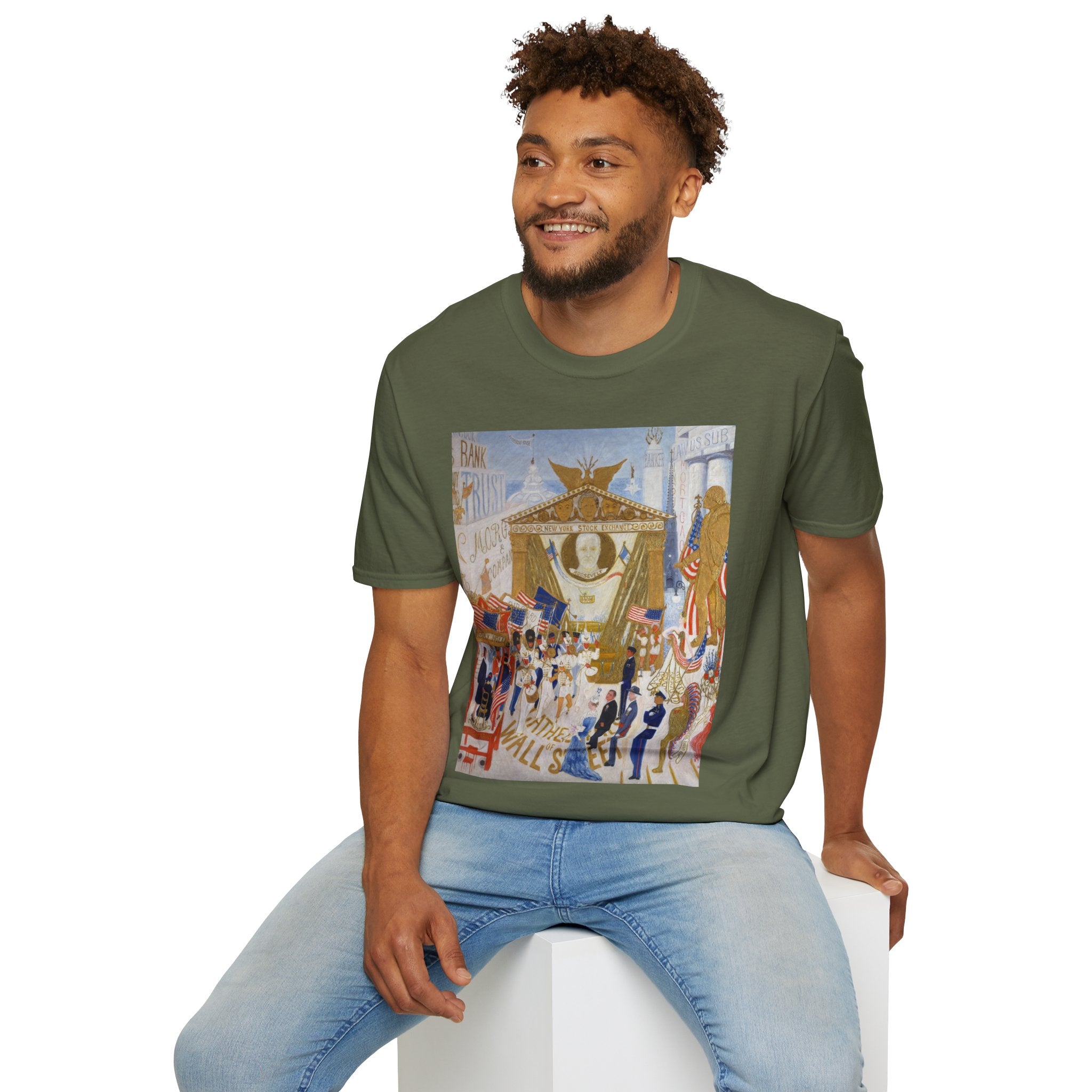 The Cathedrals of Wall Street Softstyle T-Shirt brings Florine Stettheimer’s witty modernist vision to life. In her vibrant painting, Wall Street’s towering buildings become ornate cathedrals — a playful, satirical take on the grandeur and excess of New York’s financial world. The scene brims with color, movement, and Stettheimer’s signature blend of elegance and irony.