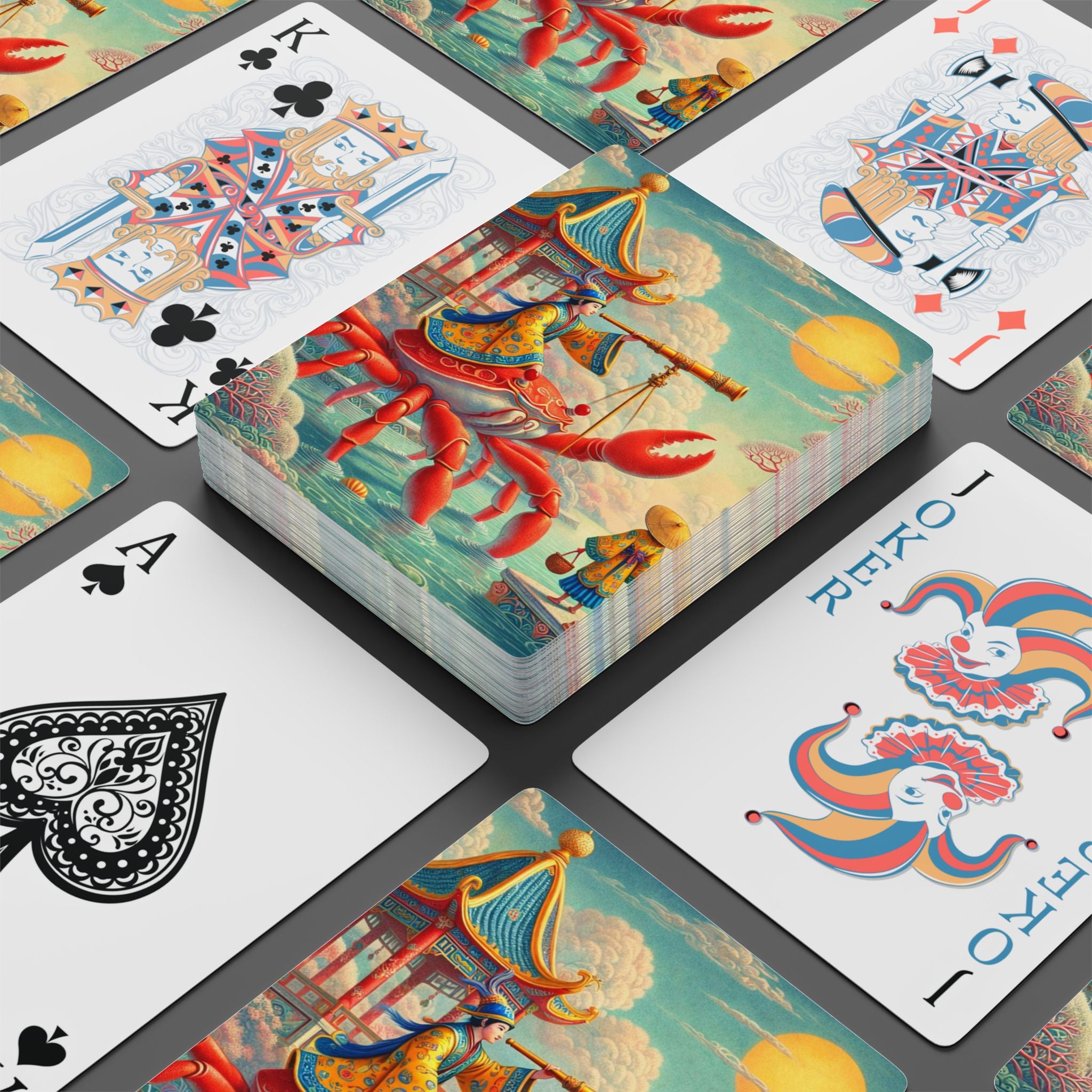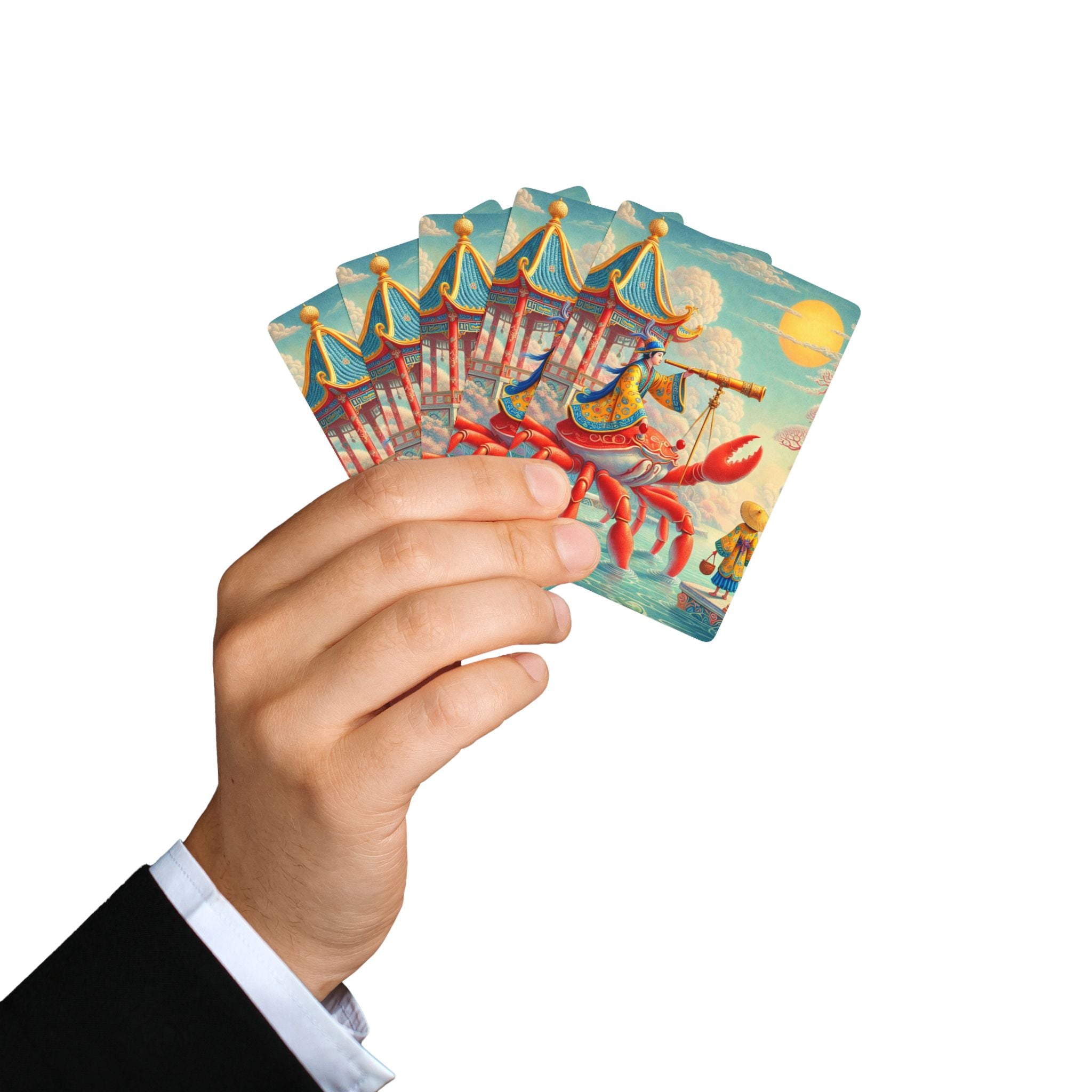 The Celestial Crab Navigator Playing Cards bring a sense of wonder and poetic adventure to game night, pairing premium playability with a richly imagined fantasy scene that looks stunning on the table. Printed on smooth, premium card stock that’s perfect for dealing and shuffling, this poker-sized deck turns every hand into a small journey—artful, whimsical, and quietly mesmerizing.