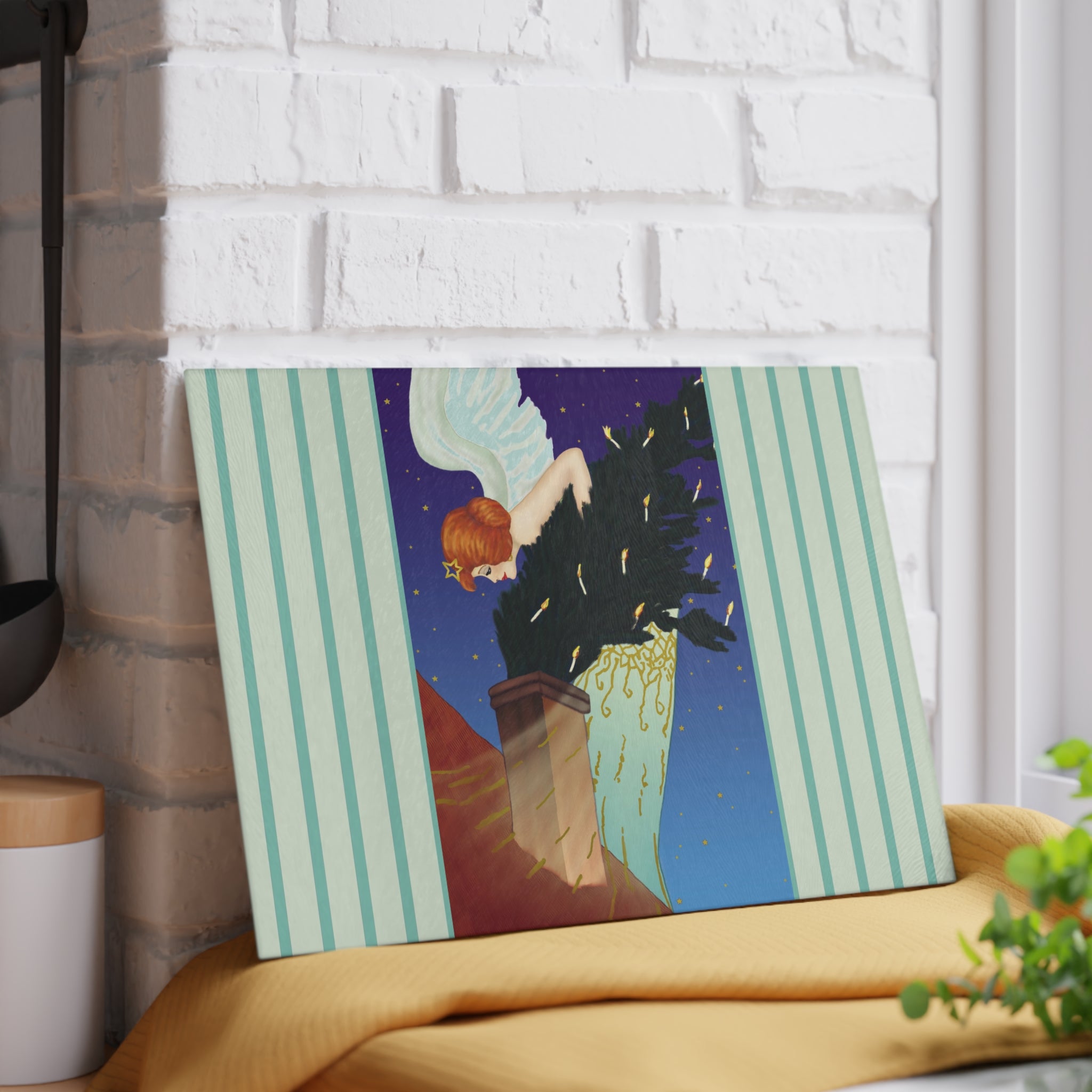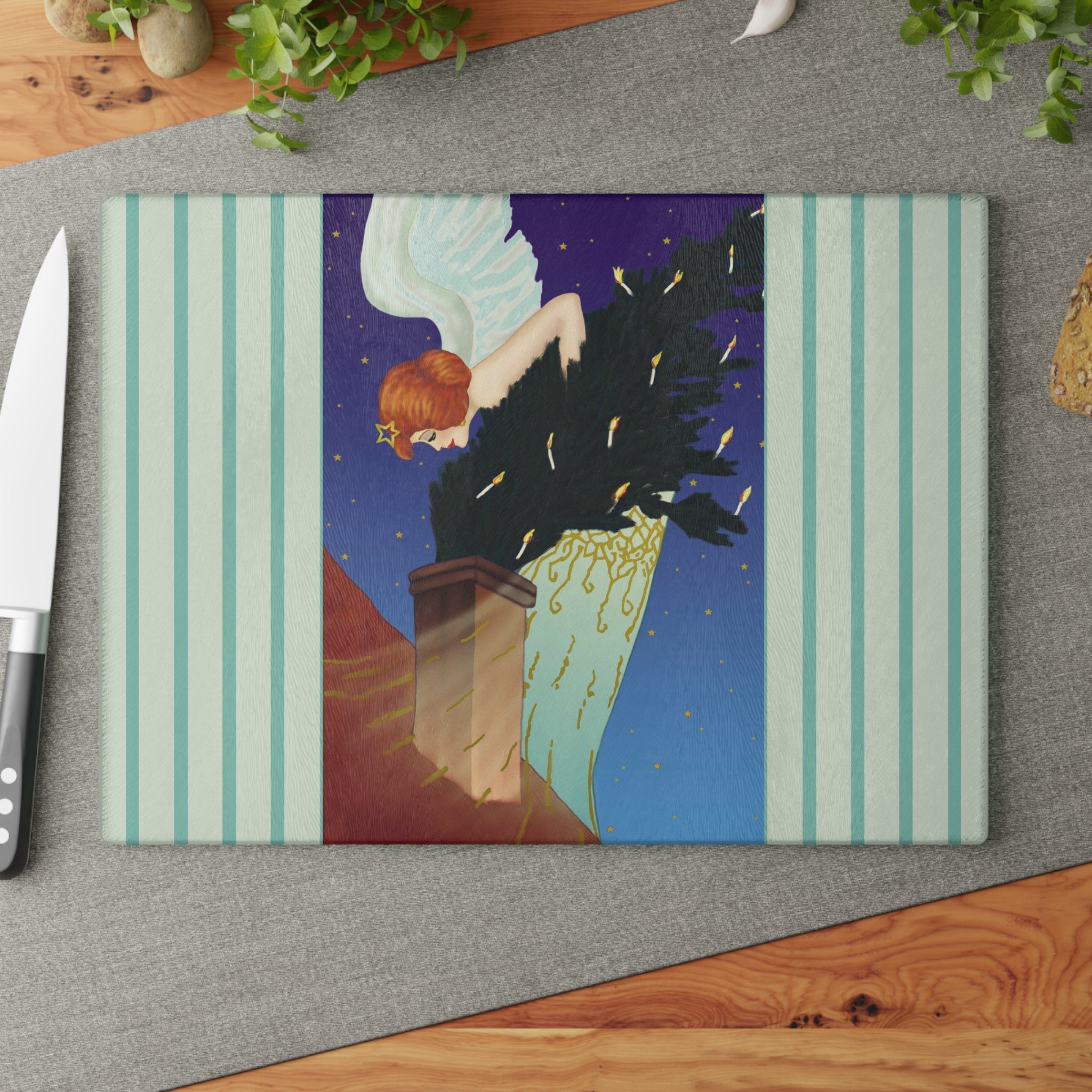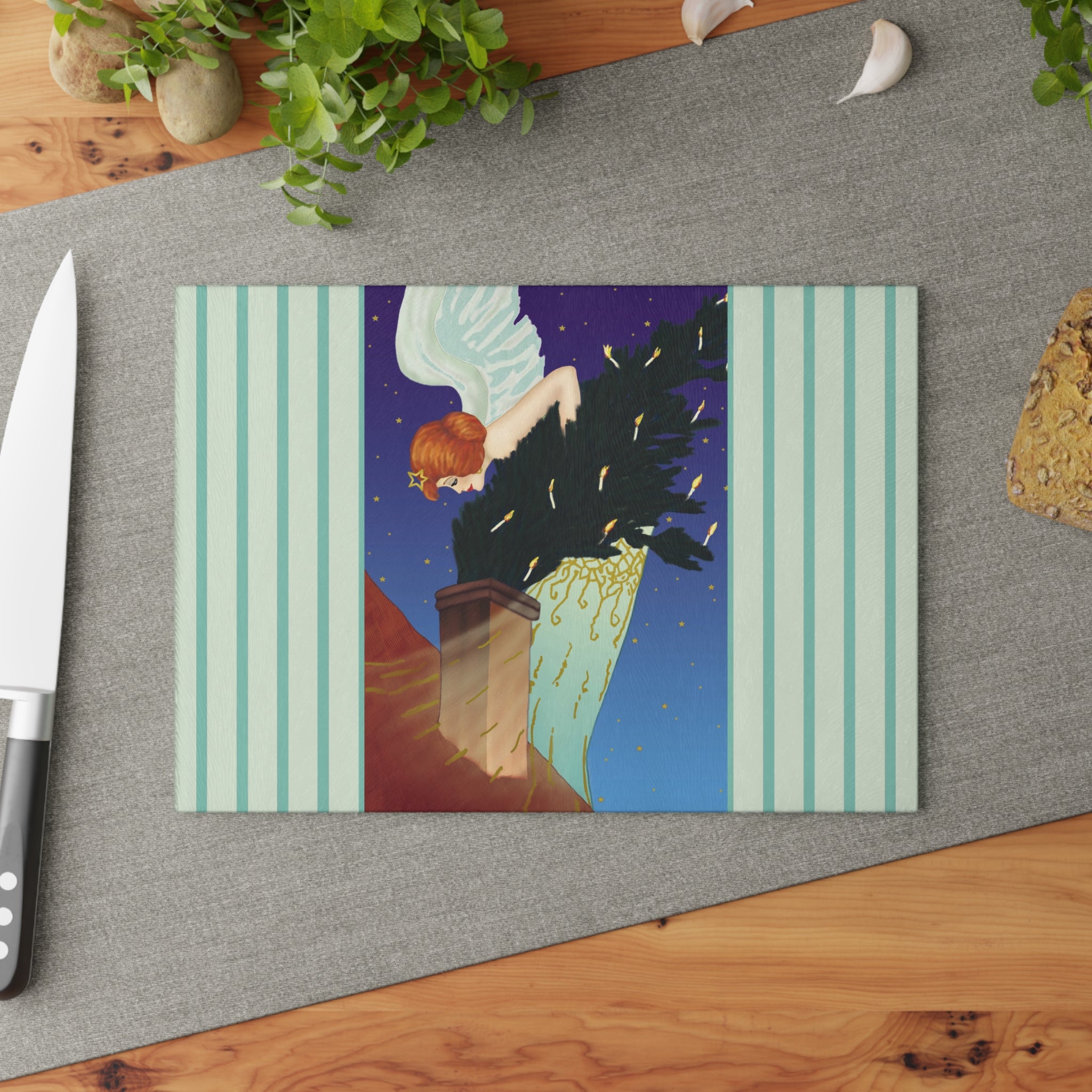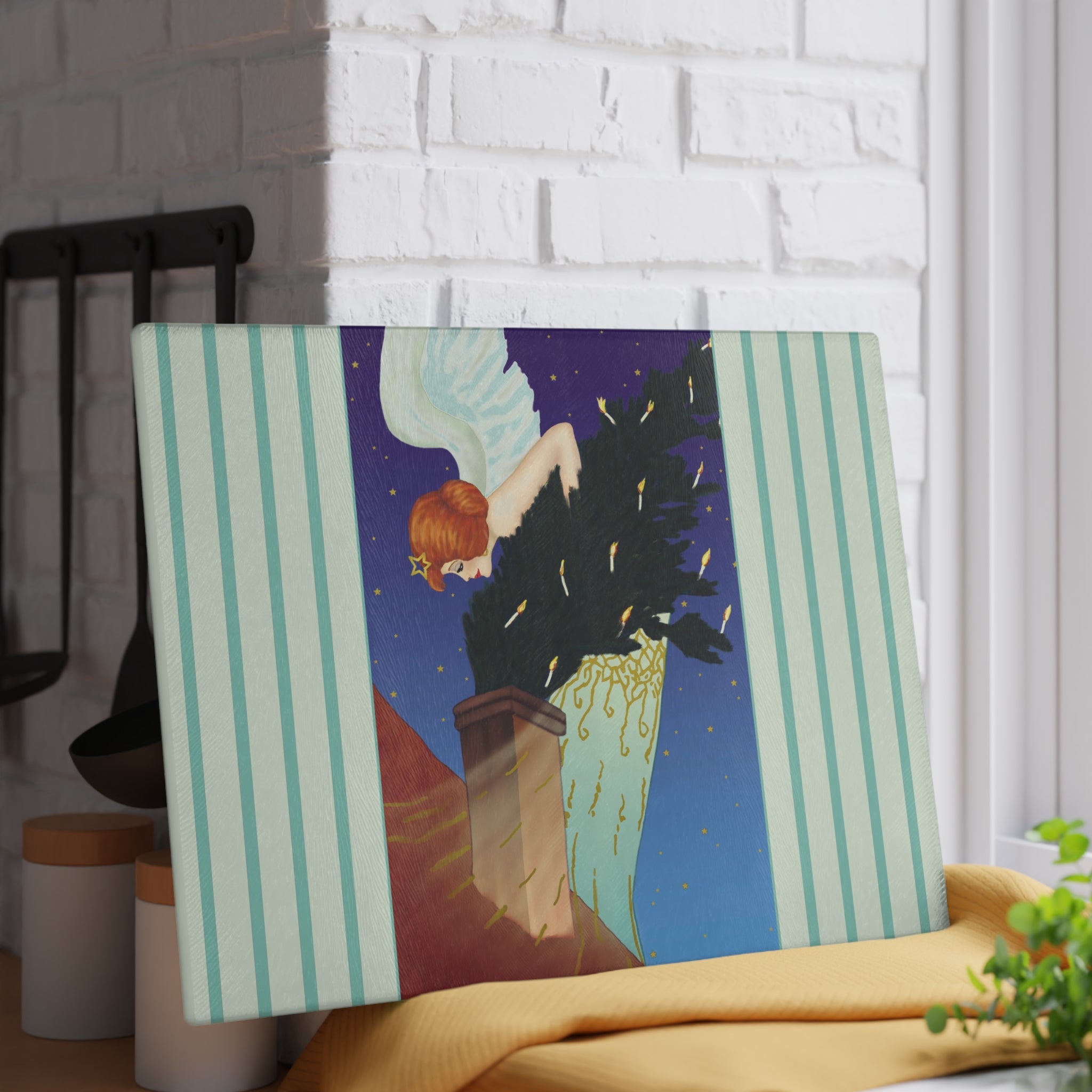 Bring festive beauty into your kitchen with The Christmas Angel glass cutting board. Made from durable tempered glass, it offers a sturdy, textured surface perfect for chopping, slicing, and dicing. Available in two versatile sizes — 8" × 11" and 11" × 15" — it blends everyday functionality with timeless artistry.