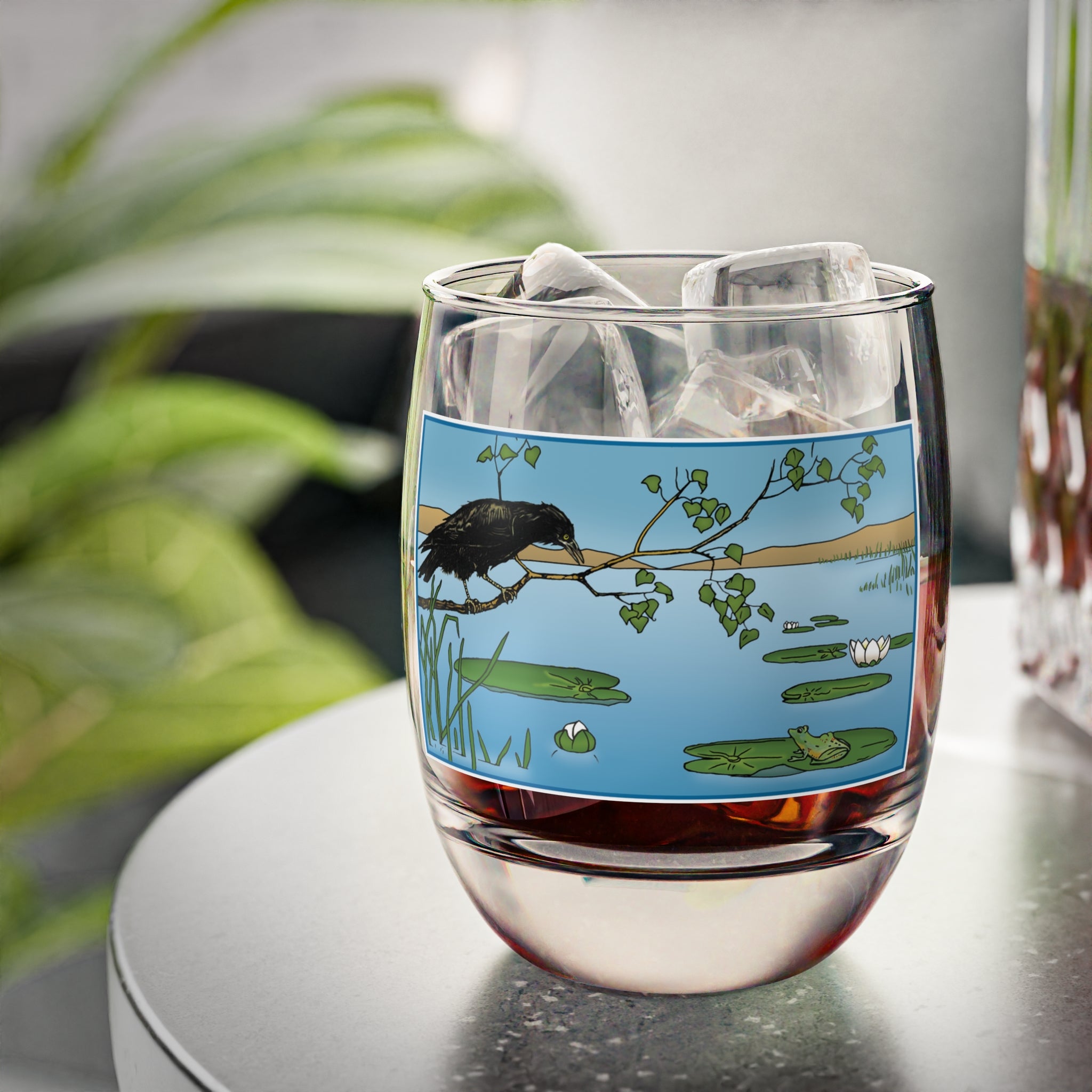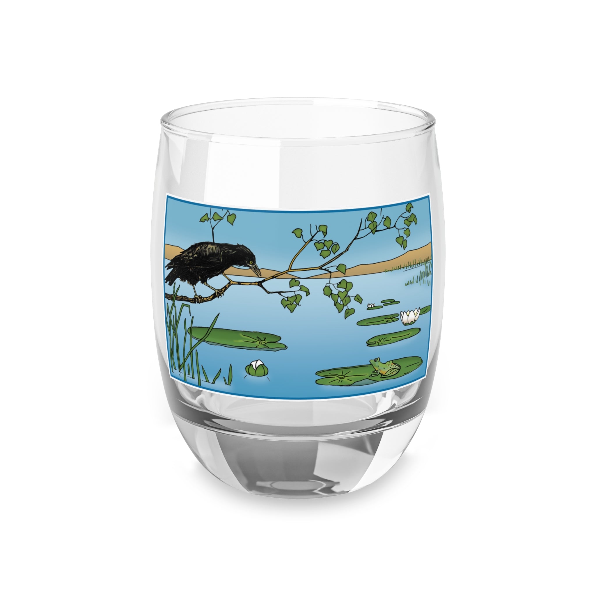 Artwork designed and digitally remastered by Sarasvati Designs. In this captivating artwork titled "The Crow and the Frog," the symbolism of the frog and crow adds depth and meaning to the composition. Set against a backdrop of brilliant blue skies and shimmering water, the scene represents a unique and enchanting moment of interconnection between different realms of nature. The crow, perched on a tree branch, symbolizes intelligence, wisdom, and keen observation. Its presence suggests a message or communication from the spirit world. Engaged in a conversation with the crow, the frog on the green lily pad represents transformation, adaptation, and heightened intuition. The frog's connection to water signifies cleansing, purification, and the ability to navigate through different stages of life.