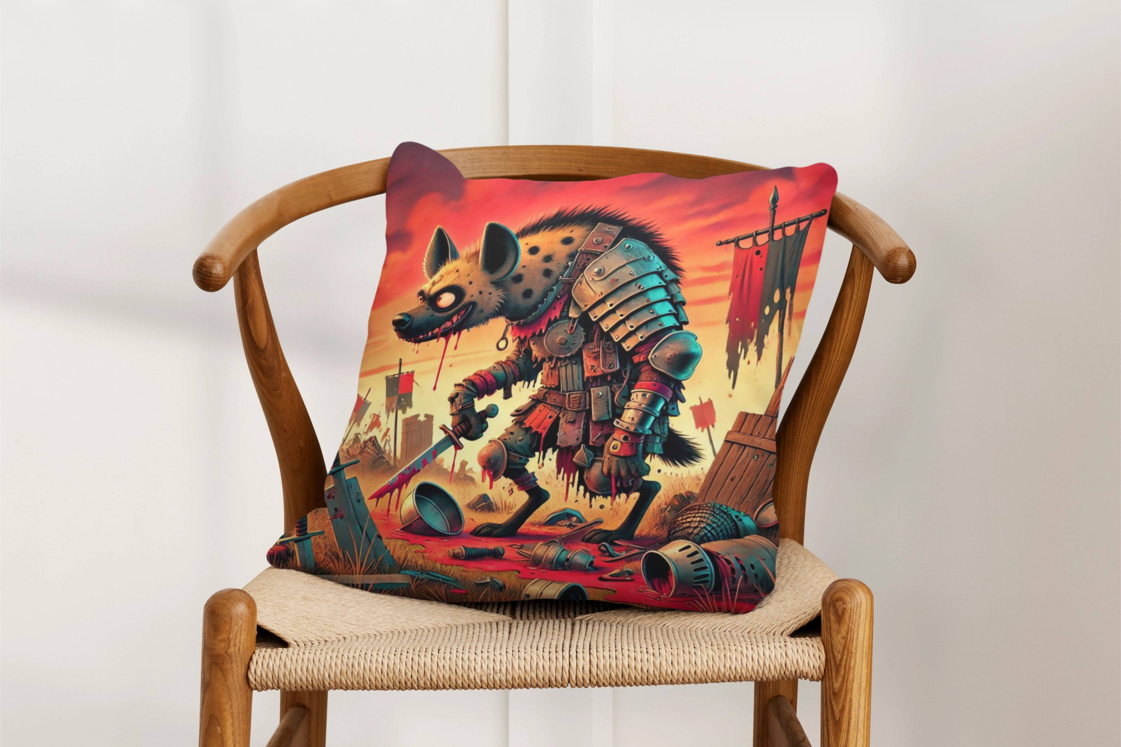 The captivating artwork, The Cunning Scavenger, depicts a sly hyena prowling through the ruins of a forgotten battlefield, its sharp eyes gleaming beneath a blood-red sky. Clad in scavenged armor, it moves with stealth and precision through a wasteland of bones and broken weapons, thriving where others have fallen. The atmosphere hums with quiet danger and eerie beauty, the hyena’s ghostly laughter echoing like a reminder of resilience in chaos. The piece captures both ferocity and wit—an ode to survival and clever strength.